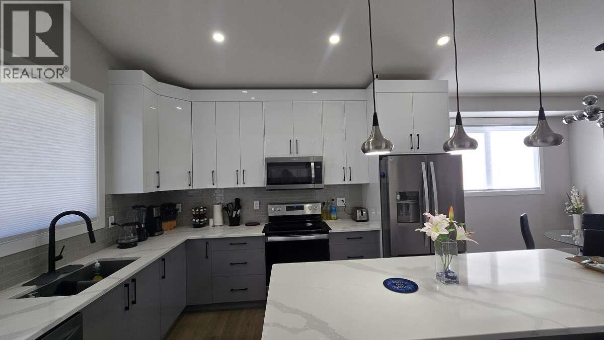 For more information, please click Brochure button. Welcome to this stunning new home located in the highly desirable Tallus Ridge community of West Kelowna, offering 2,820 sq ft of beautifully finished living space and breathtaking views of Shannon Lake from the front deck. The main house features 4 spacious bedrooms and 3 full bathrooms, designed with comfort and style in mind. The kitchen is a true highlight with a large island, high-gloss acrylic cabinets, soft-close doors and drawers, elegant quartz countertops, and upgraded Whirlpool stainless steel appliances. Throughout the second floor, you’ll find engineered hardwood flooring, while all bathrooms feature sleek porcelain tiles. The living area is bright and airy with modern LED lighting, upgraded fixtures, and a cozy gas fireplace. This home is equipped with central air conditioning, a central vacuum system, a gas dual-speed furnace & a gas water heater. Enjoy outdoor entertaining with a gas BBQ hookup on the back patio. The property also includes a large double garage and an additional parking space on the right side of the lot—perfect for an RV or boat. Downstairs, a fully legal 2-bedroom suite offers a private entrance, full kitchen, in-suite laundry, stainless steel appliances, a separate water heater, and a spacious concrete patio—ideal for extended family or rental income. The suite features waterproof plank flooring for durability and comfort. Don’t miss the opportunity to own this exceptional property. (id:58842)