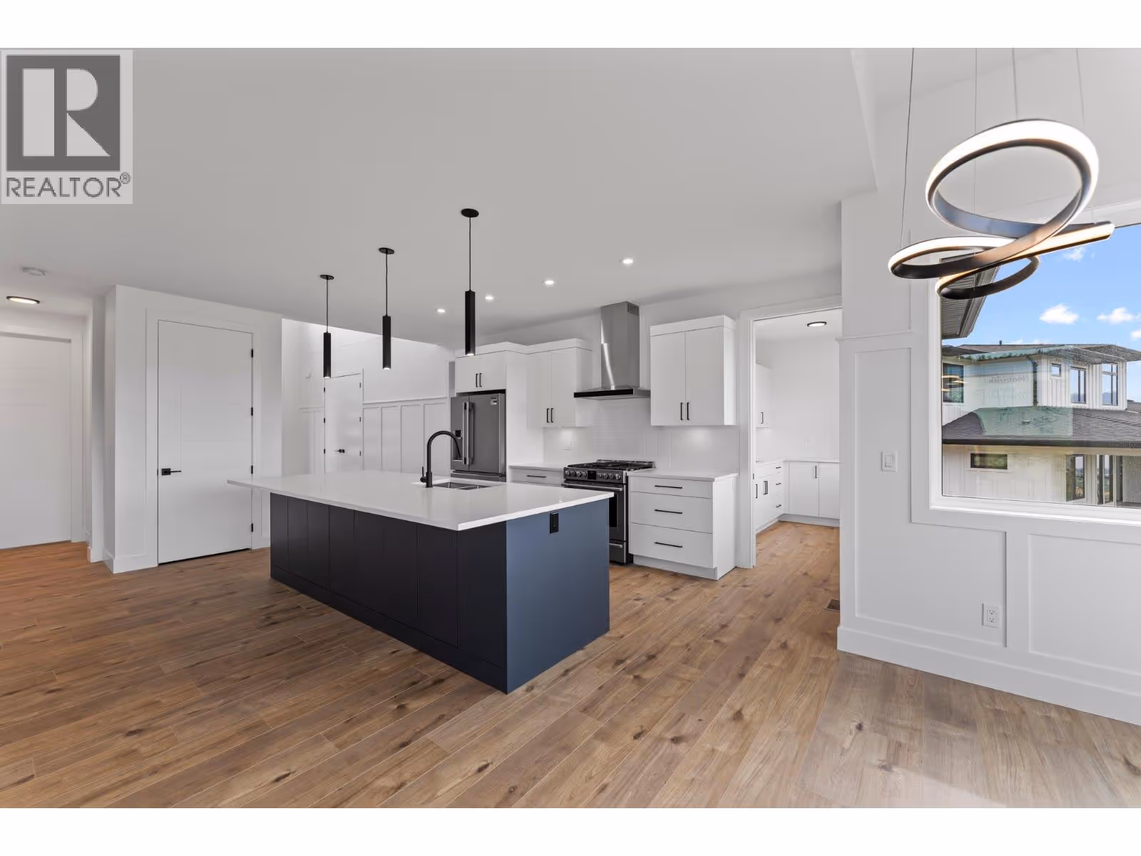 Be the first to live in this brand-new home located in the peaceful Smith Creek neighbourhood of West Kelowna. This thoughtfully designed 4-bedroom, 3-bathroom home offers flexible living space, elevated views of Okanagan Lake and the valley, and modern comfort in a scenic setting. The main level features an open-concept layout with high ceilings, large windows, and quality finishes throughout. The kitchen includes a spacious island, contemporary appliances, and a windowed pantry that functions like a butler’s pantry, providing both natural light and extra prep space. A full bedroom and bathroom on the main floor create flexible options for guests, extended family, or a home office. The mudroom off the garage adds everyday functionality. Upstairs, the primary suite includes a walk-in closet and private en suite bathroom. Two additional bedrooms share a Jack and Jill-style bathroom, and a versatile bonus room offers space for a media area, workspace, or playroom. This home is well suited for families, couples, or anyone seeking new construction without the wait. Price is plus GST. (id:58842)