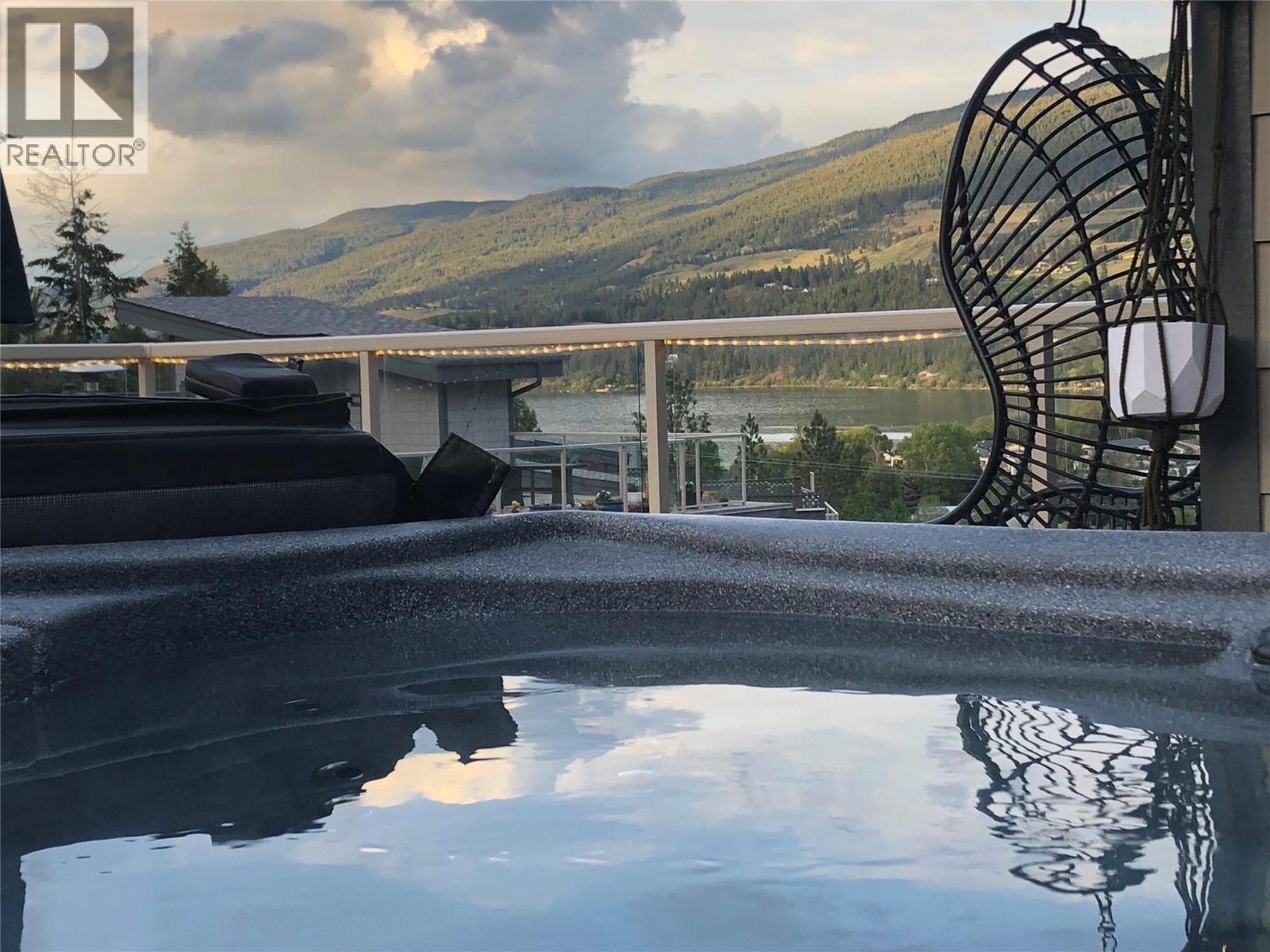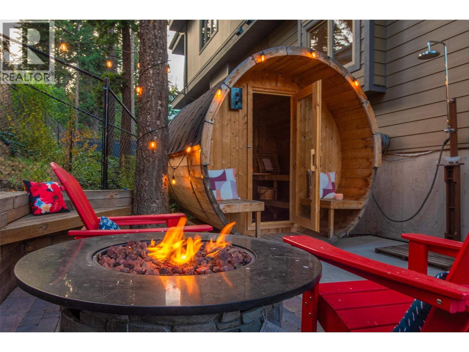 MASSIVE ROOFTOP PATIO, with unobstructed views of LAKE and MOUNTAINS. Rooftop HOT TUB and Rooftop GREENHOUSE included!! Personal gas-powered WINE BARREL SAUNA both dry or steam included! Outdoor shower for cold exposure after sauna session, personal spa experience at home! Upgrades include landscaping with built-in bench around fire pit and beautiful patio stone area. Unit has total of 4 beds & 4 baths! Only unit with NO CARPET, beautiful scratch-proof flooring. FINISHED WALK-OUT BASEMENT with PRIVATE ENTRANCE. HUGE bright kitchen with large island, modern quartz countertops, walk-in pantry, and beautiful cabinetry! OPEN CONCEPT living and dining room off kitchen with TWO fireplaces and high ceilings. Easily access BBQ, fire pit or sauna from quaint wrap around porch off kitchen to backyard. Oversized MASTER bedroom with WALK-IN closet, gorgeous ENSUITE BATHROOM with his and her sinks, private toilet room, and luxurious freestanding soaker tub! Backyard faces south, sun all day! Mature trees and lush vegetated hillside provide privacy, shade, and tranquility. Large 2 car GARAGE with built in cabinets and storage shelves. NO pet restrictions, dog pen, dog friendly community. Walking distance to Starbucks, yoga studio, Pub, Marina, Restaurants, local shops, etc. Easy access to paved bike and walking trail around Wood Lake with access to Okanagan Rail Trail, picnic area, beach, and off-leash dog park with beach, etc. (id:58842)