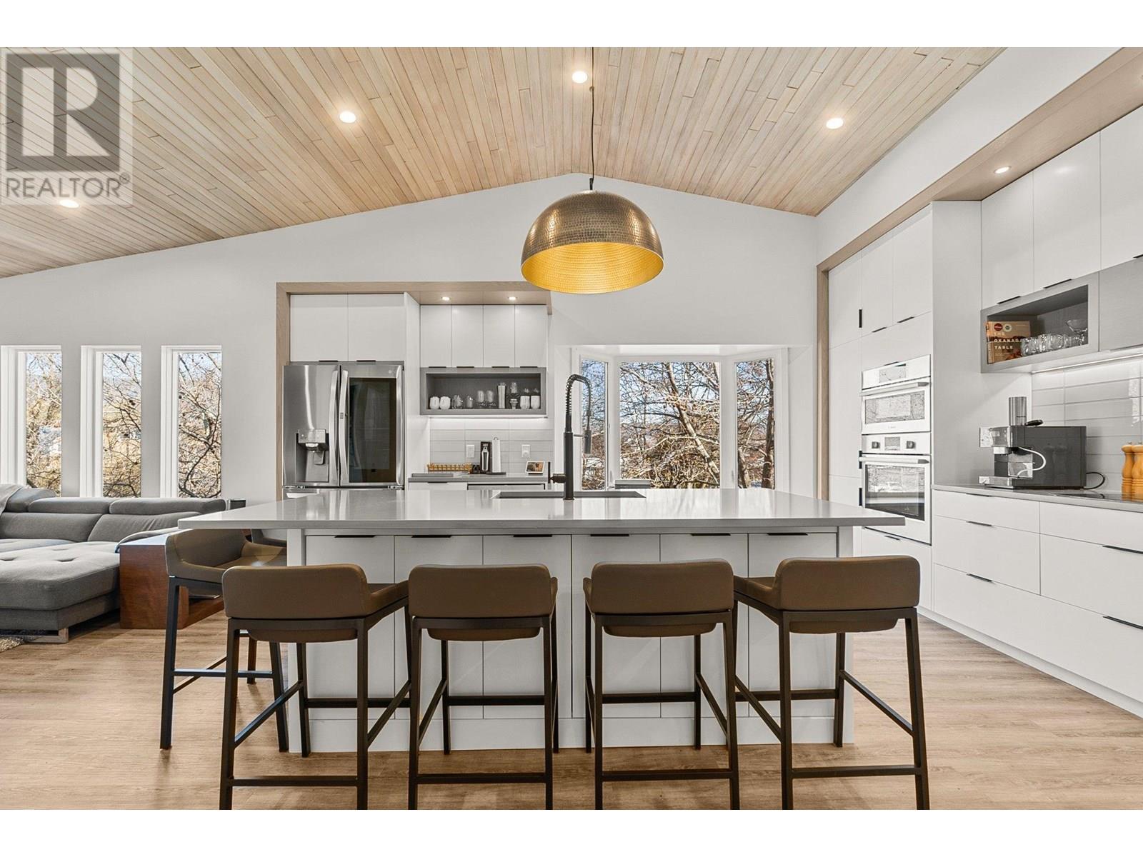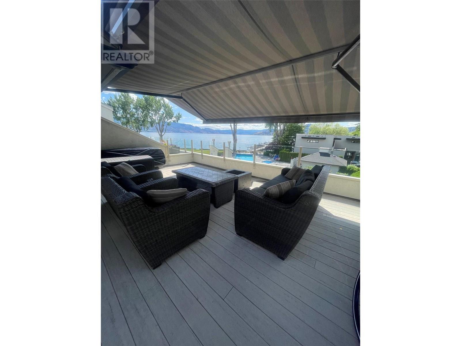 OPEN HOUSE, SATURDAY, NOVEMBER 1, 2025 11AM - 1PMHOSTED BY JENNIFER SCHWITZER, CANADA FLEX REALTY 250-258-3967. Welcome to the best kept secret on the waterfront in the heart of Pandosy Village area! Must sought after area and this complex is a hidden gem! Located on Lake Okanagan with 350 feet of beachfront this complex offers the finest waterfront experience while being affordable. This unit is completely renovated, open floor plan with 3 bedrooms that accommodates 8 sleeping comfortably, 2 full baths including a steam shower in the primary suite. Enjoy the most of summer living with the outdoor pool, hot tub, generous grass area and your own private boat slip with lift. Top floor unit with soaring vaulted cedar lined ceiling. A complete renovation in 2021 includes high end kitchen with quartz countertops, stainless steel appliances, wine fridge, induction stove, heated tile bathroom floors, electric fireplace...no details were overlooked. The attic provides for additional storage and accommodates all the mechanical units. Come take a look today and join the other 30 owners living the Okanagan dream!! (id:58842)