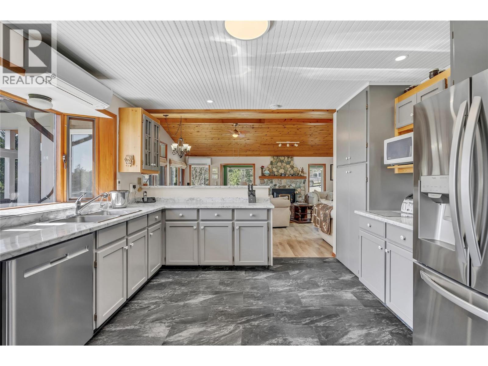 Remarkable 56-acre property offers the utmost in privacy & breathtaking views. Rancher, with bright foyer entry, leading to a living rm, new lux vinyl plank floor, Blaze King Princess insert. Vaulted ceilings & lg daylight windows create a spacious, inviting atmosphere, with a stunning stone fireplace. Open kitchen includes a eating bar, new floor & appliances. Dining area with French doors. 3 bedrooms & 2 baths, inc a master suite with a 4-piece bath & WIC. Laundry rm with 4-piece bathroom. Enjoy the covered stamped concrete patio, with hot tub & BBQ, perfect for entertaining & watching Okanagan sunsets. The property boasts over two acres surrounding the home, secured with deer fencing, automatic gate entry, & cameras for peace of mind. Two-car garage with a breezeway to the front door provides convenience. Detached garage w/200 amp service, 2 bays, & 531 sq ft workshop w/ wood stove, basement & cold storage area an extra 385 sq ft, ideal for storage. A greenhouse, fenced garden area, fruit trees. Water via 2 legal licenses, a drilled well on-site ready to hook up. Home has a RO system & a Grundfos pump. Mini split heat pumps for efficient cooling & heating yr-round. All this 20 minutes from Summerland, close to recreation amenities. Starlink Internet is available for reliable connectivity. Situated on a no-thru road, near school bus route, ensuring convenience for families. It represents a dream come true. Contact us today to schedule a viewing. (id:58842)