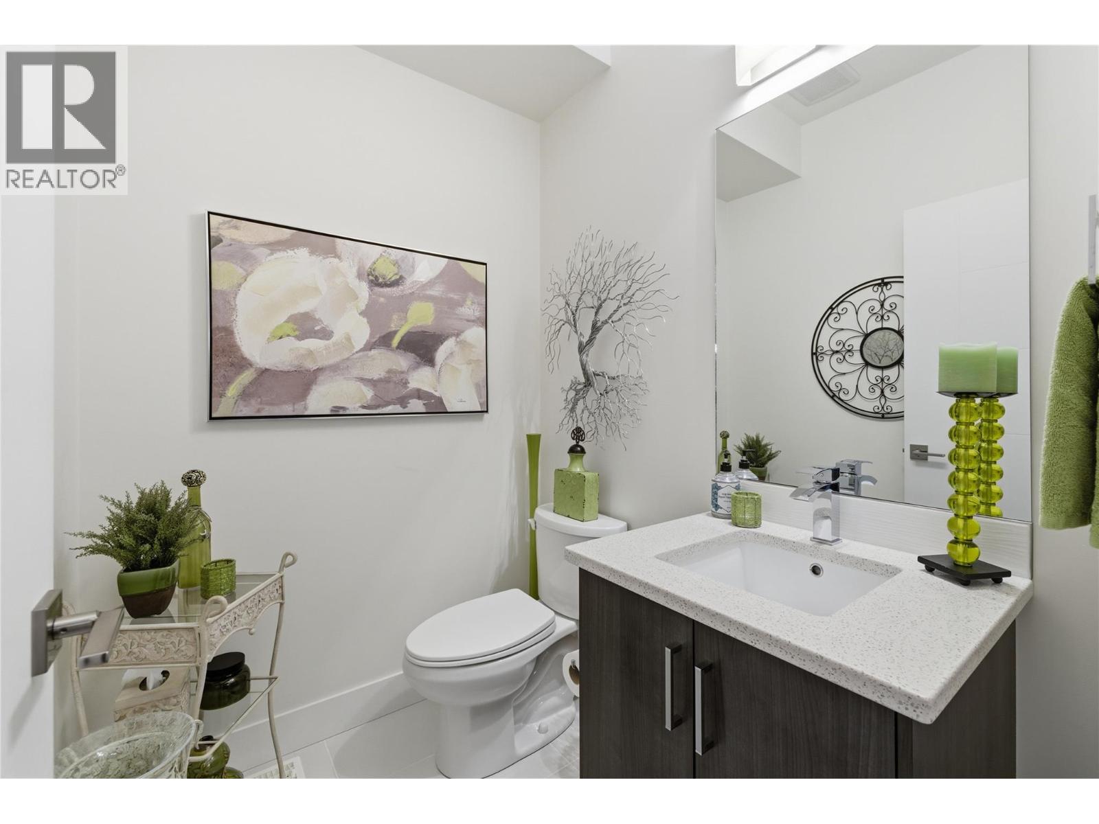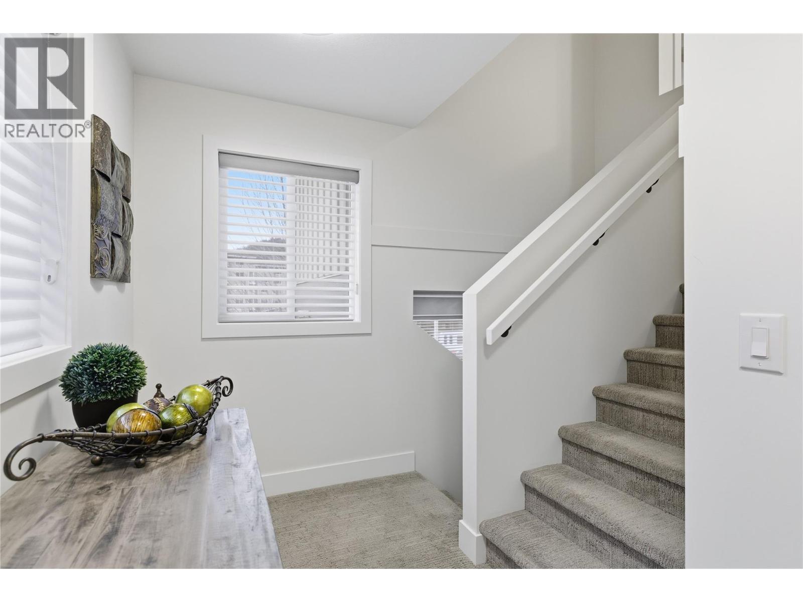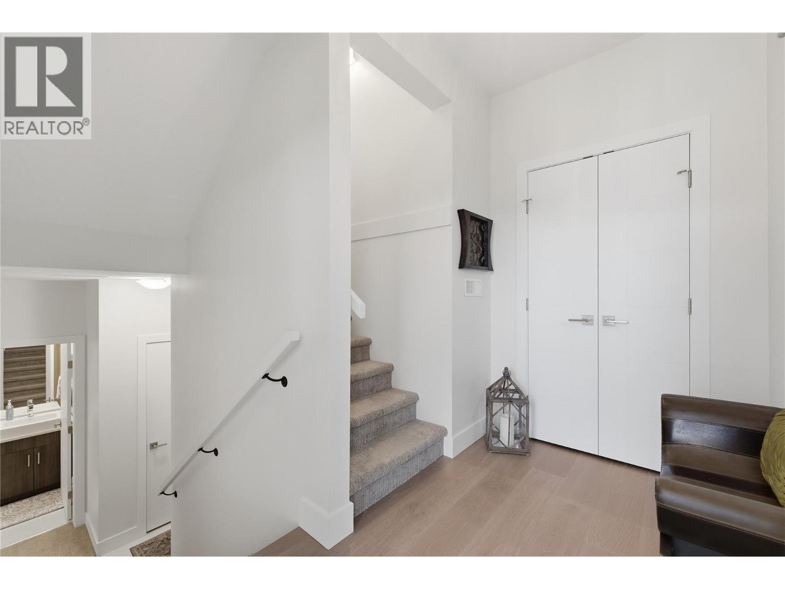 Bright and beautiful corner unit in the highly sought-after Grove development, offering modern lifestyle living in the heart of Glenmore. This like-new 3-bedroom, 4-bath townhome with a finished lower-level flex space is one of the largest units in the complex, blending comfort and style while being flooded with natural light throughout. High-end finishes include wide-plank engineered hardwood floors, high ceilings, and European-tiled bathrooms with luxurious fixtures. The open-concept main level showcases a chef’s kitchen with soft-close cabinetry, oversized island, quartz countertops, stainless steel appliances, and an electric fireplace in the living room. Two distinct outdoor living spaces enhance the home’s appeal: a covered deck off the kitchen—perfect for morning coffee—and a walk-up front patio ideal for entertaining. A heated double car garage and low strata fees add to the convenience. The finished lower-level flex space includes a full 4-piece bathroom and large walk-in closet, offering versatile options for guests, family, or work-from-home needs. Centrally located just steps to shopping, restaurants, Brandt’s Creek Linear Park, hiking trails, and the new Glenmore Recreation Park with skateboard park, pickleball courts, sports fields, and more. Close to Dr. Knox Middle School and three elementary schools. Don’t miss this opportunity for high-end, convenient Okanagan lifestyle living for the whole family. (id:58842)