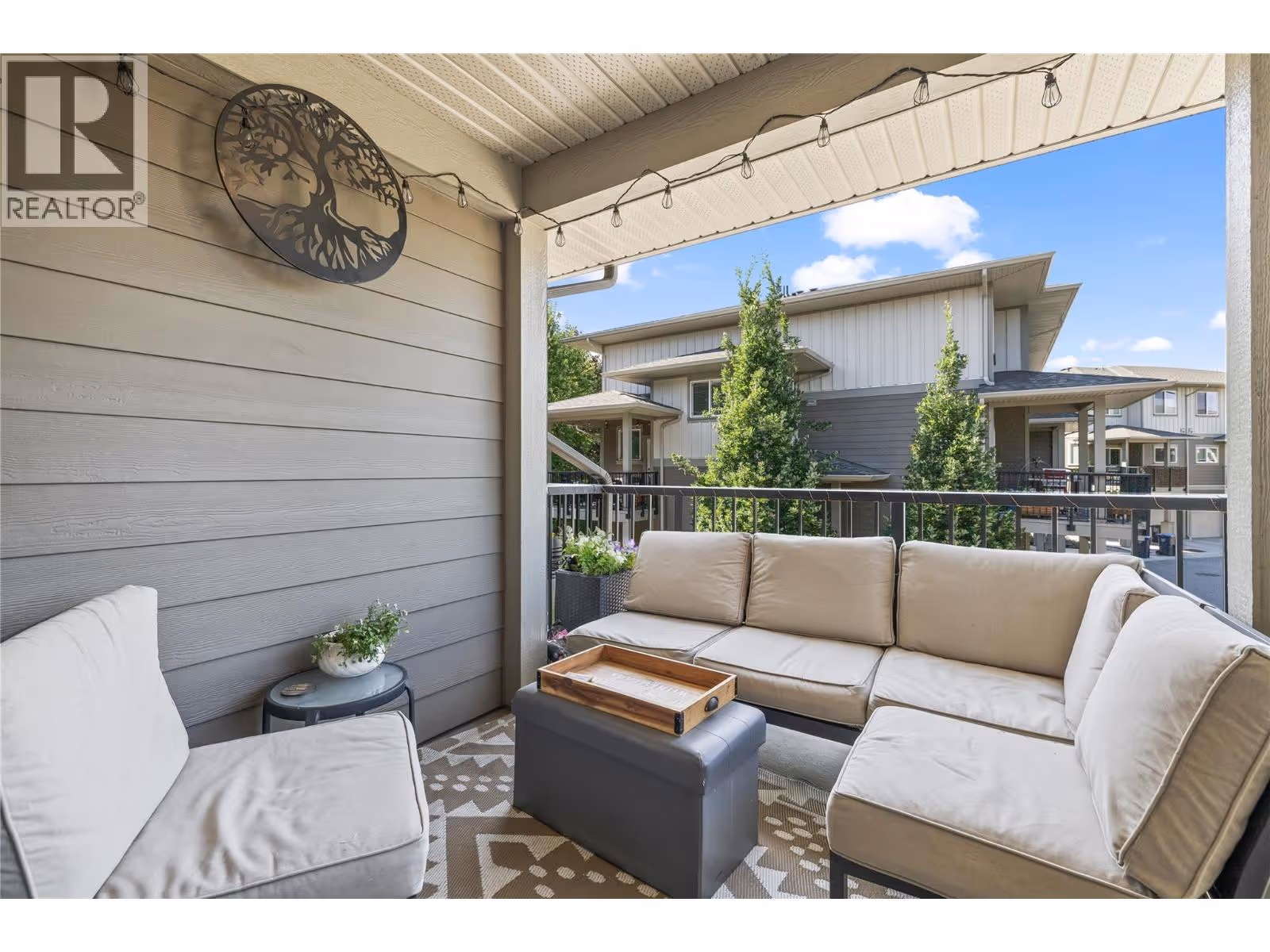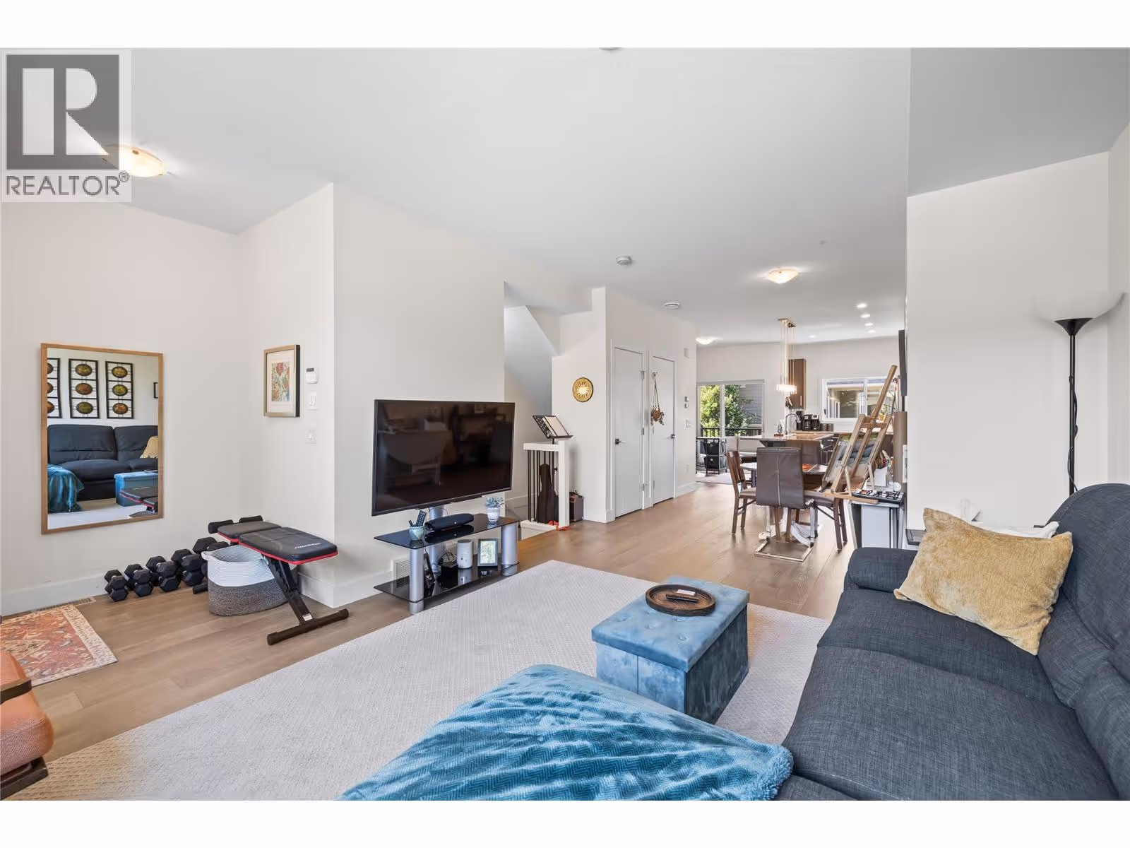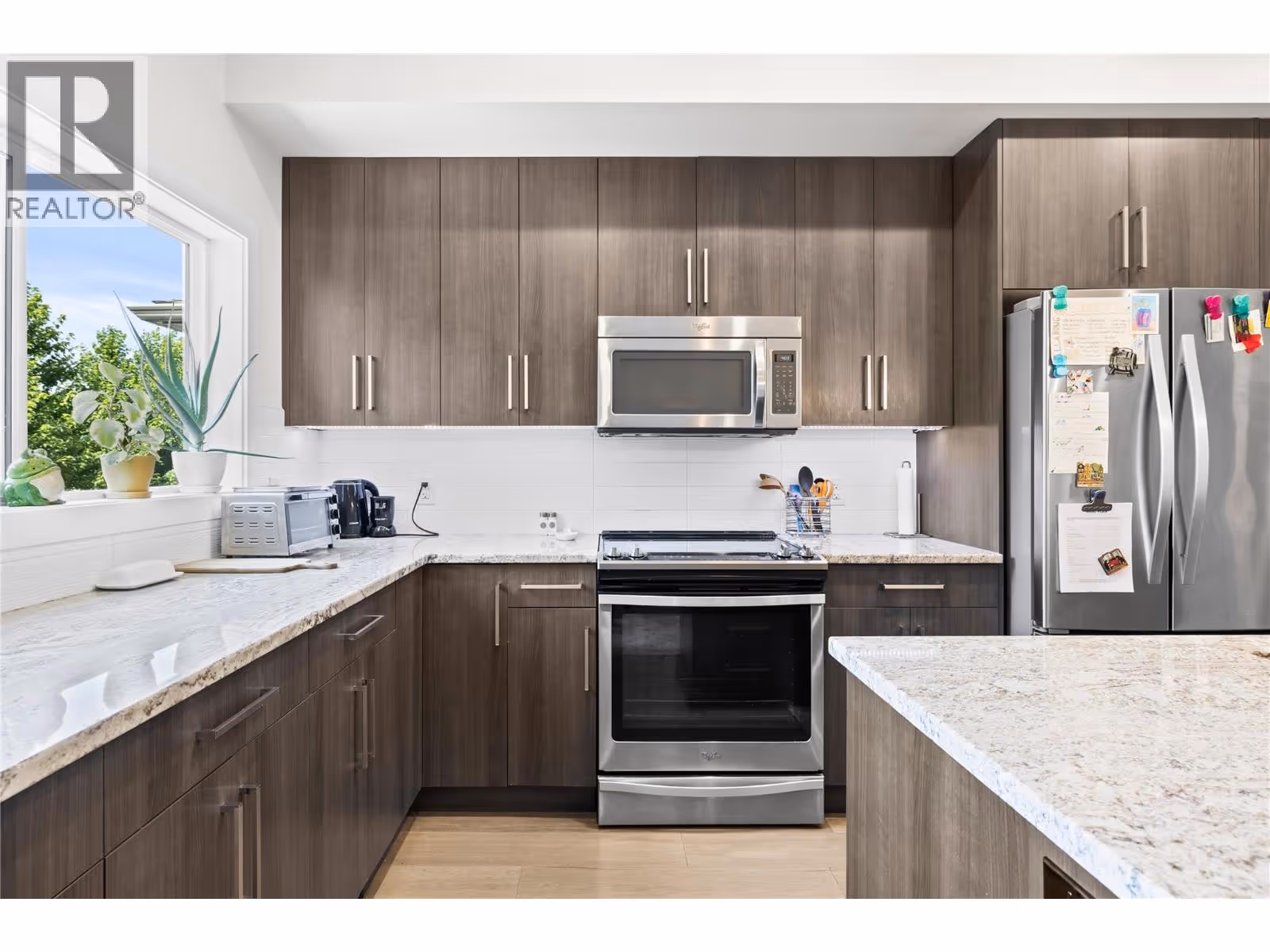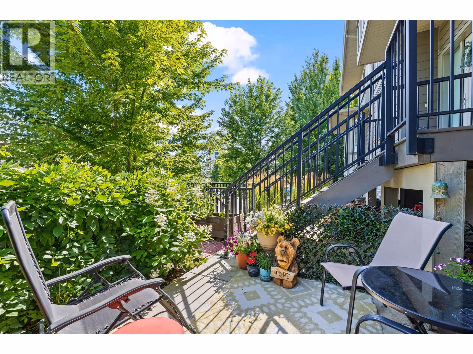 Welcome to The Grove, a well-maintained townhome community in the heart of family-friendly North Glenmore. This 1,587 sq. ft. 3 bed, 3 bath home is move-in ready and features an open-concept floor plan, perfect for modern living. The spacious kitchen offers a large island, stainless steel appliances, and direct access to a covered balcony ideal for outdoor dining. The main level also includes a generous front patio, great for morning coffee or entertaining. You'll appreciate the built-in vacuum system and ample storage throughout the home. Upstairs, you’ll find three bedrooms and a full bathroom. The primary suite features a walk-in shower and a large walk-in closet with built-in organizers. The ground level includes a double tandem garage with potential space for a home gym, office, or flex room. Conveniently located just steps from Save-On-Foods, IGA Marketplace, and public transit, and only a 2-minute drive to École Dr. Knox Middle School. UBCO and Kelowna International Airport are just 10 minutes away. The Grove is pet-friendly with no height, weight, or breed restrictions for dogs; plus there is an off-leash dog park nearby. This is the perfect blend of comfort, convenience, and community. **AVAILABLE FOR QUICK POSSESSION** (id:58842)
