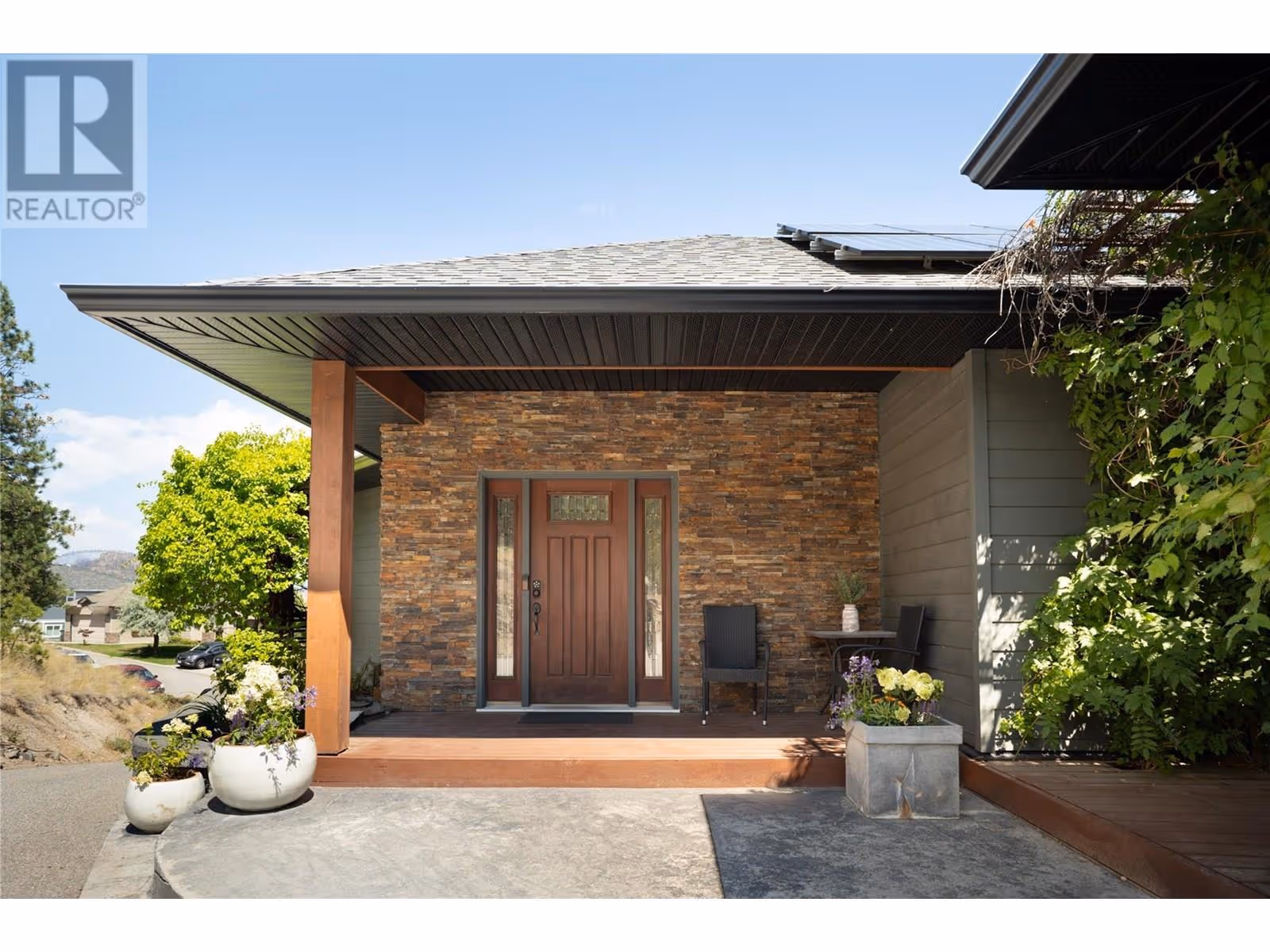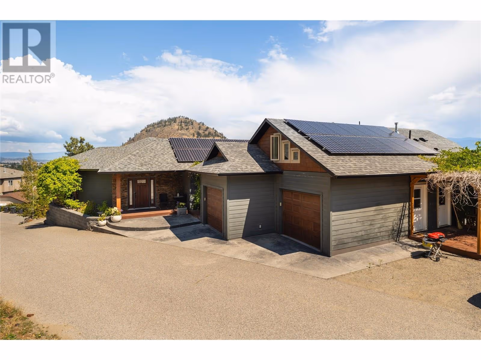 A truly special offering—this multi-residence property blends architectural quality with flexibility, revenue potential, and future development opportunities. The primary home offers over 2,600 sq. ft. of thoughtfully updated living space with new countertops, paint, new hot water tank and recently upgraded appliances. Built with energy-efficient ICF concrete walls and enhanced by a 28-panel solar system, the home stays comfortable year-round with excellent soundproofing and in-floor radiant heat. Hardwood and slate flooring, gas fireplace, and quality finishings add to the overall appeal. Completely separate from the main home, the secondary residence functions like a stand-alone house offering 1386 square feet of living space. Vaulted ceilings, open-concept design, and a spacious loft create a light-filled living experience with privacy and character. This space has always rented at a premium and is fully legal with the City—ideal for long-term tenants, guests, or a high-performing Airbnb. A double garage with divided bays and additional storage adds further versatility. Together, both residences generate strong monthly income, making this property a smart investment or multi-generational living solution. Set in a quiet, established area with stunning views nearby, there’s also exciting development potential—whether adding a third dwelling or expanding the existing structures. A legacy property offering lifestyle, income, and long-term value. (id:58842)