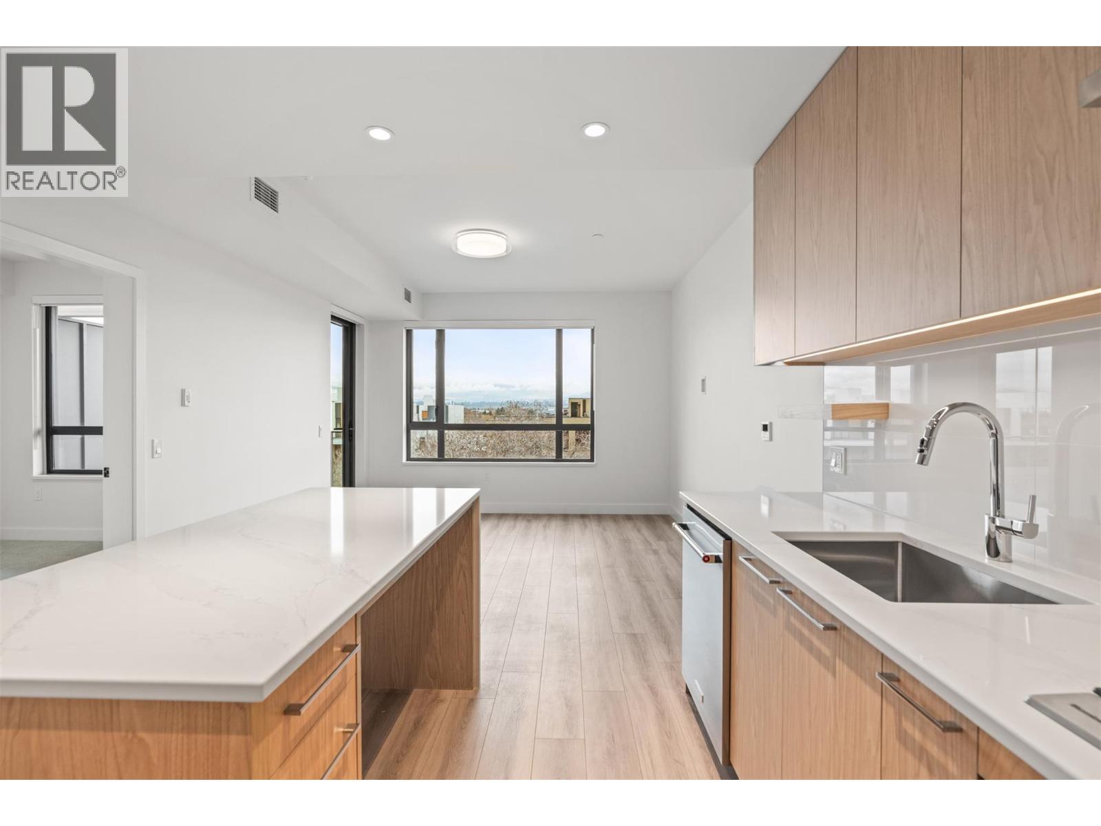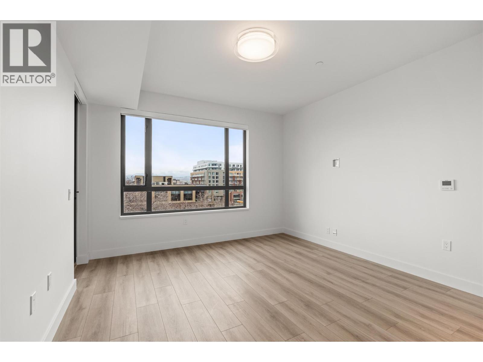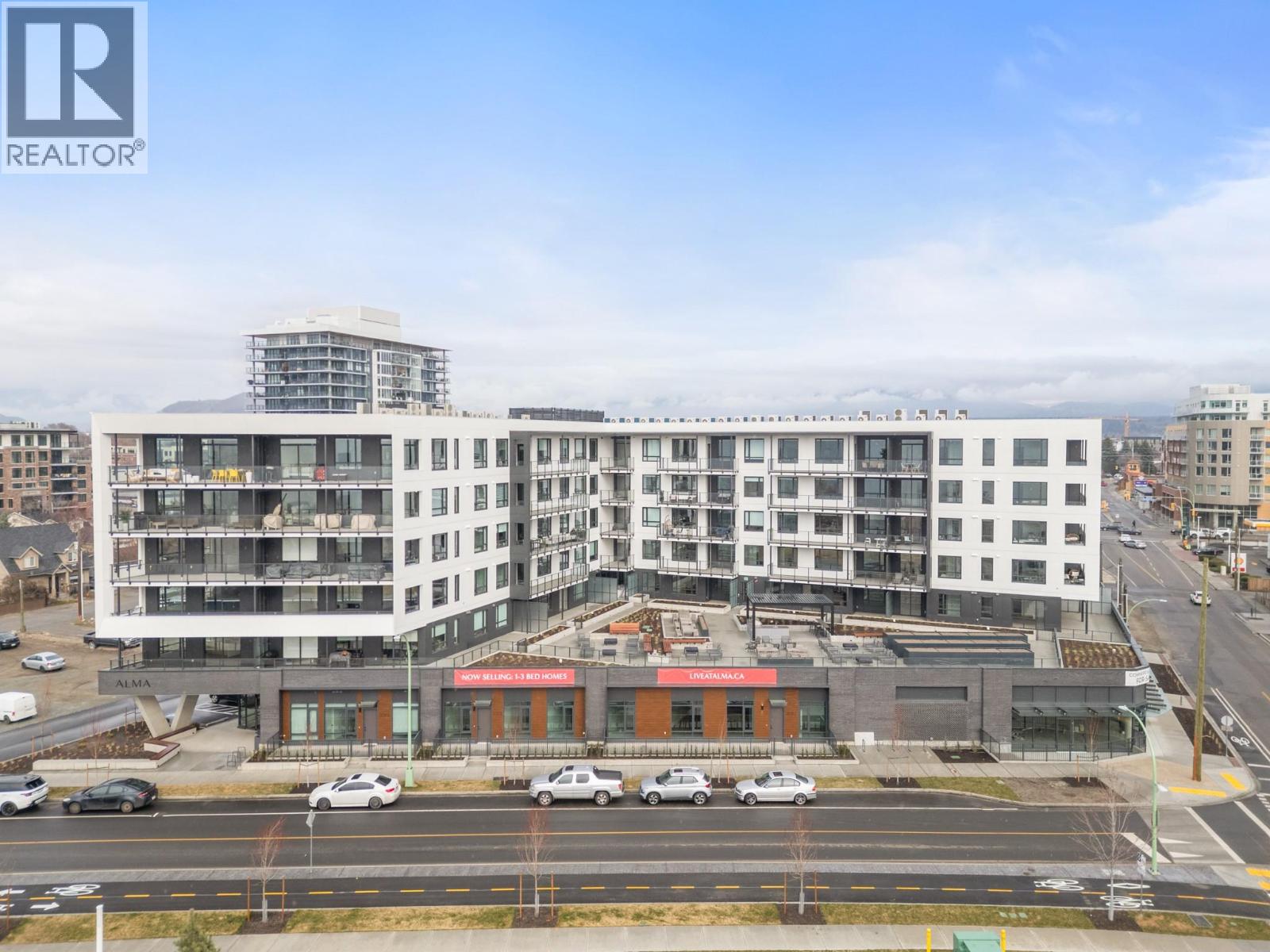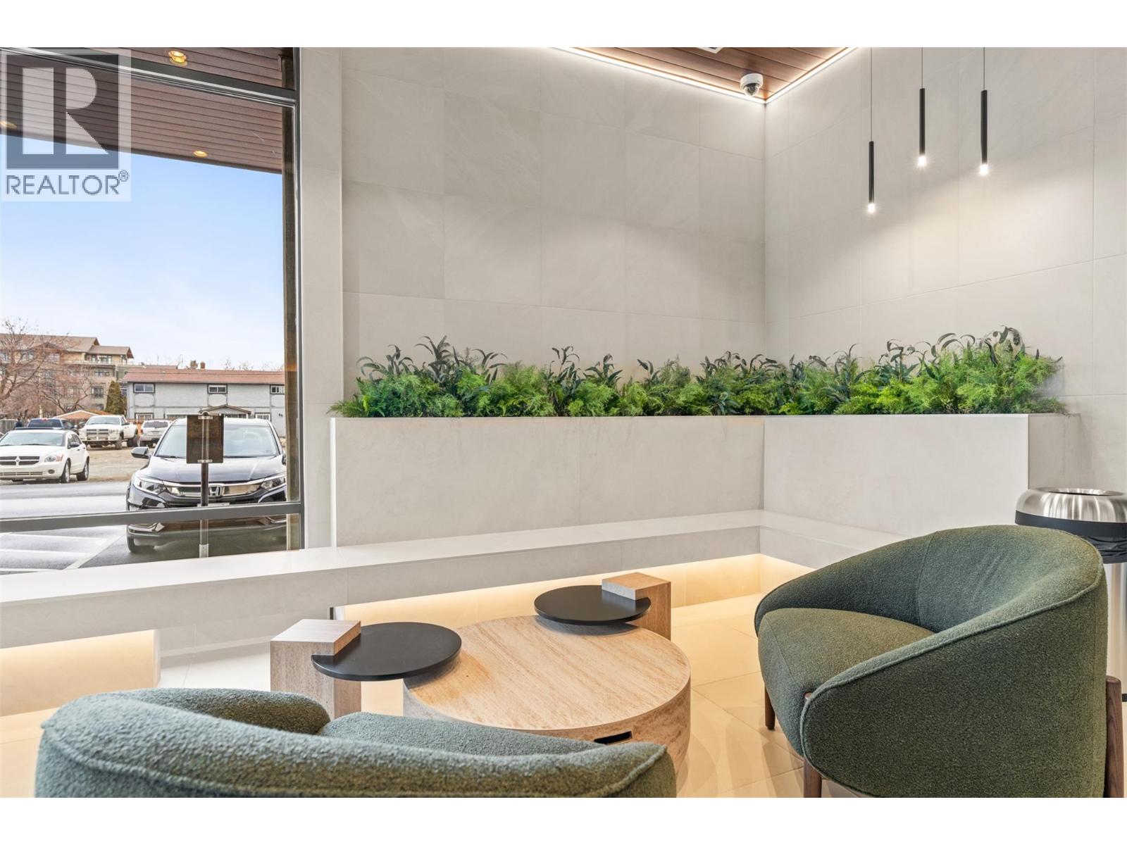 Introducing ALMA, proudly crafted by Mission Group. This 5th floor east-facing 1-bed, 1-bath home is filled with beautiful morning light, offering 540 sqft of interior living plus a 100 sqft terrace, seamlessly pairing intentional design with elevated finishes in the heart of the Lower Mission. The striking kitchen features sleek flat-panel wood-grain cabinetry, a dramatic quartz waterfall dining island, and premium stainless-steel appliances. The open-concept layout is perfectly suited for everyday living and effortless entertaining, enhanced by expansive windows that flood the home with natural light, durable laminate flooring through the main living areas, and plush woven broadloom carpeting in the bedroom. The primary suite boasts a walk-through closet, while the ensuite showcases large-format tile, a rainfall shower, custom-tiled niche, and soft ambient lighting that creates a retreat-like escape. Additional highlights include roller shades on every window, individually controlled heating and cooling, and one secure underground parking stall. Residents enjoy access to amenities including an 8,000 sqft lakeview terrace with firepits, BBQs, and community gardens, plus a fully equipped fitness centre, dog wash, and bike maintenance station. With a walk score of 93, you’re just steps to transit, KGH, the shops and dining of vibrant Pandosy Village, and the shores of Okanagan Lake. Sqft & room sizes are approximate & may vary. This new home is move-in ready. Exclusive of GST (id:58842)