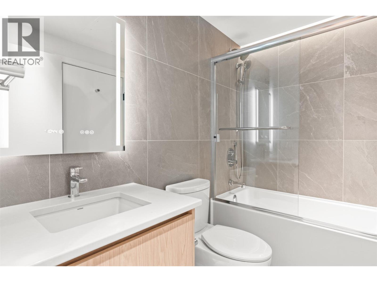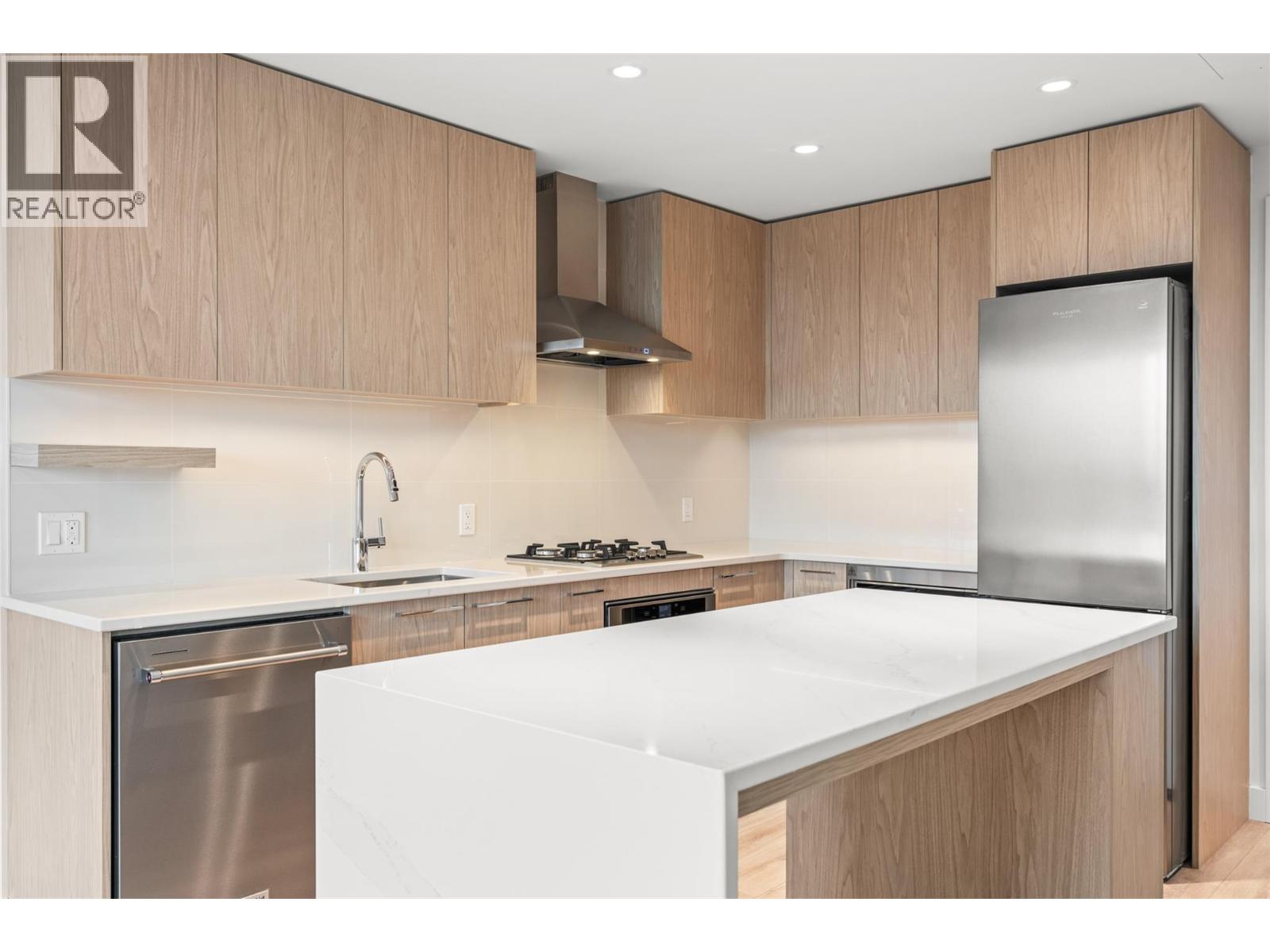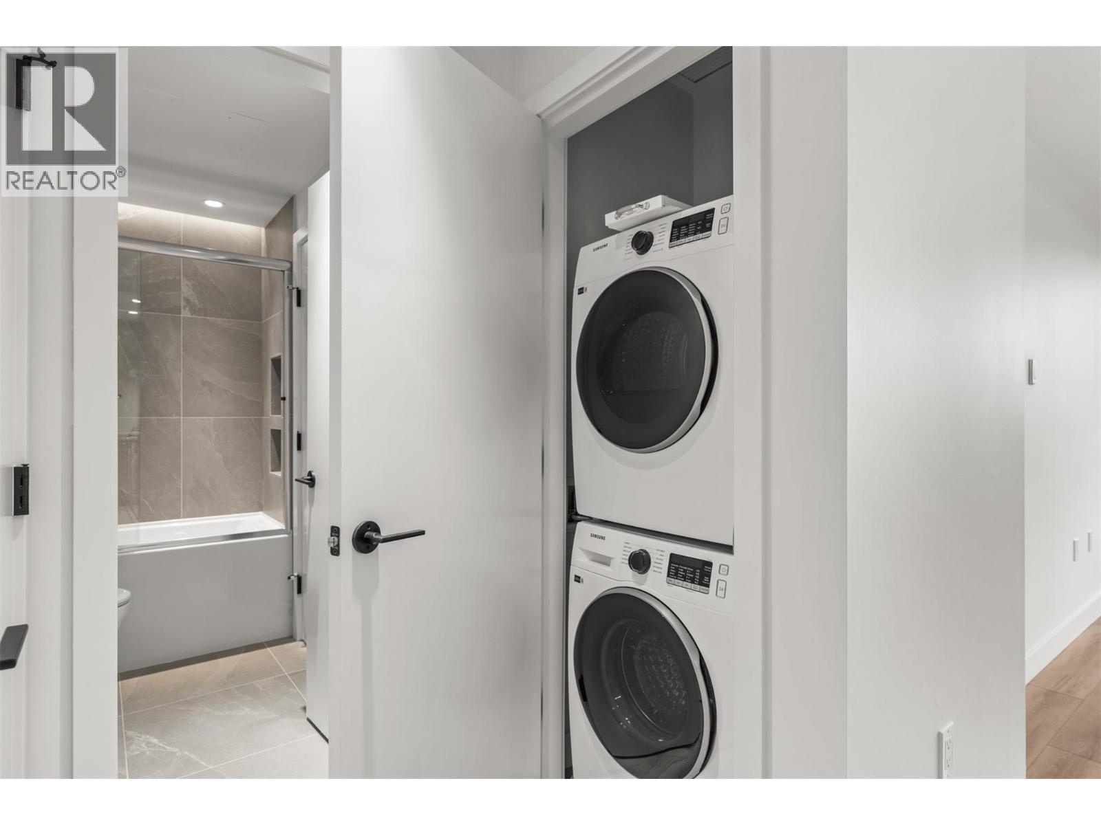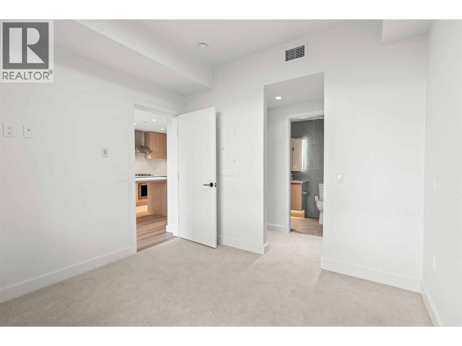 Introducing ALMA, proudly crafted by Mission Group. This 5th floor east-facing 1-bed, 1-bath home is filled with beautiful morning light, offering 540 sqft of interior living plus a 100 sqft terrace, seamlessly pairing intentional design with elevated finishes in the heart of the Lower Mission. The striking kitchen features sleek flat-panel wood-grain cabinetry, a dramatic quartz waterfall dining island, and premium stainless-steel appliances. The open-concept layout is perfectly suited for everyday living and effortless entertaining, enhanced by expansive windows that flood the home with natural light, durable laminate flooring through the main living areas, and plush woven broadloom carpeting in the bedroom. The primary suite boasts a walk-through closet, while the ensuite showcases large-format tile, a rainfall shower, custom-tiled niche, and soft ambient lighting that creates a retreat-like escape. Additional highlights include roller shades on every window, individually controlled heating and cooling, and one secure underground parking stall. Residents enjoy access to amenities including an 8,000 sqft lakeview terrace with firepits, BBQs, and community gardens, plus a fully equipped fitness centre, dog wash, and bike maintenance station. With a walk score of 93, you’re just steps to transit, KGH, the shops and dining of vibrant Pandosy Village, and the shores of Okanagan Lake. Sqft & room sizes are approximate & may vary. This new home is move-in ready. Exclusive of GST (id:58842)