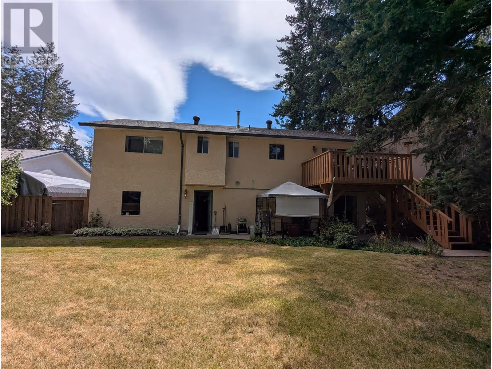 Great 4 bedroom 2.5 bath family home on quiet street with large lot and double garage. Three beds up with an ensuite off the main bedroom. Open kitchen with a deck overlooking the spacious and treed backyard. There is a free standing gas fireplace in the living room with great light from the bay windows. In the lower level there is a large bedroom and a family room leading to the backyard. The lower level laundry room has a toilet and washbasin as well as being pre-plumbed for a shower. It would be possible to create a separate suite downstairs.. There is a large office at the end of the large double garage which could also be incorporated into the lower living area. Property has irrigation and is very private. Tons of parking and possibility of RV parking beside the garage. Hot water tank was installed in 2020. This is a very quiet and peaceful street with quality homes. Possession is subject to probate and is estimated to be available in October. Come and view today! (id:58842)