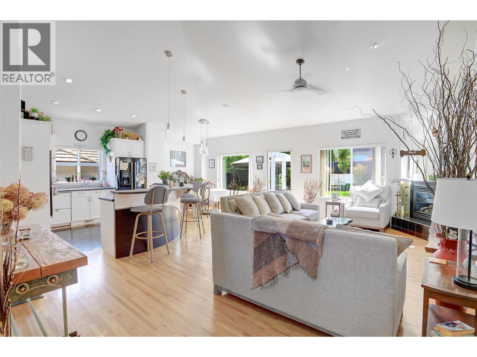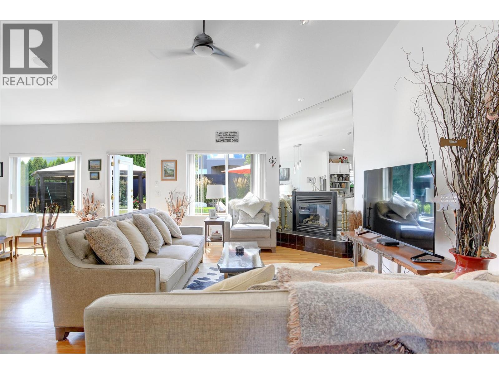 Located in a quiet cul-de-sac in the highly sought-after University area, this spacious 4-bedroom, 3-bathroom detached home offers 3,000 sq.ft. of comfortable living space. The open-plan main floor features a large great room with soaring vaulted ceilings, a cozy corner gas fireplace, and beautiful hardwood flooring. Walk out from the main level to a private deck and landscaped garden, ideal for outdoor entertaining. The home includes two master-sized bedrooms, with the primary suite offering a luxurious ensuite featuring a corner soaker tub and separate shower. A separate laundry room and utility room provide added functionality. The lower level boasts a second corner gas fireplace, a theatre and games area with durable laminate flooring, and a partial kitchen with a wet bar sink and under-counter fridge, perfect for guests or entertaining. Additional features include air conditioning, (Newer gas furnace & Heat pump) a double garage, and a mix of hardwood, carpet, and laminate flooring throughout. Conveniently located near top golf courses, hotels, grocery stores, a liquor store, pharmacy, and post office, this home is a perfect blend of comfort, space, and prime location. (id:58842)