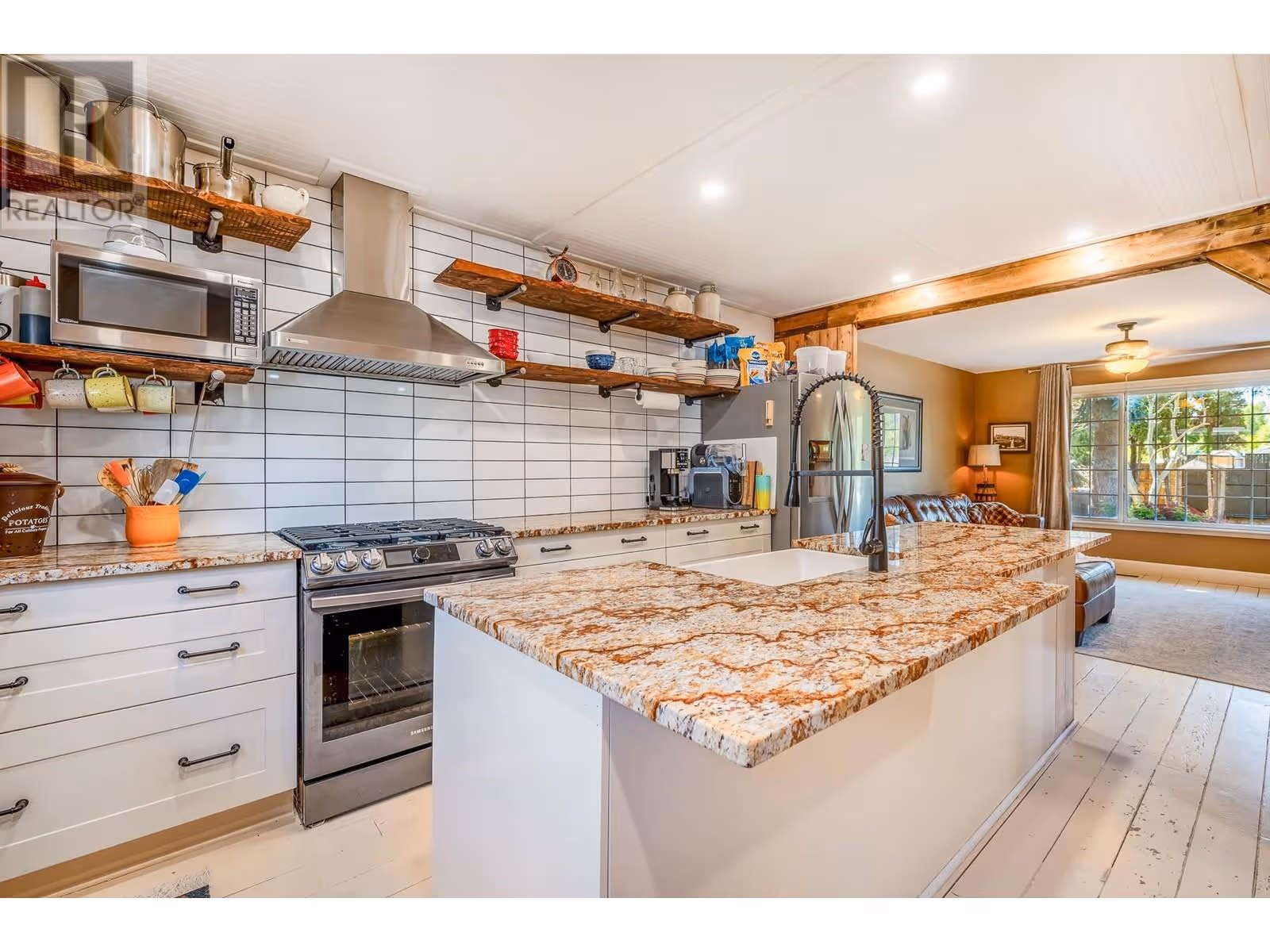 Beach Vibes + Bold Style! Just a 10-min walk to Beasley Park and Wood Lake, this character-filled home blends Okanagan lifestyle with modern comfort. Substantially renovated in 2022 with bold, stylish finishes and now connected to City water, it’s ready for relaxed living—or epic entertaining. Inside, a bright open layout connects effortlessly to a refreshed kitchen with granite counters, rich cabinetry, a gas stove, and a huge prep area - ideal for gathering. Full-size laundry, a walk-in shower, and spacious bedrooms add comfort and function. Outside, enjoy a fully fenced yard with privacy, a detached garage/workshop, RV parking with sani-dump, and no lawn to mow! The covered patio is a true outdoor room - perfect for lounging, dining, BBQs, entertaining and fireside marshmallow roasting. Skip the strata fees and condo compromises. This home offers freedom, flexibility, and space to live your way. Launch your Seadoo minutes away, sip wine under the lights, or visit shops, wineries, and farm stands - just minutes from your door. Downsizing, starting fresh, or seeking a stylish getaway? This beachside gem offers charm with real-world perks. Come see what makes it so special! (id:58842)