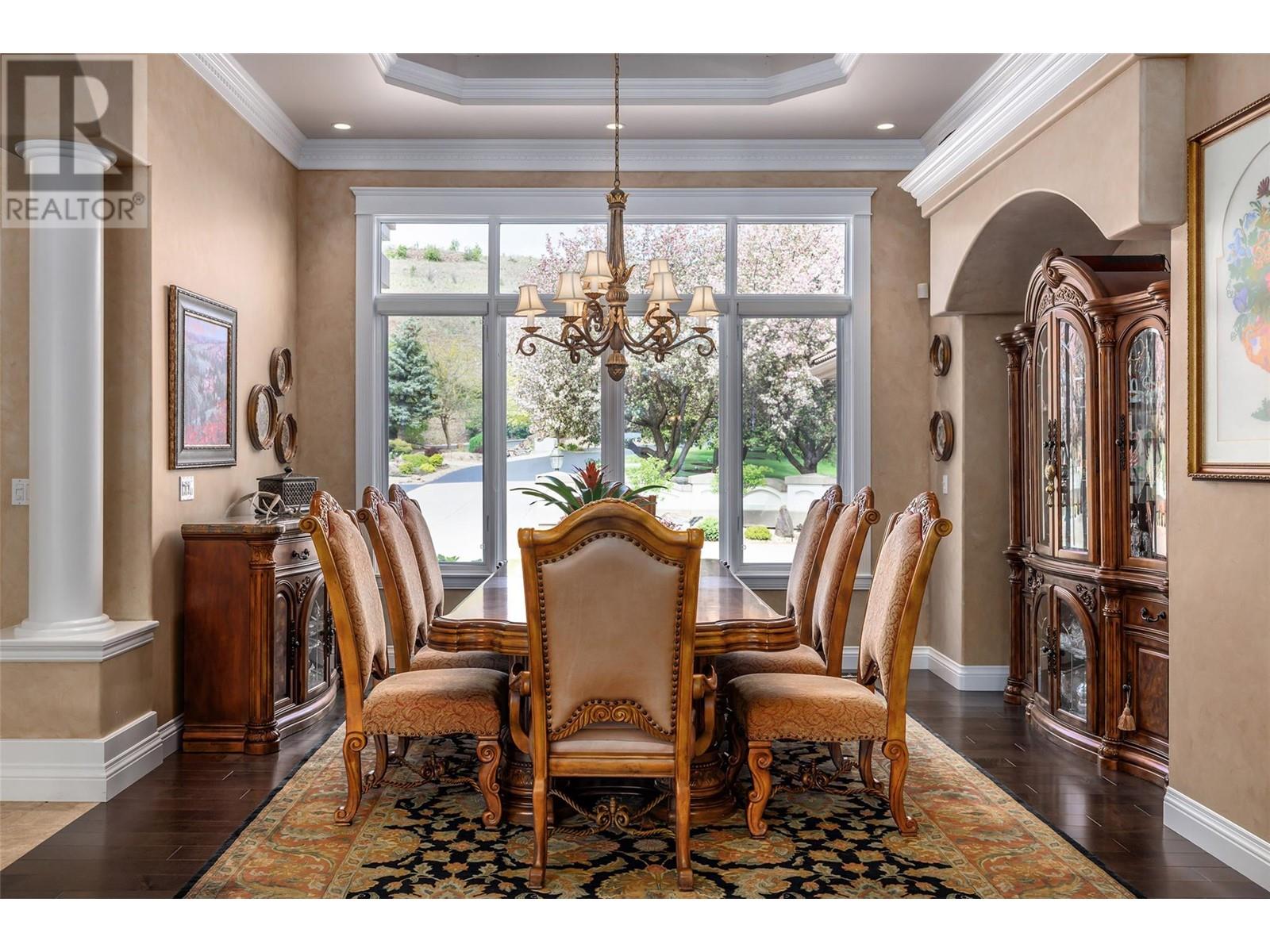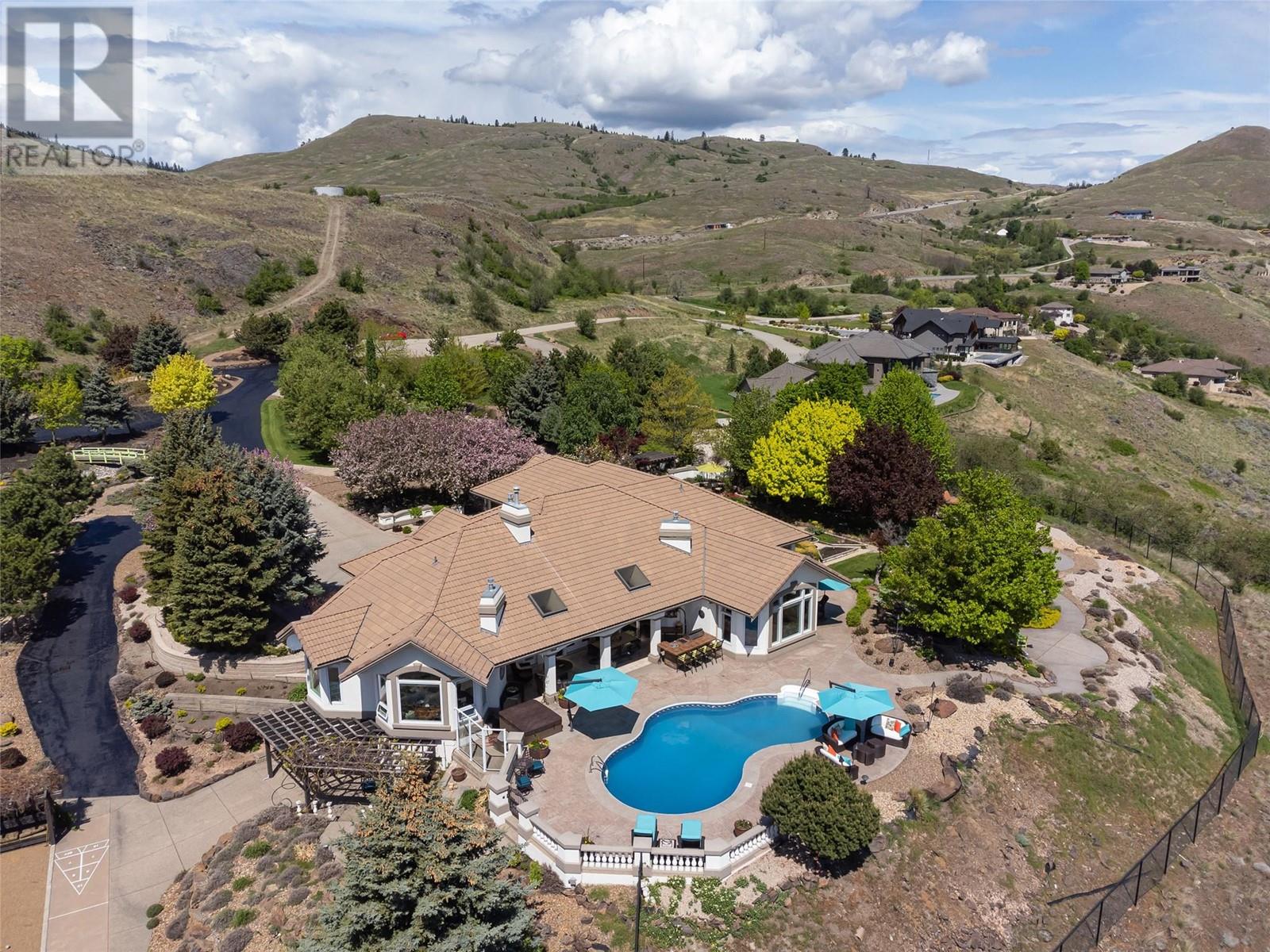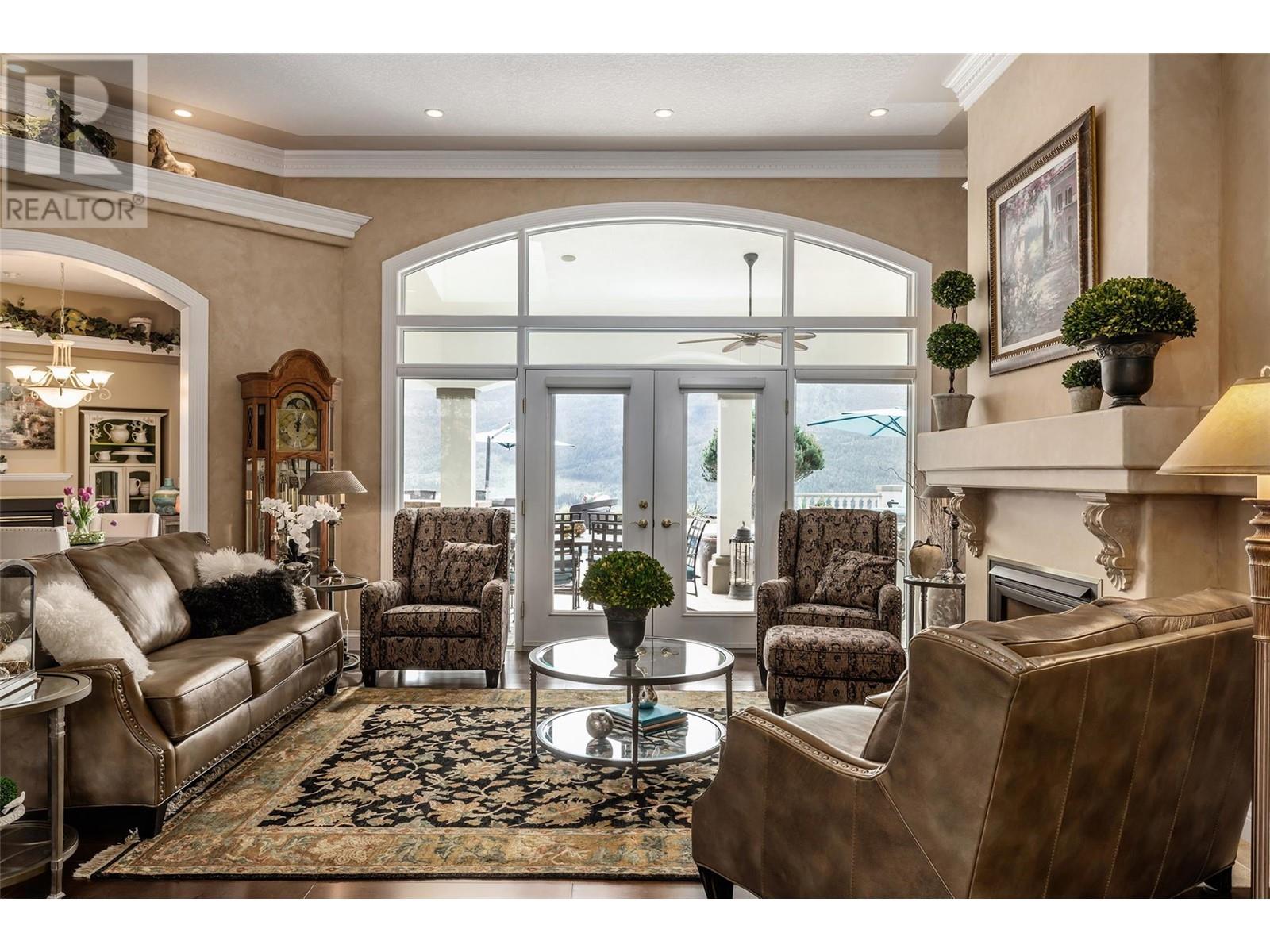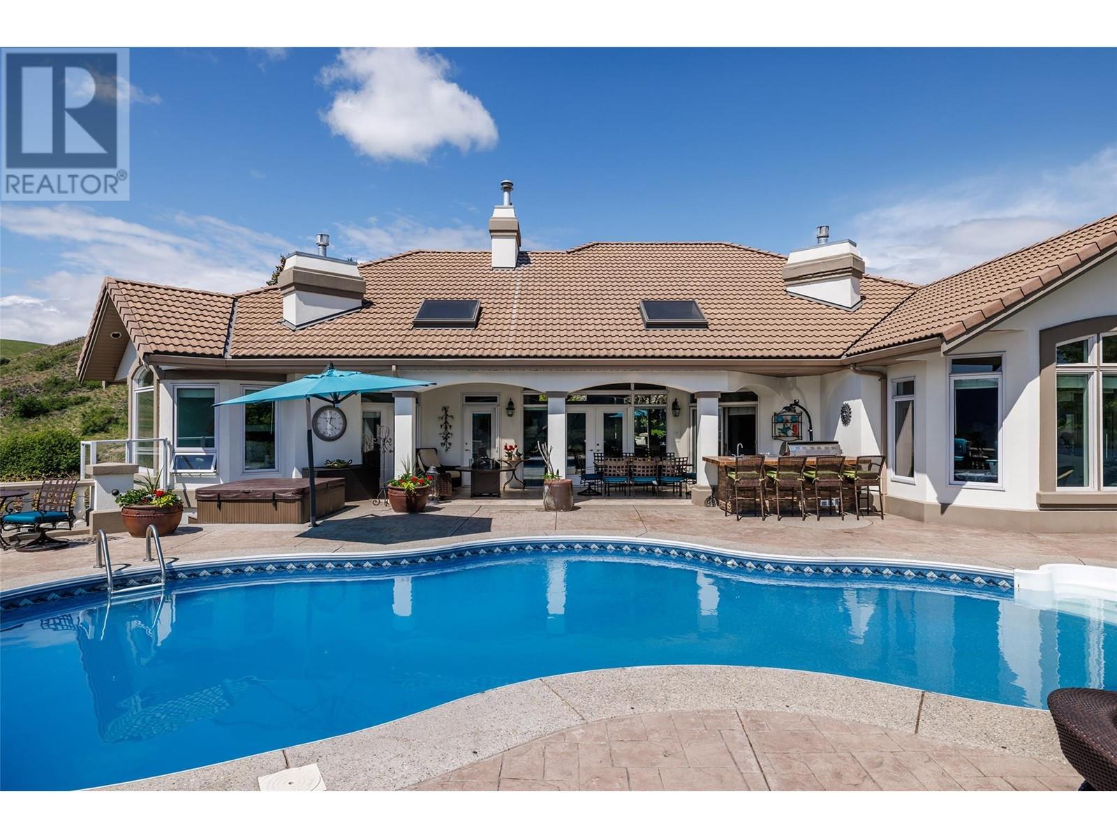 From the moment you arrive, breathtaking lake views and surroundings. A park like setting offering luxury and privacy with 180 degree unobstructed views of Kal Lake. Find yourself relaxing in many of the patio areas overlooking the lake. Sprawling 4 bed. 4 bath Rancher with views and patio doors in every bedroom. Tuscan inspired design with timeless elegance. Indoor/Outdoor living with outdoor kitchen, pool, hot tub, fireplace, bocce court, fire pit, garden pond and more. Chef's kitchen with high end appliances and granite countertops, formal dining, elaborate living and family room with crown mouldings, fireplaces, recessed ceiling lighting, patio doors, large oversized windows. Spacious primary bedroom with cozy fireplace, relax in the bathtub with unobstructed lake views. Triple car garage and lots of parking with tree lined driveway entering over 20 acres of Gardens and natural landscapes. Measurements are taken from I- Guide. Please verify if important. First time on the market. Close to rail trail, boat launch, Predator Ridge, Sparkling hill and 20 mins to Airport. Call today to book your tour of this masterpiece. (id:58842)