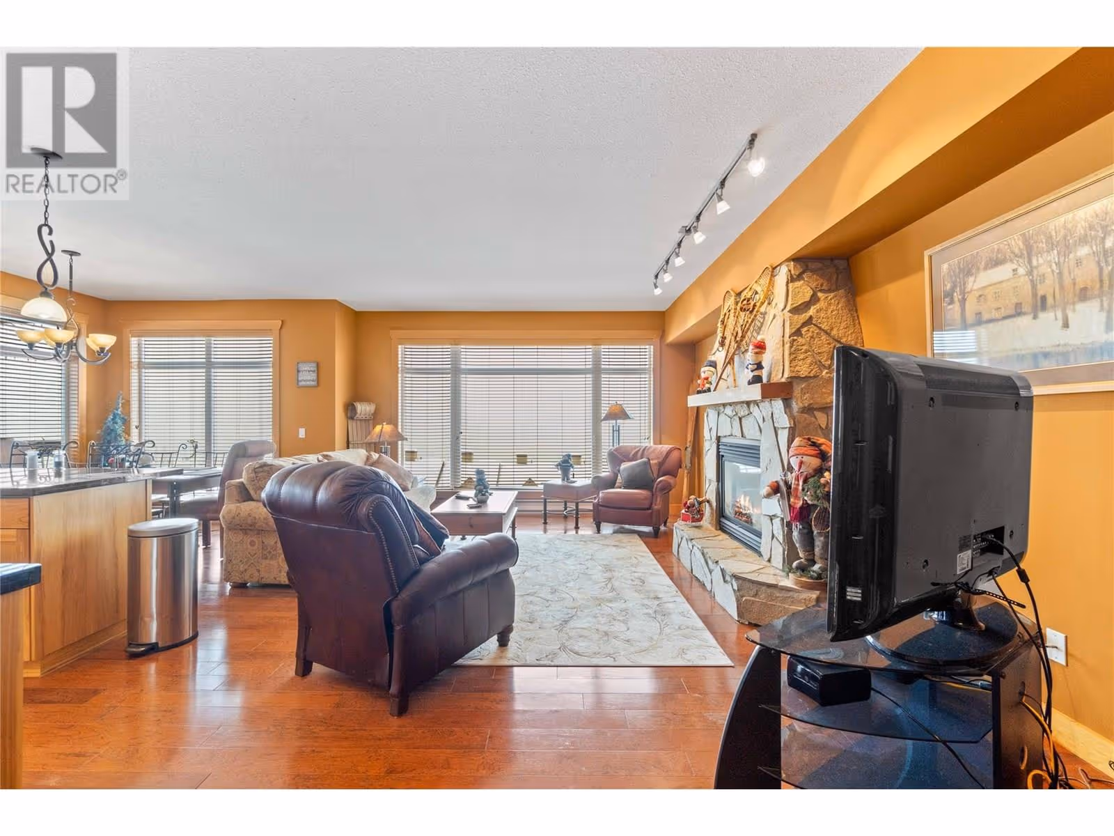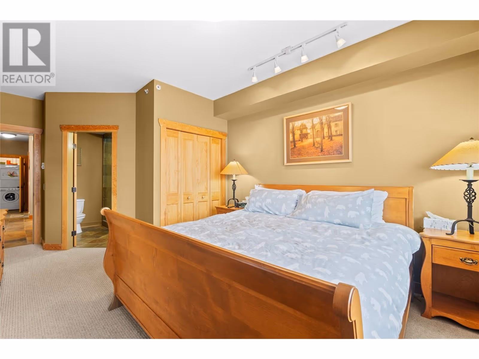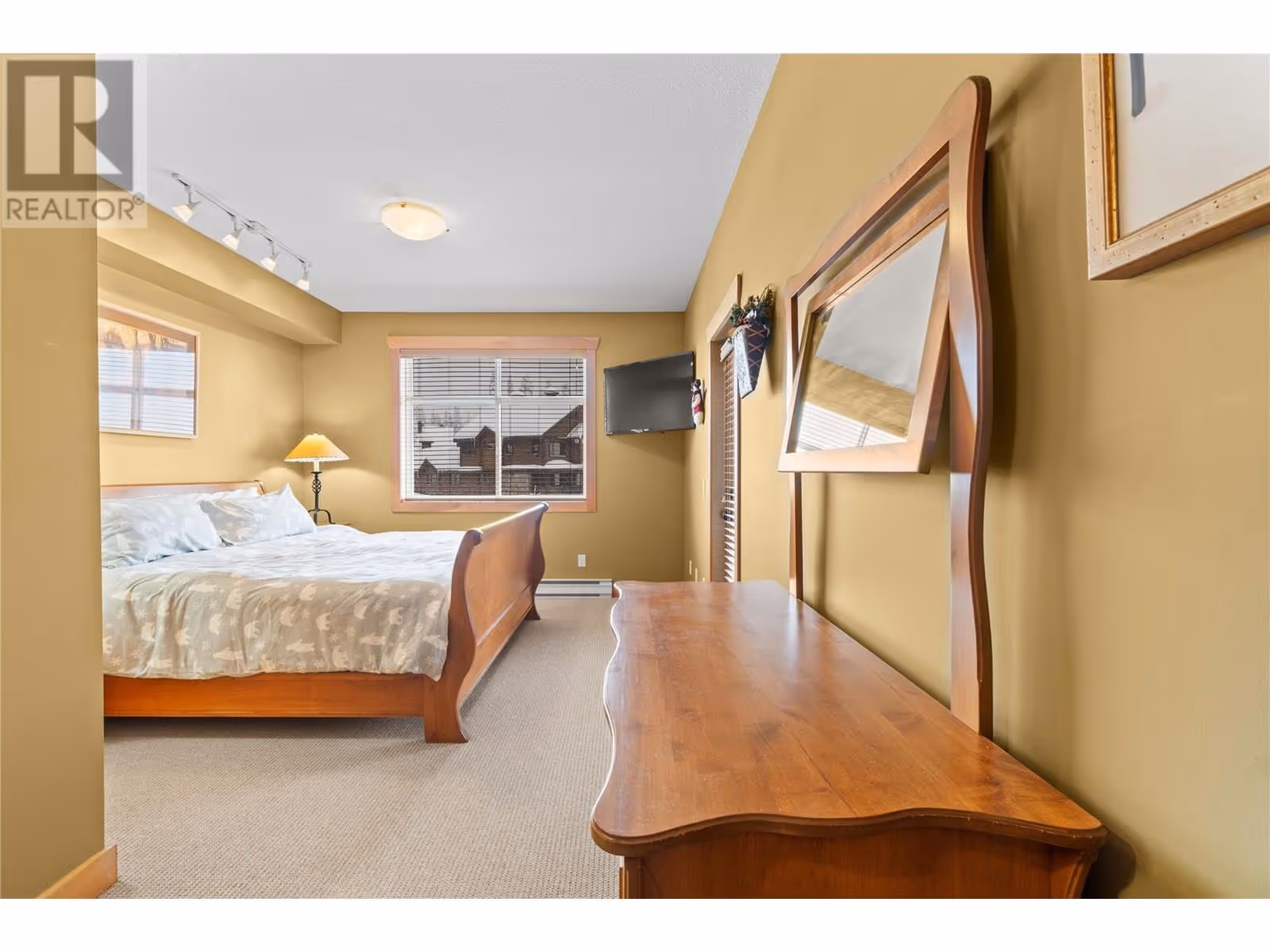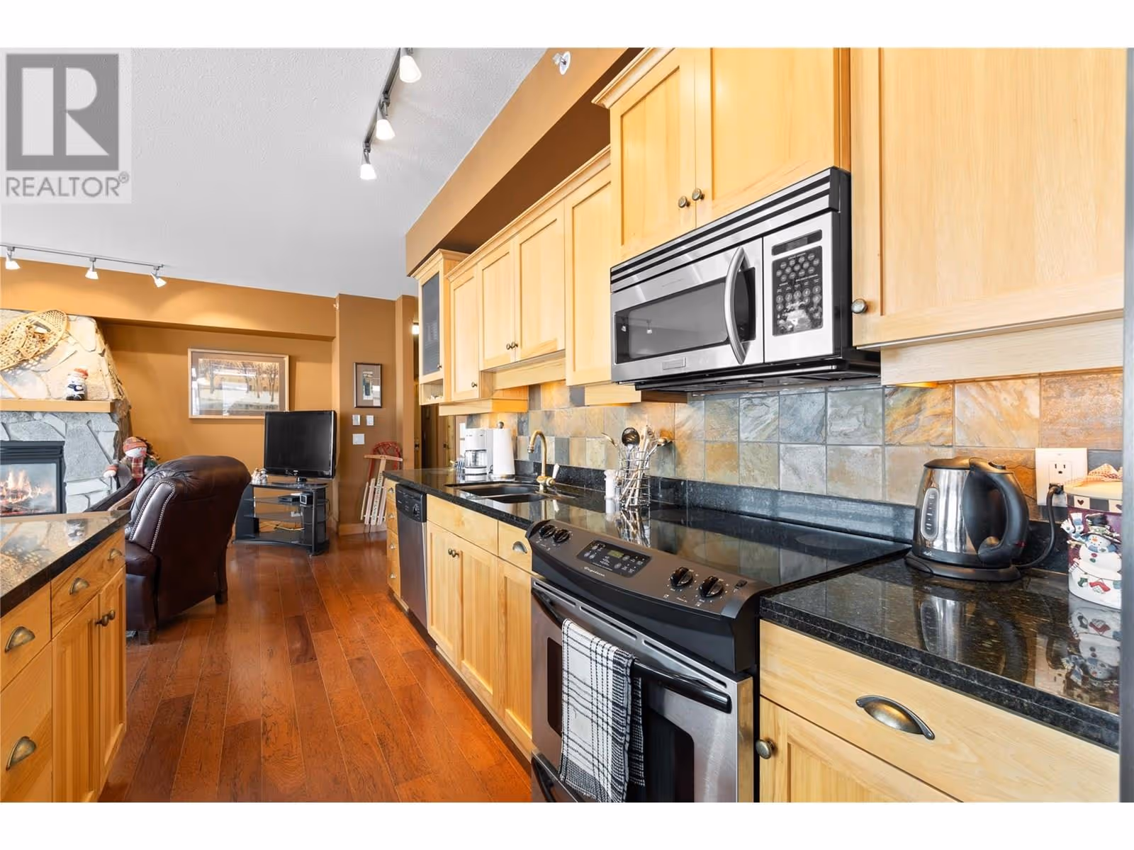 Top floor corner unit ski chalet with unobstructed views in Big White's favorite boutique bldg: Glacier Lodge. This ski in/out former show home boasts 2 bd + 2 bath ;has simply incredible views of the valley, Monashees and weekly fireworks. Easy access with a ski bridge 25 steps to your front door. 2 secure underground parking stalls & 2 ski storage lockers just steps from the unit. Centrally located right on Happy Valley Way you are just mins to the village or gondola. Private hot tub/balcony. In-suite laundry. Stainless appliances, granite counters. New fridge+microwave. Hardwood flrs, heated slate tiles, steam shower. Spacious entry, stone fireplace and over height ceilings. Smart floor plan with space to entertain or host family. Owner occupied, the unit has never been rented, well run strata and the unit is in excellent condition. No rental restrictions or revenue share required. Sold turn key ready to occupy for Jan 1 with all furniture, decor and linens/sundries. Sleeps 8. Newer washer/dryer, h/w tank, vacuum and under cabinet lighting. Measurements are approx. (id:58842)