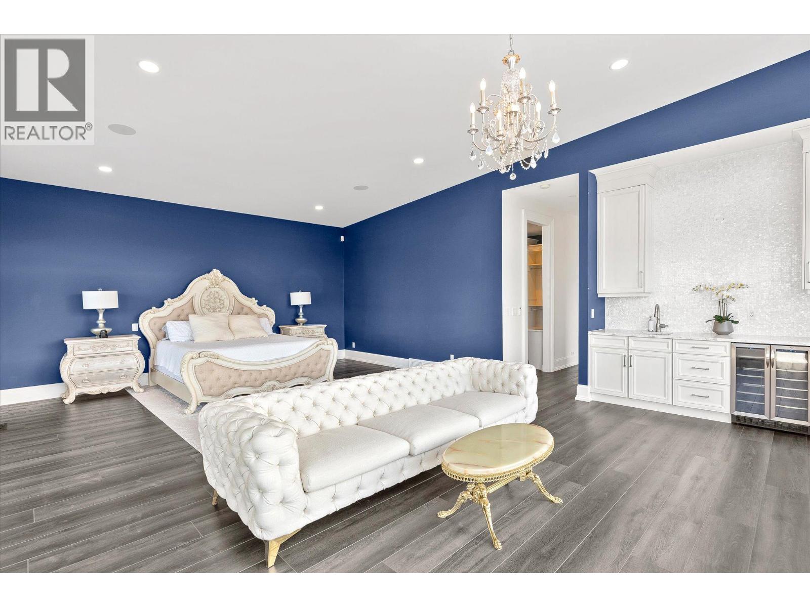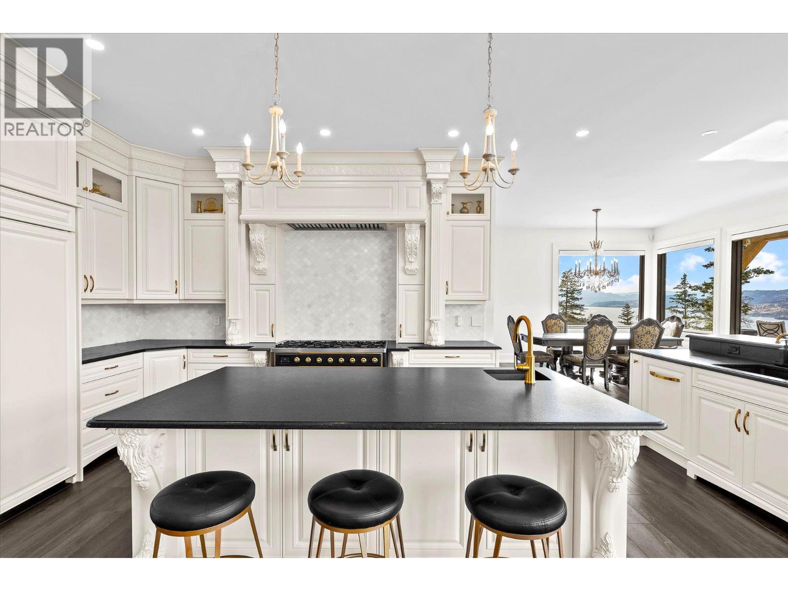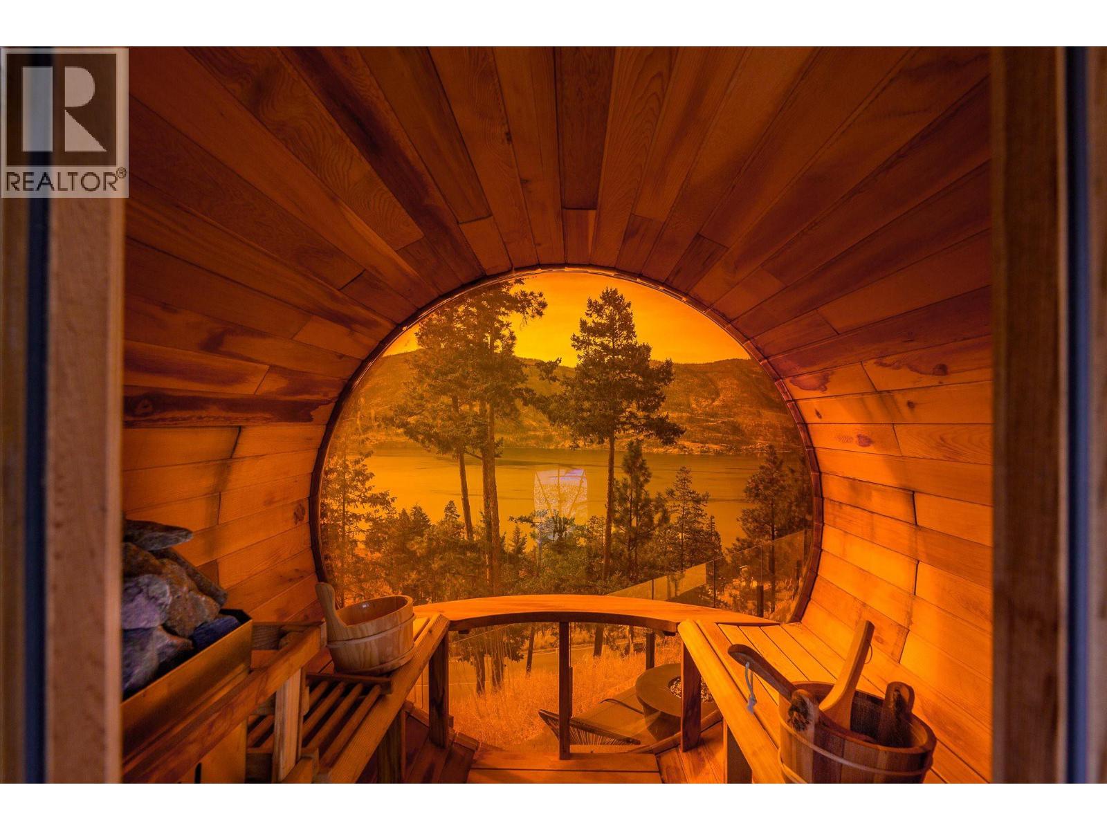 Experience Okanagan living on this remarkable 2.89 acre, gated estate in McKinley Landing. Built in 2018, this custom masterpiece offers breathtaking, unobstructed panoramic views of Okanagan Lake and spans nearly 5,000 square feet with six bedrooms and five bathrooms. At the heart of the home, a dramatic double height great room showcases floor to ceiling windows and a grand stone fireplace. The elevated kitchen boasts sleek custom cabinetry, premium integrated appliances, two islands and separate prep kitchen and is open to the dining room. An office, powder room, and theatre room finish off this level creating thoughtful spaces for relaxing and entertaining. The upper level features a sprawling primary suite complete with a private patio, a coffee bar, a spa like ensuite where a copper clawfoot tub overlooks the lake. The luxurious walk in closet and dressing room Is a dream, with custom cabinetry and centre island. The upper levels features three additional bedrooms and a sitting room. Step outside to enjoy sun soaked days by the pool and hot tub, or unwind in the sauna while taking in the sweeping lake views. The meticulously landscaped grounds feature a timber framed pergola and several lounging areas, offering exceptional privacy and tranquility. Additional highlights include high end finishes throughout, an oversized garage, and close proximity to Kelowna’s renowned wineries and beaches. This is a unique opportunity to own a gated estate in one of Kelowna’s most sought after settings. (id:58842)