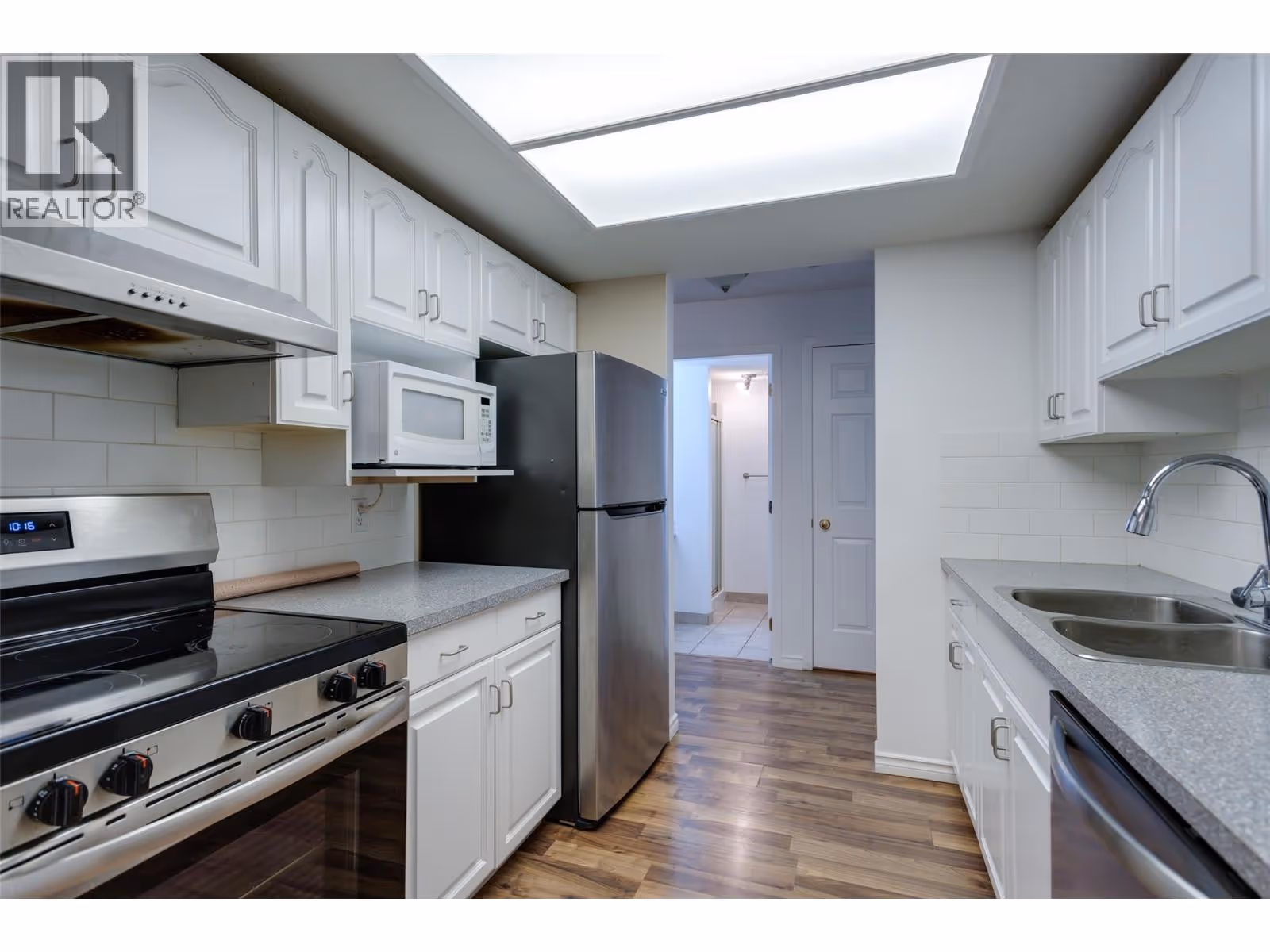 Welcome to #314 at Willowbrook Gardens – your peaceful oasis in the heart of Kelowna’s vibrant South Pandosy district. This spacious 2-bedroom, 2-bath condo offers over 940 sqft of updated living, ideally located on the quiet, pool-facing side of the building. Sip your morning coffee or unwind at sunset on your large covered balcony overlooking mature trees and a gently flowing creek. Freshly painted in calming neutrals and featuring a brand-new AC unit, this home shows pride of ownership throughout. The efficient galley kitchen, refreshed bathrooms, and smart layout make everyday living easy. You're just one floor below the indoor hot tub and gym—close enough for convenience, but far enough to keep the hallway traffic away from your door. Extras include a rare storage locker, covered parking, and flexible long-term rental rules—making this a great fit for both homeowners and investors. Leave the car parked—you're steps from Okanagan College, Urban Fare, Starbucks, Save-On-Foods, beaches, breweries, and a vibrant mix of cafés, fitness studios, and local shops. Gyro Beach, Pandosy Village, and Kelowna General Hospital are all within easy walking distance. Transit, bike paths, and e-scooters connect you to the rest of the city. Thoughtfully located, lovingly maintained, and ready for its next chapter—come see why #314 stands out. (id:58842)