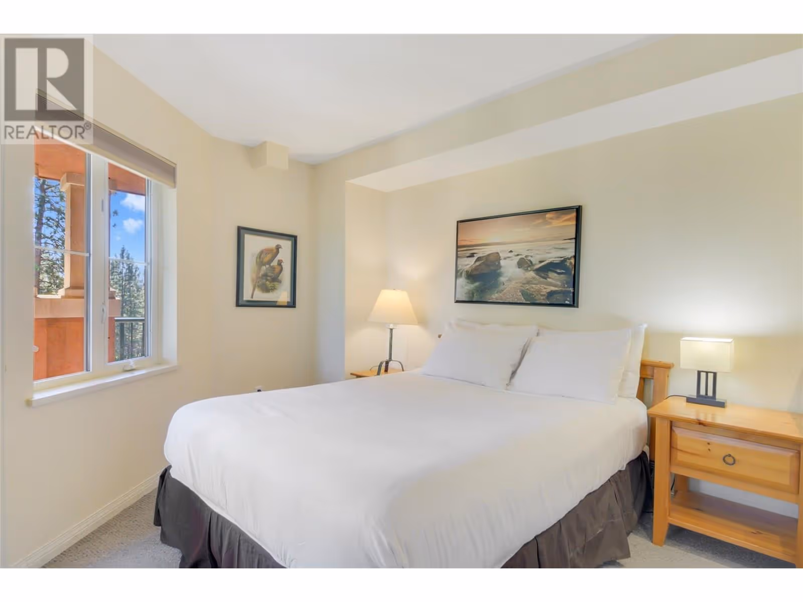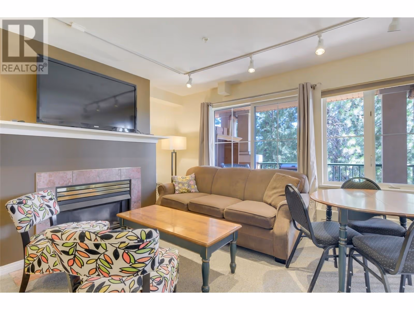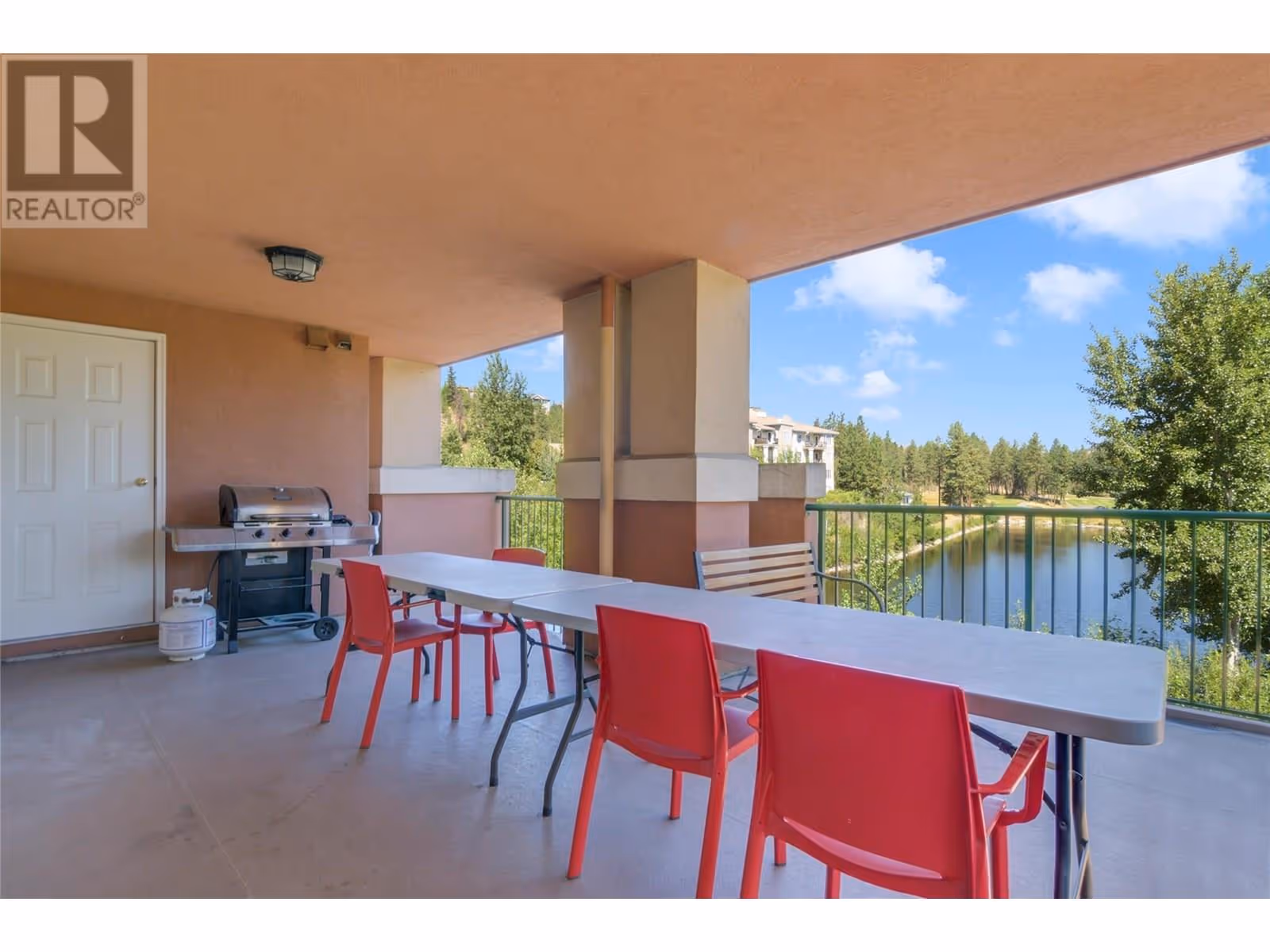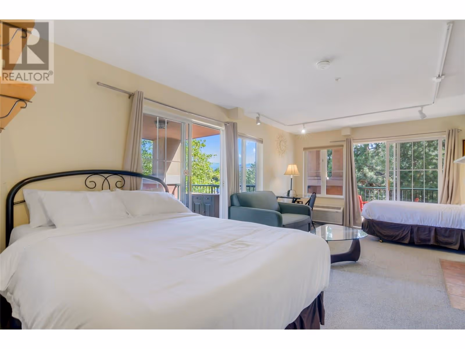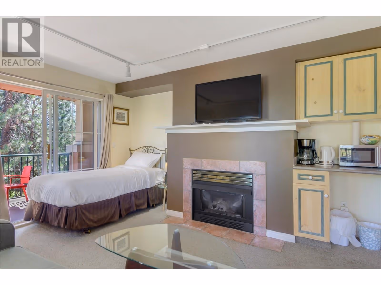 Exceptional Investment Opportunity at Borgata Lodge This large corner unit at Borgata Lodge benefits from its licensed Strata Hotel Accommodations designation, allowing for short-term rentals through a professionally managed proper front desk Ideally located just minutes from UBCO’s main campus and nearby shopping centre The largest unit of this type at Borgata Lodge, overlooks the beautiful Okanagan Golf Club, and El's lake pond. The clubhouse, golf academy and restaurant just a 3-minute walk. Perfect for seasonal use—rent to students, faculty or business individuals during the academic year, then transition to short-term vacation rentals in the summer. The Lodge manages all aspects of property operations, including bookings, housekeeping, and guest check-in/out, making this an effortless, hands-off investment. It offers excellent year-round rental potential. The unit features a flexible layout with two separate rentable adjoining studio suites or the option to use it as one full suite. Owners also have the option to live in one side and rent out the other as a mortgage helper. Each side includes its own gas fireplace and private deck each with a storage locker The unit comes fully furnished and includes in-suite laundry for added convenience. Natural Gas is included in the strata fees, helping to reduce heating costs—especially with fireplaces on both sides. One reserved underground parking stall is included. Please note: no pets permitted. (id:58842)