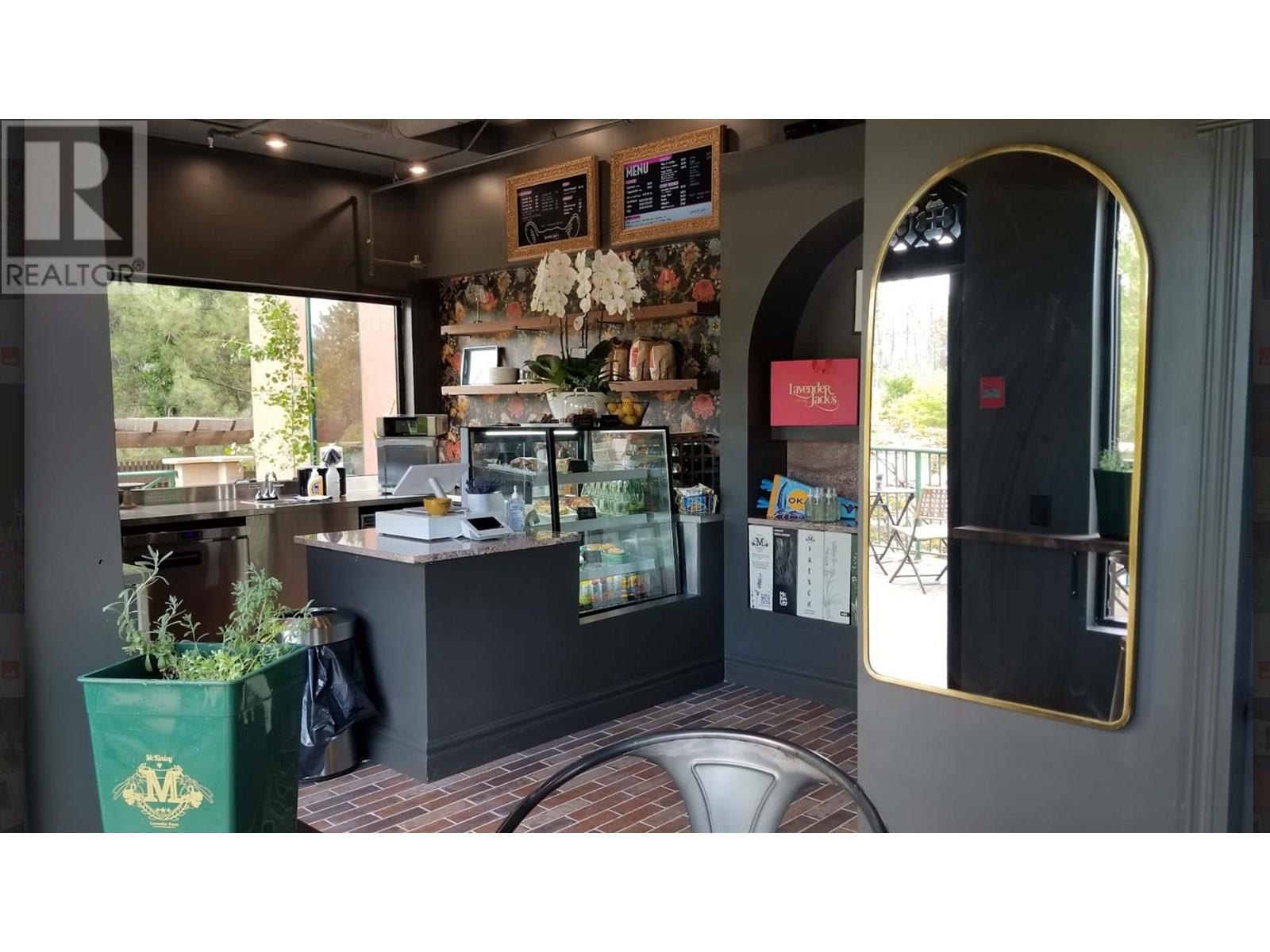 Prime Commercial Unit – Turnkey Opportunity with Freehold Ownership in Kelowna. Excellent opportunity to own a fully improved commercial unit in the heart of Quail Ridge at Borgata Lodge. This 420 sq.ft. unit is move-in ready, with premium upgrades & a highly visible, accessible location. Perfect for a food & beverage business, office, or retail space, with zoning that offers excellent flexibility. This bright, street-facing unit includes large windows, an accessible washroom, granite retail counter, & S/S kitchen surfaces. Nearly $100K in high-end equipment is available for purchase separately. Professionally renovated throughout, with new HVAC, upgraded electrical (incl. new panel), commercial plumbing, plumbing/electrical fixtures, awnings & folding/sliding window systems that open to the patio. The property also includes 1 secured underground parking stall & 1 secured storage unit. Approx. 1,000 sq.ft. of common patio space is available via a nominal strata lease. Just steps from the Quail & Bear golf courses, & mins from UBCO & the Kelowna International Airport, this unit is the only year-round food service location in the area. Surrounded by 3 condo complexes & within a 49-unit residential building with 7 ground-floor commercial units. The property benefits from built-in traffic from students, faculty, residents, & visitors & would make a great home base for app-based delivery orders. (id:58842)