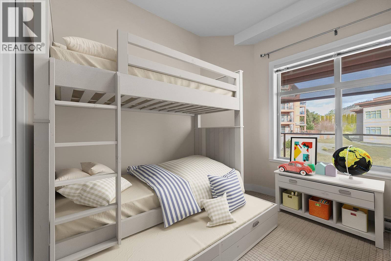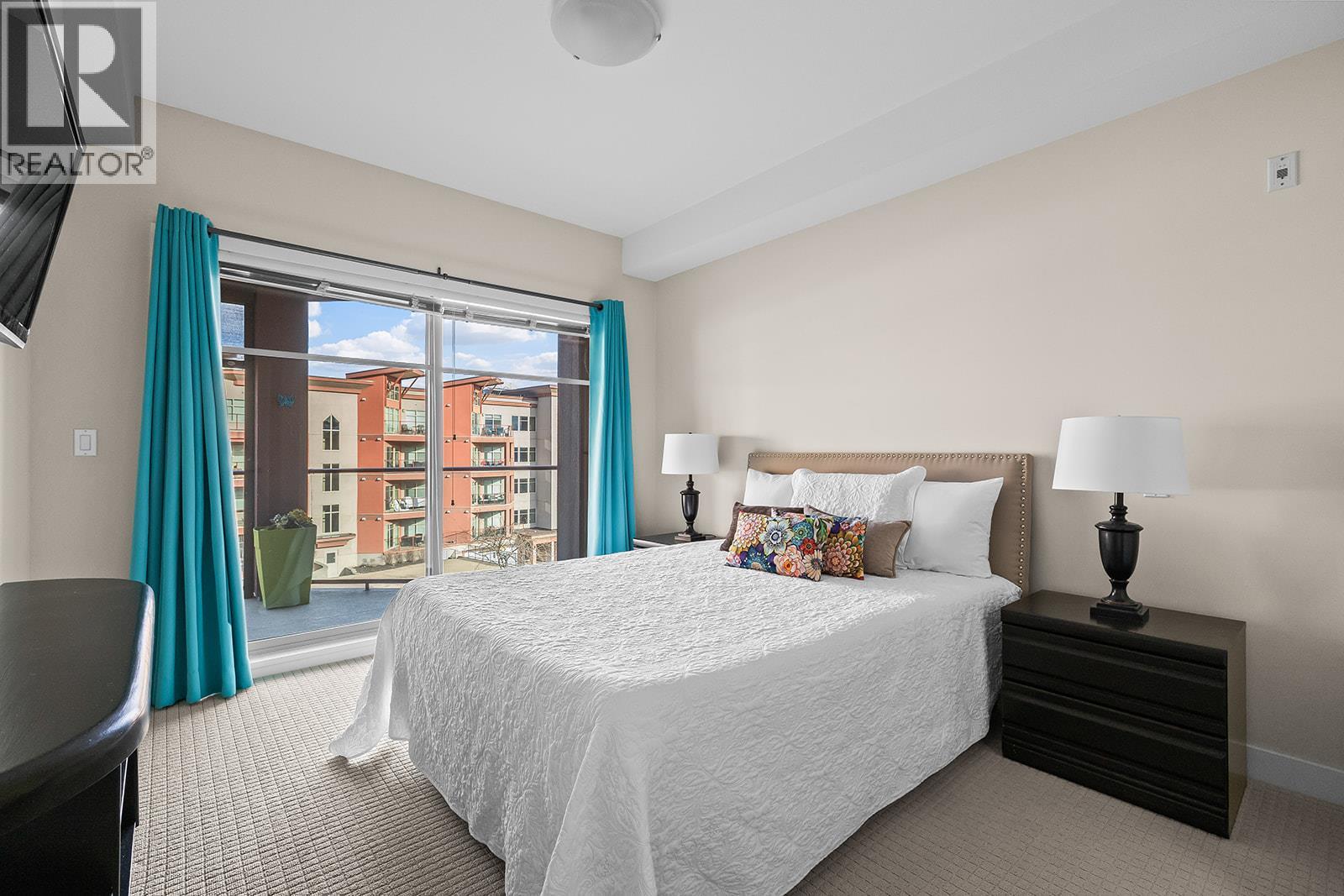 Welcome to Copper Sky, a resort-like community, with world class amenities where short term rentals are allowed! This bright corner unit features extra windows, two patio doors showcasing the lake and mountain vista from the deck and living room. The open concept layout is anchored by a beautiful kitchen with granite countertops, stainless steel appliances, brand new dishwasher, newer Maytag microwave, window over the sink, abundant cabinetry, wood inlay soft close drawers and two lazy Susans for exceptional storage. The spacious primary suite offers a walk in closet and a well-appointed ensuite with separate shower and tub custom tile & lighting. Enjoy indoor / outdoor living on the covered deck with remote controlled sun screen and natural Gas hookup for BBQ (gas included in strata fees!) Heating and cooling are second-to-none with quiet, efficient Mitsubishi mini-split heat pumps, and baseboard heaters as a backup for extreme weather. In-suite washer and dryer, 1 secure parking stall and storage locker add to the convenience. The Amenities Centre is what makes Copper Sky special creating that resort feel - large heated outdoor pool, year-round hot tub, kids wading pool, sauna, steam room, fitness centre, putting green, games room including billiards AND tennis, basketball and pickleball courts! Minutes to golf, wineries and amenities, making it a highly sought-after Vacation Destination. Live full-time, seasonally or invest at Copper Sky and enjoy NO GST, Spec Tax or PTT! (id:58842)