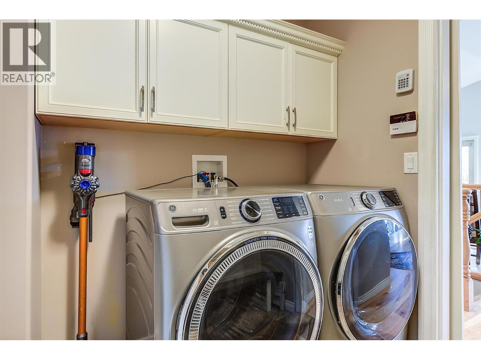 Welcome to Vineyard Estates & this custom walk-out rancher, blending timeless design & relaxed Okanagan luxury. Set on a beautifully landscaped 0.32-acre property, this home offers spectacular lake & mountain views, impeccable craftsmanship, & thoughtful updates throughout. From the moment you arrive, the level driveway, extensive rock landscaping, & private RV parking set the tone for easy, elegant living. Inside, vaulted ceilings & an open layout highlight stunning views. The gourmet kitchen, featuring quartz countertops, custom cabinetry, Fisher Paykel appliances, & a Miele steam oven are perfect for the home chef or entertainer. The main level flows naturally to the wrap-around flagstone terrace, through 3 sets of French doors, framing breathtaking panoramas of the lake and surrounding hills. The primary suite offers a serene retreat, a walk-in closet & large ensuite, while a new luxury steam shower brings spa-level comfort to your daily routine. The walk-out level features a TV/ family room, gym, huge guest bedroom w. office/flex space, & a pantry/ storage area.Step outside to a park-like backyard with lush gardens, a water feature, new hot tub & room for a pool. With abundant parking, gorgeous indoor/outdoor living space, proximity to Mission Hill Winery, Two Eagles Golf Course, & Mount Boucherie trails, this home captures the very best of Okanagan living—ideal for discerning empty nesters or anyone seeking luxurious comfort, elegance, & unforgettable views. (id:58842)