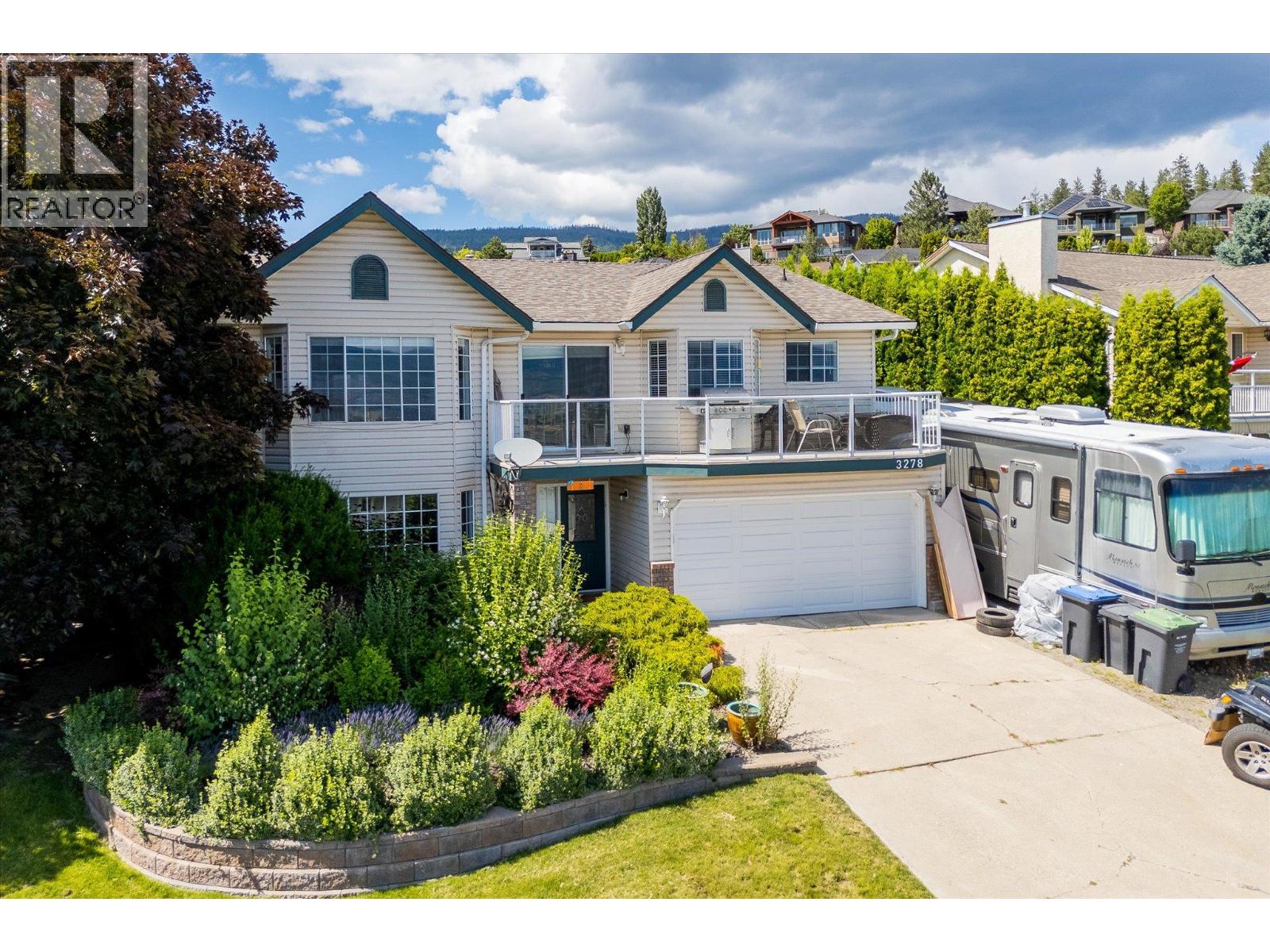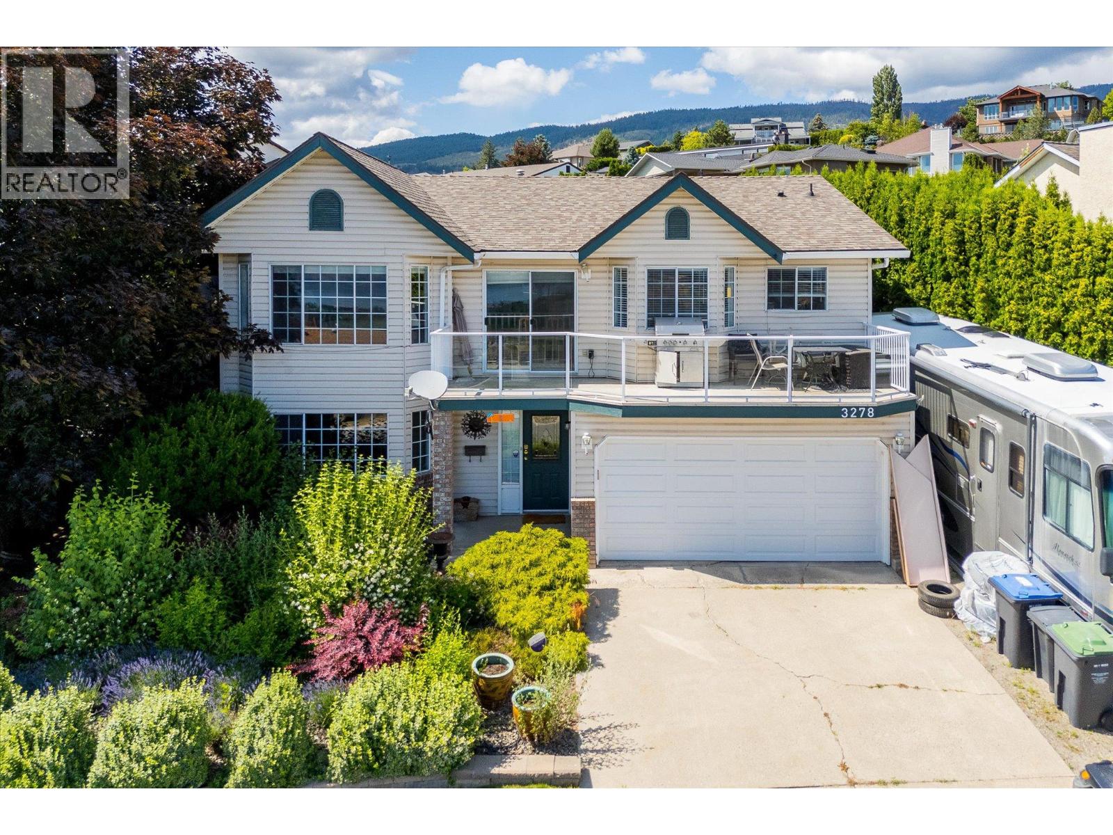 Perched to capture sweeping Okanagan Lake views, this expansive 3-bedroom, 3-bathroom home combines incredible location with everyday convenience. Situated in the sought-after Shannon Lake area, you’ll enjoy a peaceful, family-friendly neighbourhood surrounded by parks, walking trails, and golf just minutes away, with quick access to West Kelowna’s shops, restaurants, and wineries. Shannon Lake Elementary is only a five-minute walk, while middle and high schools are within the catchment for school bussing. Inside, the bright, functional layout features a primary bedroom with walk-in closet and ensuite, a double garage, separate workshop, and a versatile studio space with direct patio access. Easily EV adaptable with a 220V powerline nearby the garage. For RV owners, this property is a very rare find. The dedicated RV pad, with hookups, can accommodate vehicles up to 45 feet (the size of a Greyhound bus). It allows you to keep batteries charged, top up your potable water with ease, and load or unload for trips without the cost, time, and stress of off-site storage. With secure RV parking in the Okanagan costing around $150/month or more with power or water, having this amenity right at home is a game-changer that enhances both lifestyle and value. Outdoors, you’ll find landscaped front gardens with a rock wall, an irrigation control unit, and plenty of parking. Updates since new include a roof (2010), paint, kitchen counters, and various other enhancements. A radon mitigation system is in place for peace of mind with a current report showing no need for mitigation, and a pre-home inspection report is available. Call today! (id:58842)