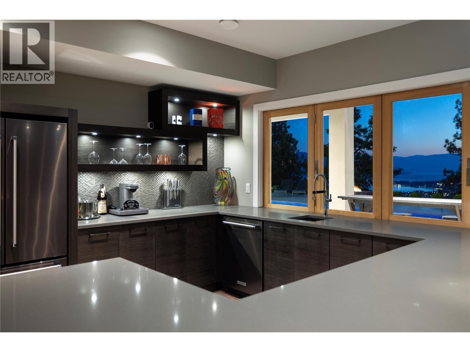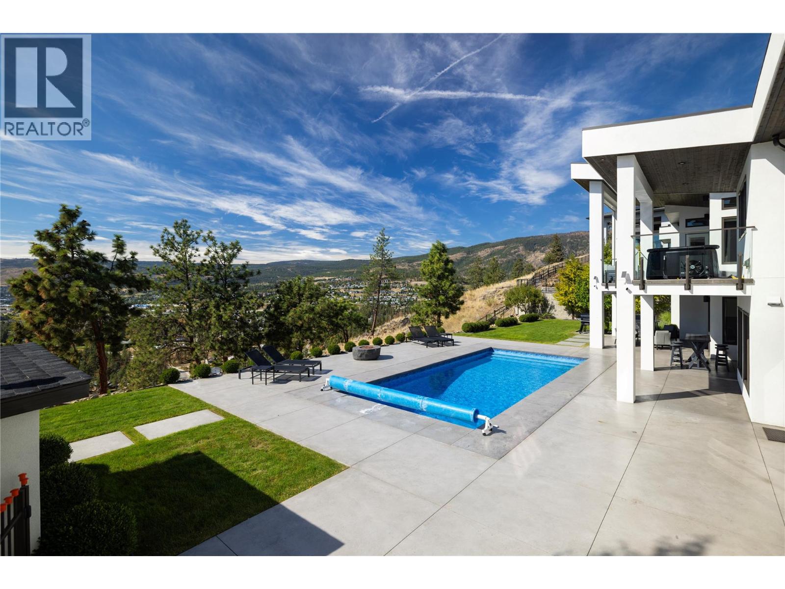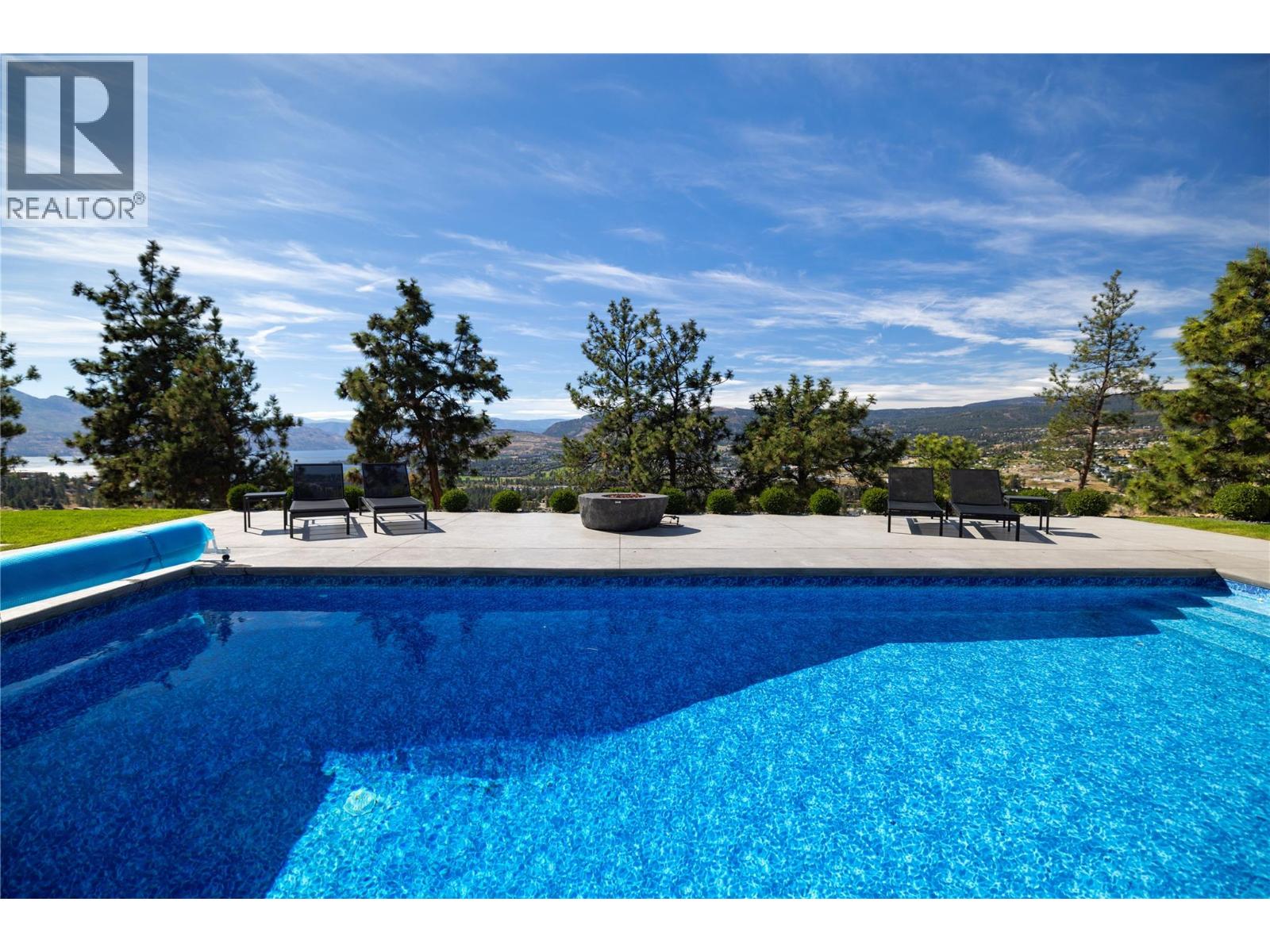 Welcome to your new home, a custom-built contemporary walk-out rancher with over 5,200 sq. ft. of luxurious living space in the prestigious Lakeview Heights community of West Kelowna. Built by the renowned Lenarcic Brothers, this home offers sweeping mountain, lake, city, and sunset views, shared with the iconic Mission Hill Winery. Perched on an unobstructed bench and backing onto a tranquil natural park, the property is flooded with natural light from expansive windows that frame breathtaking vistas in every room, even the oversized, temperature-controlled garage. The chef-inspired kitchen is a true centerpiece, featuring custom cabinetry, quartz countertops, and a spacious butler’s pantry, perfect for creating culinary masterpieces to share with family and friends. The primary suite is your private retreat, complete with a gas fireplace, heated floors, a spa-like 5-piece ensuite, and a generous walk-in closet, perfect for the avid shoe collector. Three additional bedrooms, a second laundry room, and ample storage ensure the home is as functional as it is beautiful. Designed for entertaining, the walk-out basement includes a rec room, wine cellar, bar, games area, and a spa-inspired poolside change room with a steam shower and gym. Outside, your private backyard oasis awaits with a sparkling pool, covered seating, and panoramic views of Okanagan Lake and West Kelowna. This home is the perfect blend of luxury, comfort, and natural beauty, your dream lifestyle is here! (id:58842)