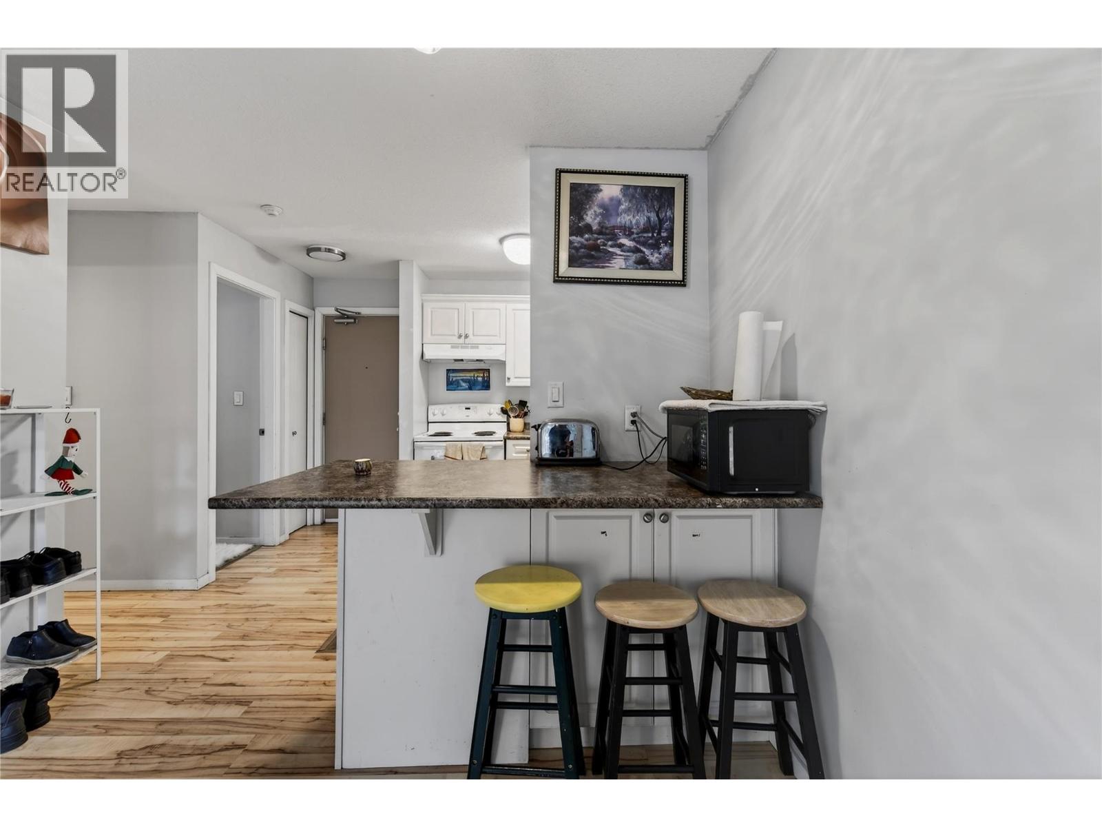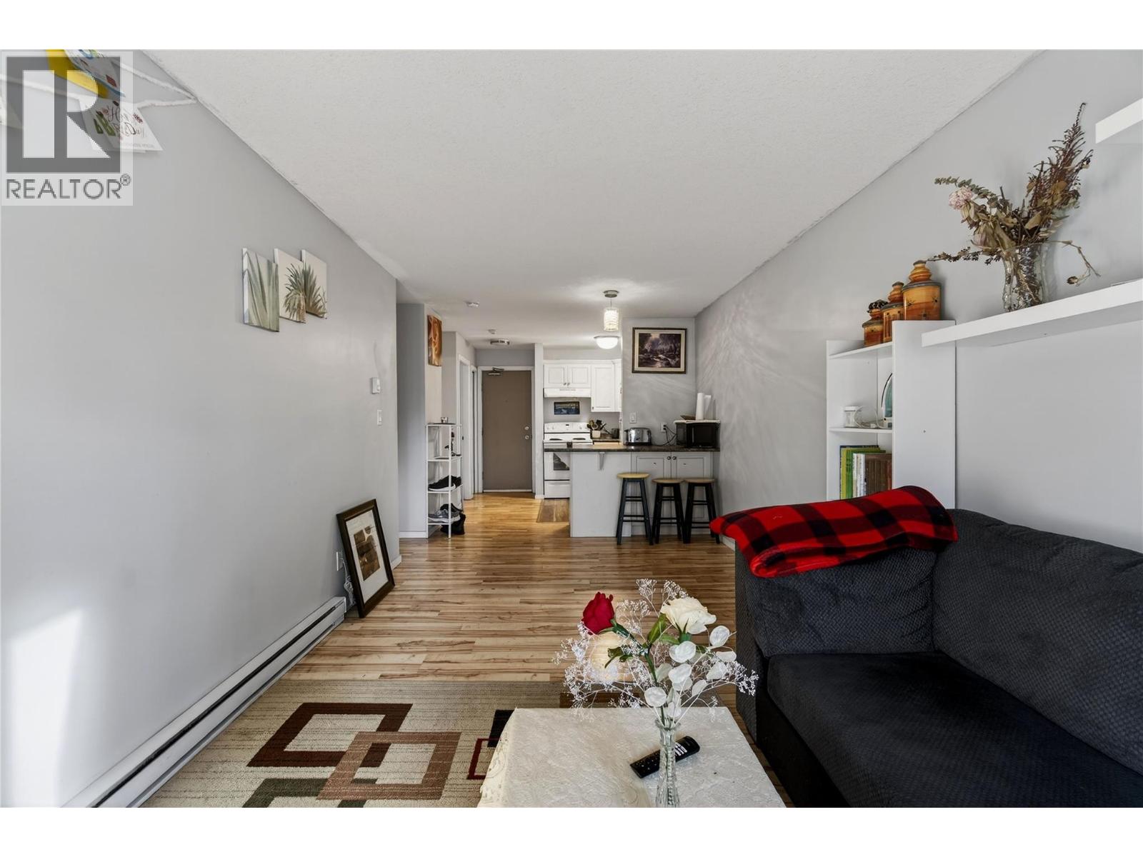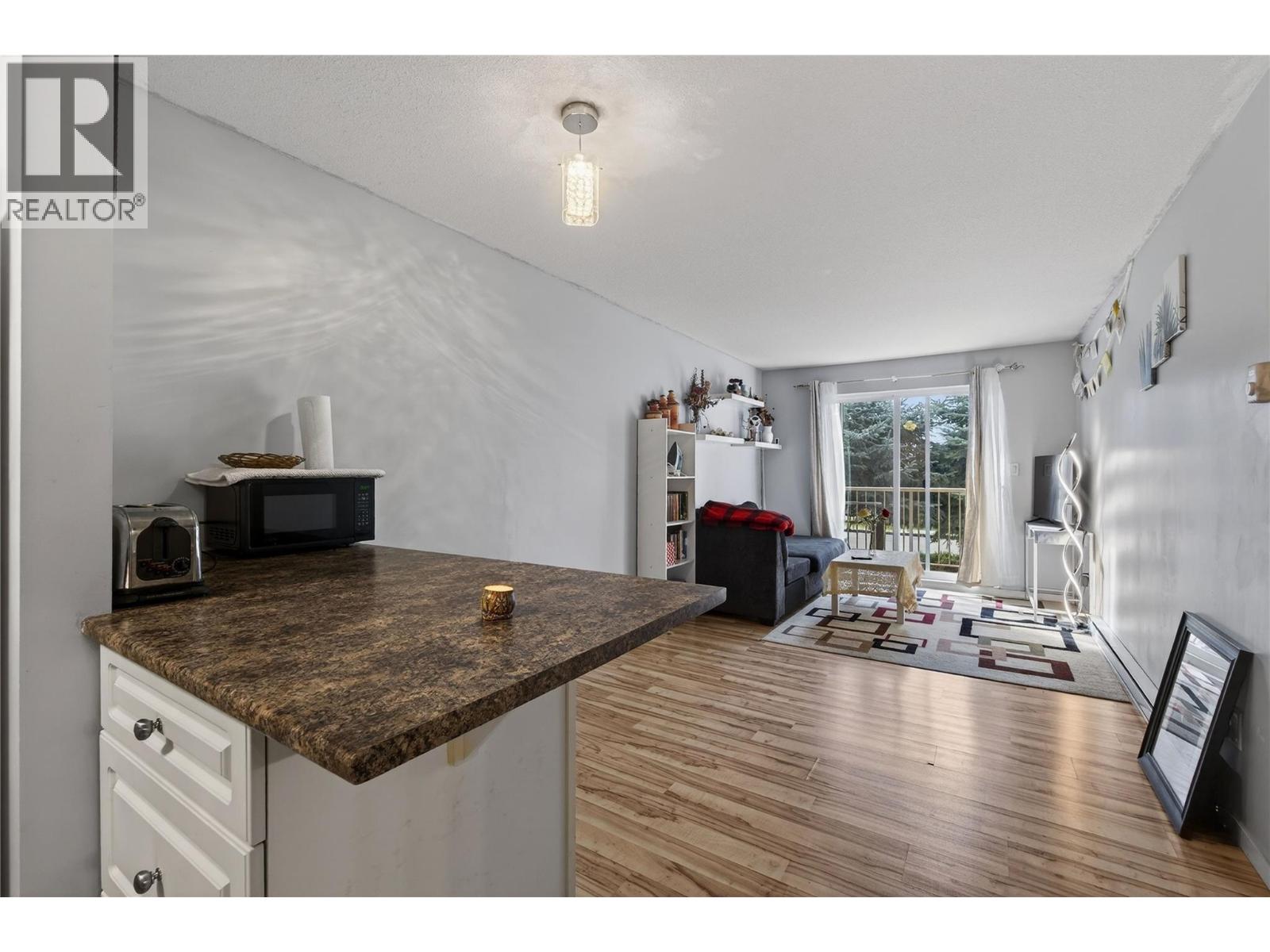 Step into downtown Vernon living with this bright, south-facing second-floor 1-bedroom condo at 3304 – 35th Avenue, where everything you need is just a short walk away. The open-concept unit features updated flooring, a private balcony, a bedroom with a wall-mounted A/C unit, practical storage, and a recently updated hot water tank, making it ideal for first-time buyers, downsizers, or investors. The complex has upgraded the elevator and plans to refresh the hallways with new carpet and paint. Enjoy easy access to the Vernon Recreation Centre, Community Arts Centre, parks, and trails, all within walking distance. One cat is allowed, no dogs. With a mortgage that could be cheaper than rent, where can you find that these days?! Affordable, convenient, and ready for your personal touch, this condo is a rare opportunity to live or invest in one of Vernon’s most central and walkable locations. (id:58842)