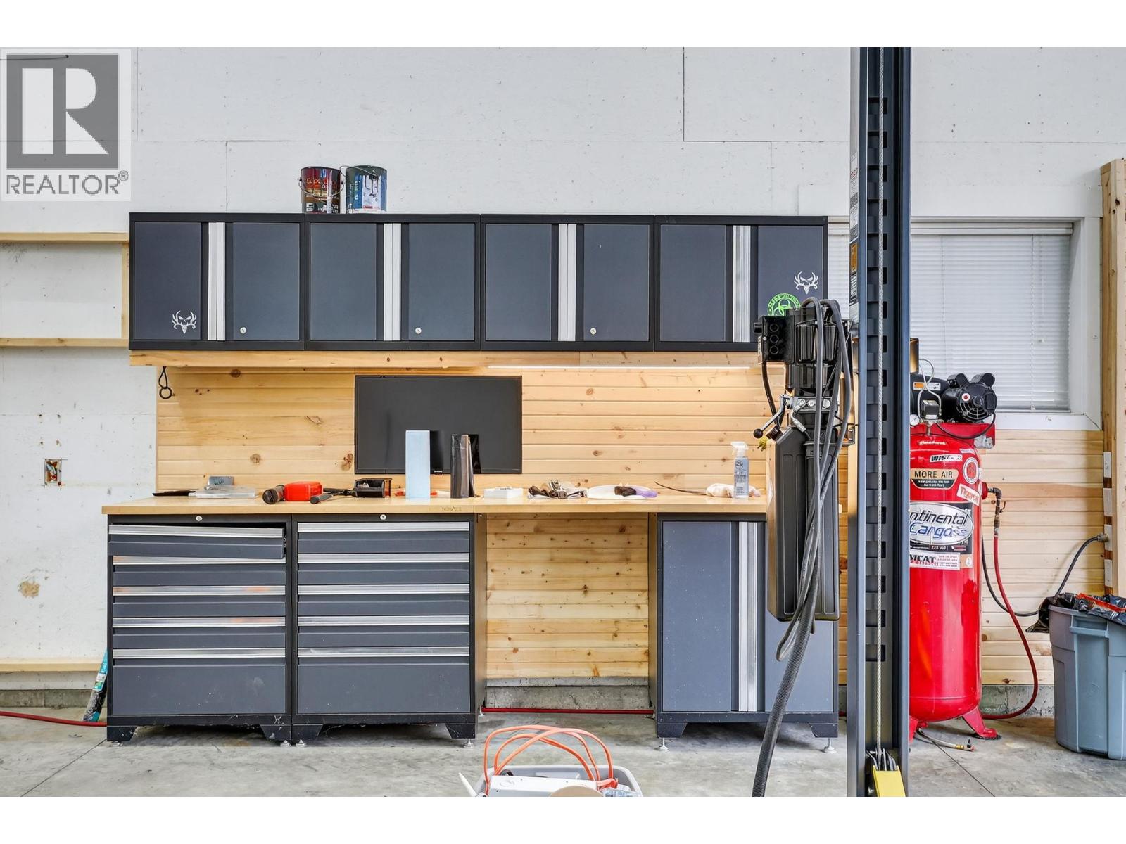 Discover this impeccably maintained walk-out rancher, a refined retreat set on a private, 0.38-acre oasis with 200-amp service to the lot. Featuring a generous floor plan, this elegant home offers 2 bedrooms, 2 bathrooms, and beautifully finished living spaces enriched with quality upgrades throughout. The lower level serves as a true haven, featuring a massive primary bedroom with a huge walk-in closet, custom doors, and multiple versatile spaces. Enjoy a stylish bar area with a wine fridge, a dedicated gym area, and a large recreation room that could be easily converted into a third bedroom, giving you exceptional flexibility for guests or growing needs. Outdoors, the property shines as a serene sanctuary. Enjoy lush landscaping, full irrigation, ambient automated lighting, fire pits, and a relaxing hot tub, now enhanced with a brand-new awning for year-round comfort and enjoyment. A beautiful Saskatoon berry bush offers natural charm and seasonal flavour in the front yard, while durable Hardie siding enhances curb appeal and longevity. Car enthusiasts, hobbyists, and professionals will be impressed by the heated, insulated, and powered 884 square foot shop featuring 16-ft ceilings, a 14-ft overhead door, and a negotiable lift. A 30-amp serviced RV site with seasonal water adds versatility for guests, extended stays, or potential future pool needs. Major updates provide peace of mind, including a new roof, a 2020 furnace and A/C, and a new hot water tank. Additional conveniences include a double attached heated and cooled garage, ample parking, peaceful surroundings, and the rare benefit of no lease expiry. Ideally located near top-rated schools, renowned wineries, golf courses, and essential amenities, this home delivers the perfect blend of luxury, functionality, and privacy. A truly exceptional opportunity, and one not to be missed. (id:58842)