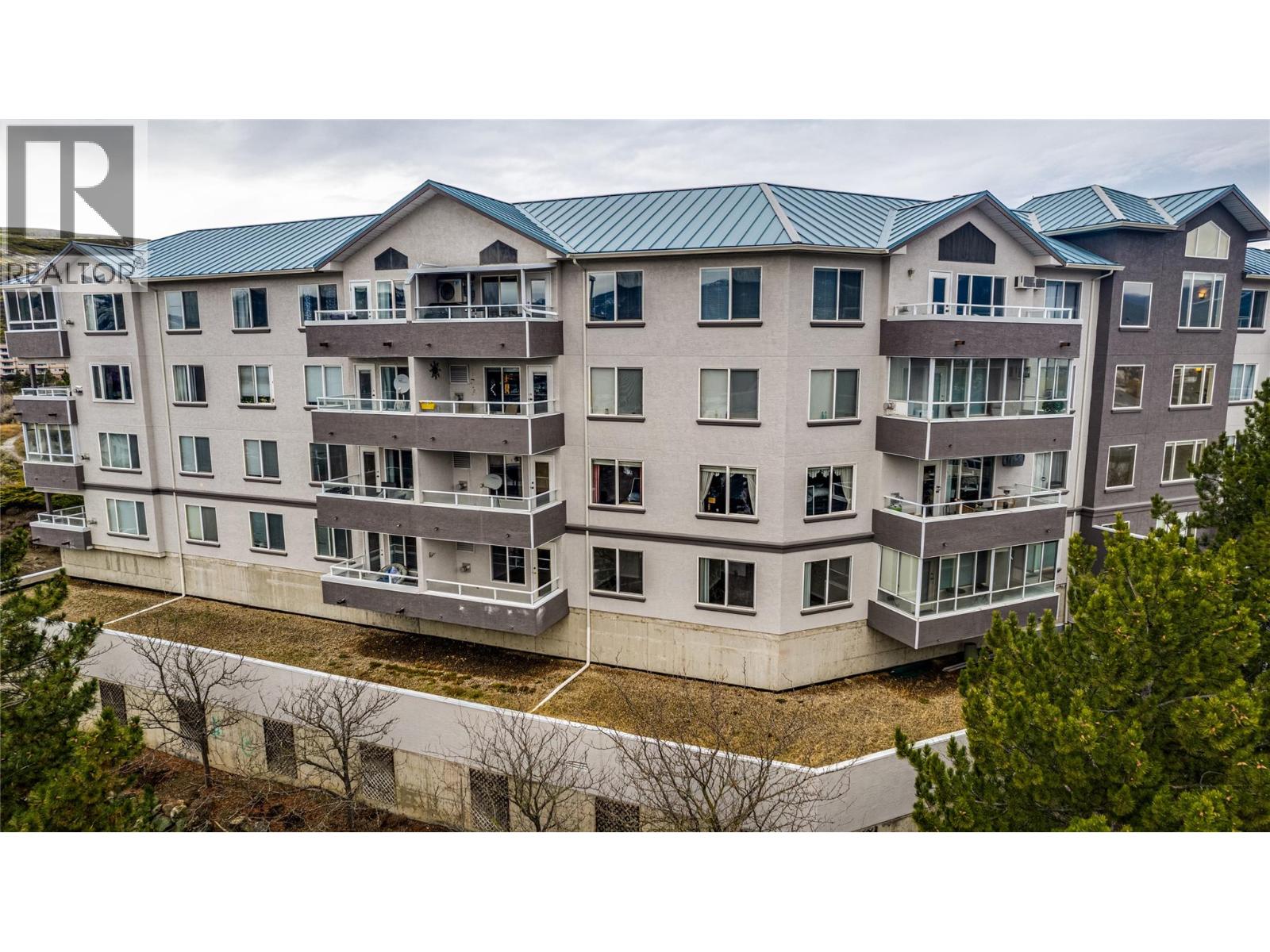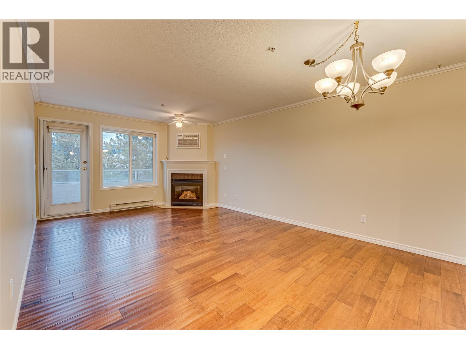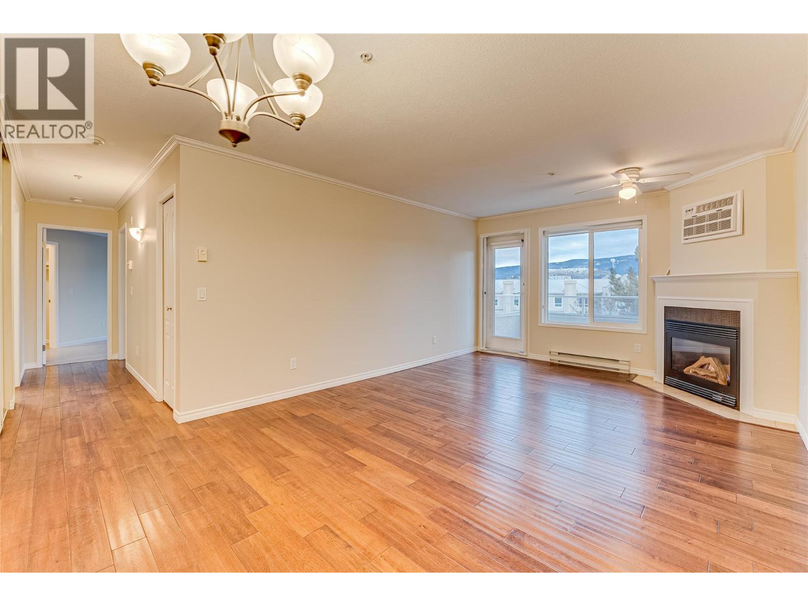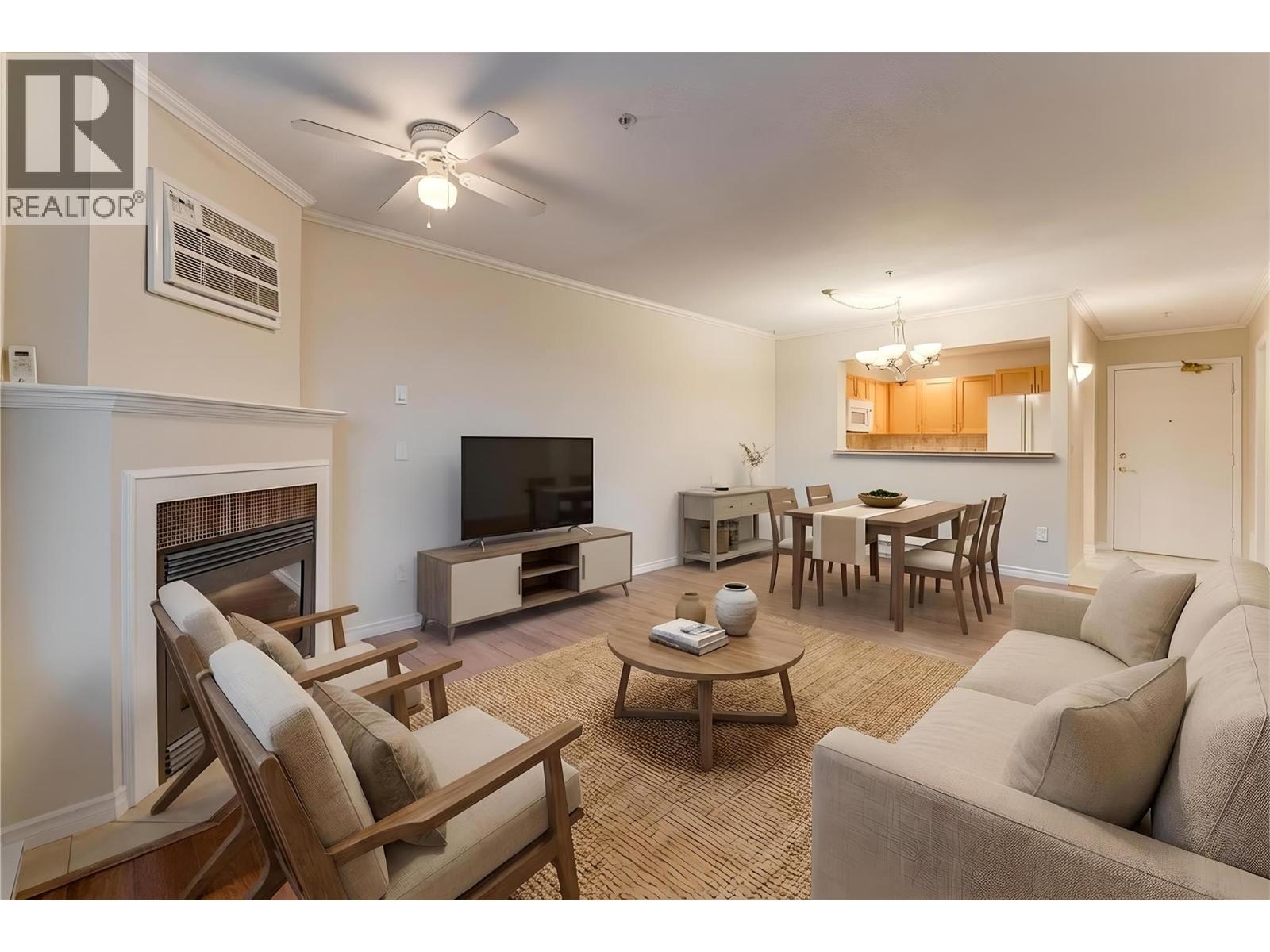 Welcome to Unit #102 at Imperial Ridge. With a fresh coat of paint, recently updated flooring, and a lovely kitchen, this 2-bedroom, 2-bathroom condo is truly move-in ready. The home is located in a well-maintained, all-ages building that has undergone extensive upgrades since 2022, including parkade improvements, building envelope work (windows, decks, stucco), a new elevator, and refreshed hallways with modern carpeting, lighting, and paint. Ideally located just steps from downtown Vernon’s shops, cafes, medical offices, and services, this quiet, south-facing home is filled with natural light and enjoys beautiful city views, with glimpses of Okanagan Lake. The spacious layout offers a modern kitchen with plenty of storage, opening into the dining area and comfortable living room. Enjoy the cozy gas fireplace on cooler days (natural gas included in the strata fee), and in summer relax on your private deck or stay cool with the newer wall-mounted A/C unit. The primary bedroom features a walk-in closet and full ensuite, while the second bedroom and full main bathroom provide flexibility for guests, a home office, or family. In-suite laundry with newer washer and dryer adds everyday convenience. Additional features include one secure underground parking stall, a storage locker, bike storage, and a common room. Strata fees include hot water, water, sewer, garbage, natural gas. Book your showing today! (id:58842)