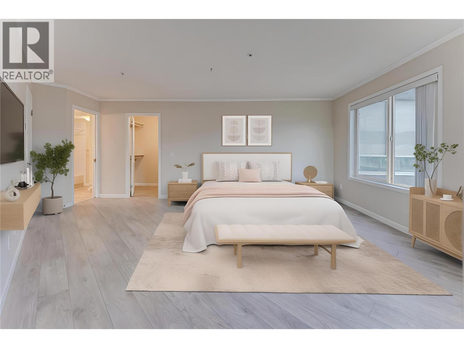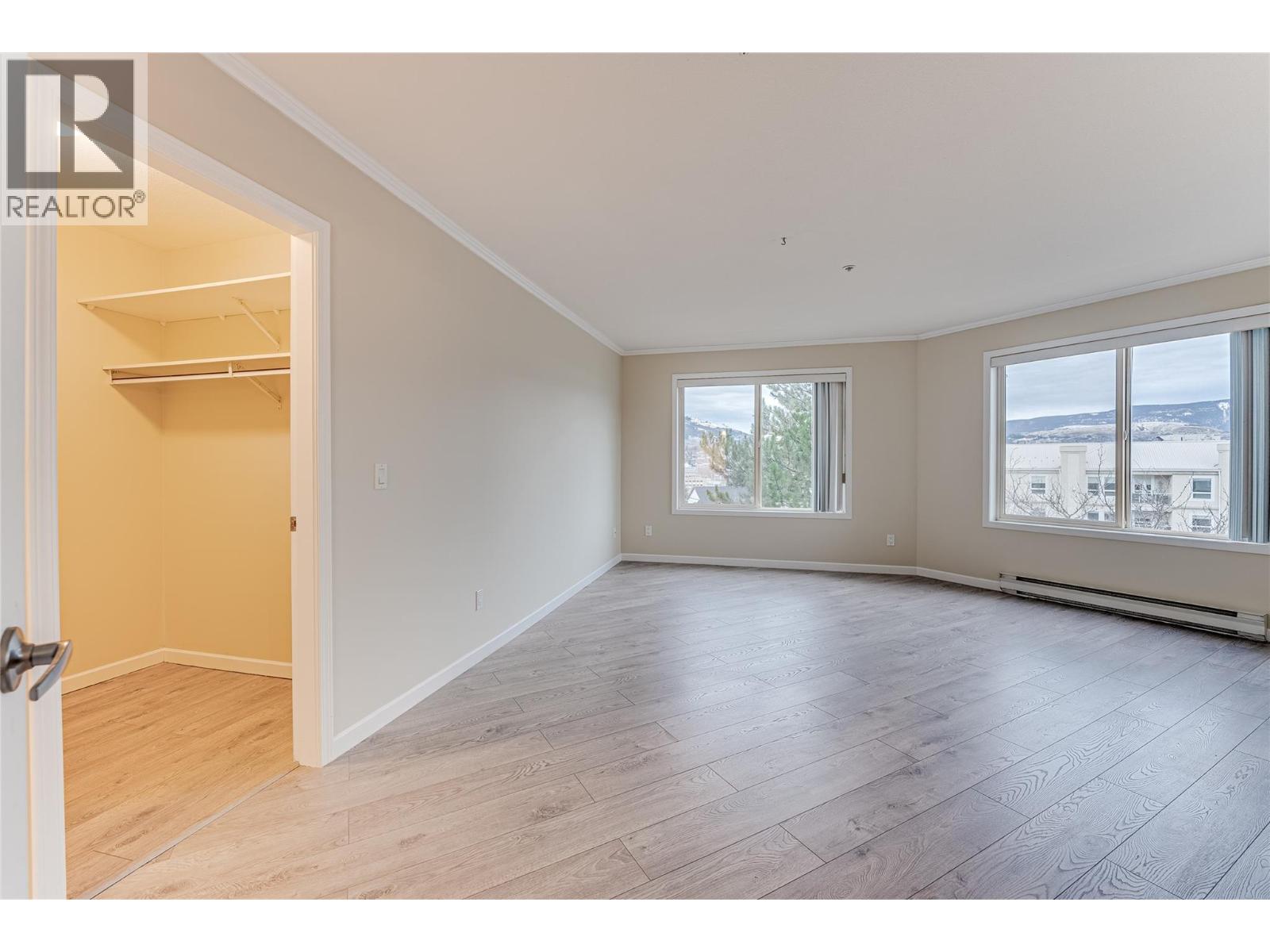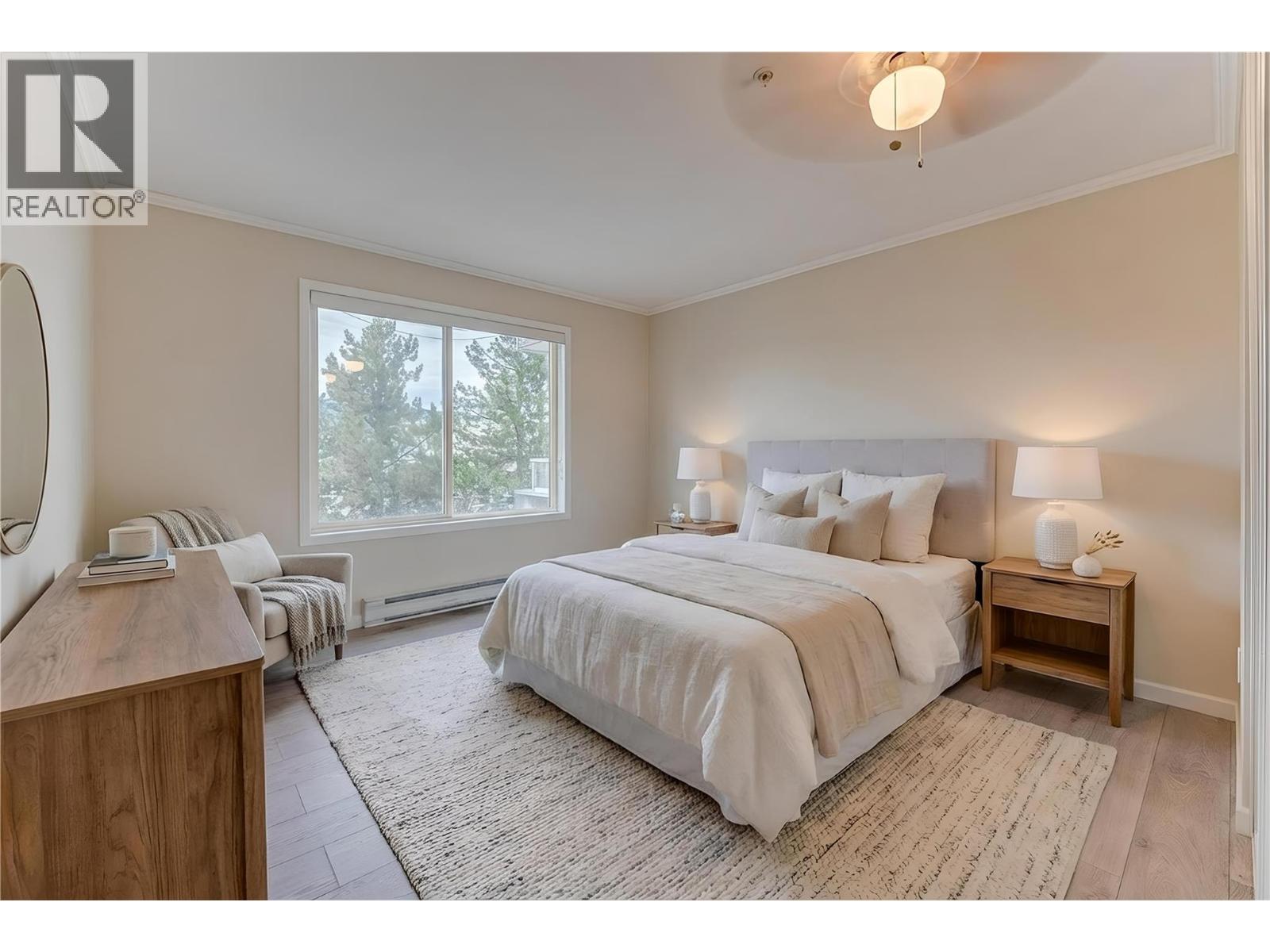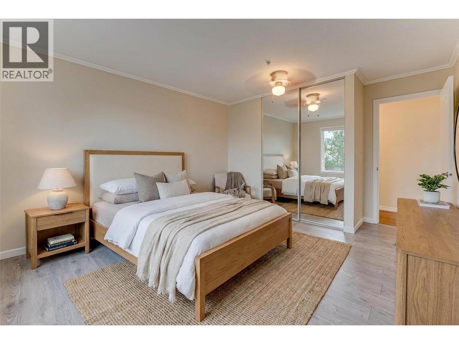 Welcome to Unit #102 at Imperial Ridge. With a fresh coat of paint, recently updated flooring, and a lovely kitchen, this 2-bedroom, 2-bathroom condo is truly move-in ready. The home is located in a well-maintained, all-ages building that has undergone extensive upgrades since 2022, including parkade improvements, building envelope work (windows, decks, stucco), a new elevator, and refreshed hallways with modern carpeting, lighting, and paint. Ideally located just steps from downtown Vernon’s shops, cafes, medical offices, and services, this quiet, south-facing home is filled with natural light and enjoys beautiful city views, with glimpses of Okanagan Lake. The spacious layout offers a modern kitchen with plenty of storage, opening into the dining area and comfortable living room. Enjoy the cozy gas fireplace on cooler days (natural gas included in the strata fee), and in summer relax on your private deck or stay cool with the newer wall-mounted A/C unit. The primary bedroom features a walk-in closet and full ensuite, while the second bedroom and full main bathroom provide flexibility for guests, a home office, or family. In-suite laundry with newer washer and dryer adds everyday convenience. Additional features include one secure underground parking stall, a storage locker, bike storage, and a common room. Strata fees include hot water, water, sewer, garbage, natural gas. Book your showing today! (id:58842)
