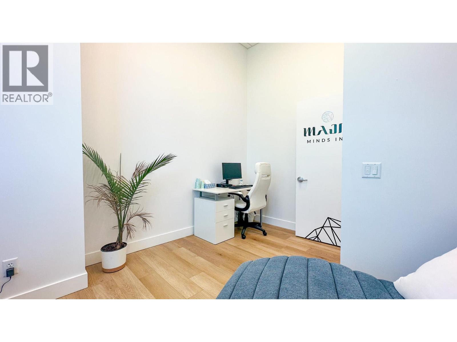 Well-appointed medical or personal services space now available in Mission Centre, a well-managed, medical-oriented professional building located in Kelowna’s busy Lower Mission area. This is a street level, corner unit with frontage along Lanfranco Road that is highly visible to both pedestrian and vehicle traffic. Approximately 1,520 SF of quality premises includes 7 treatment rooms, staff room with kitchenette & laundry hook-up, washroom & tub/shower room, storage, reception and waiting area with product display shelving & cabinets. This must-see unit also contains high ceilings, built-in cabinetry of various configurations, laminated hardwood throughout and extensive use of pot & feature lighting. Turn-key opportunity, as this is an attractive space that is clean and well maintained. (id:58842)