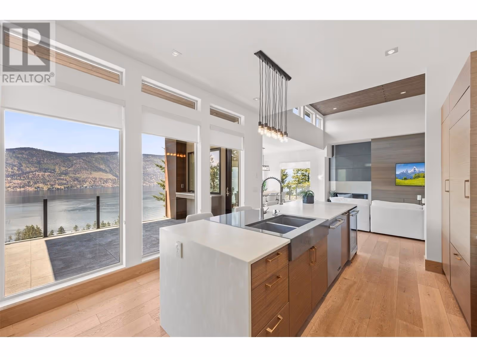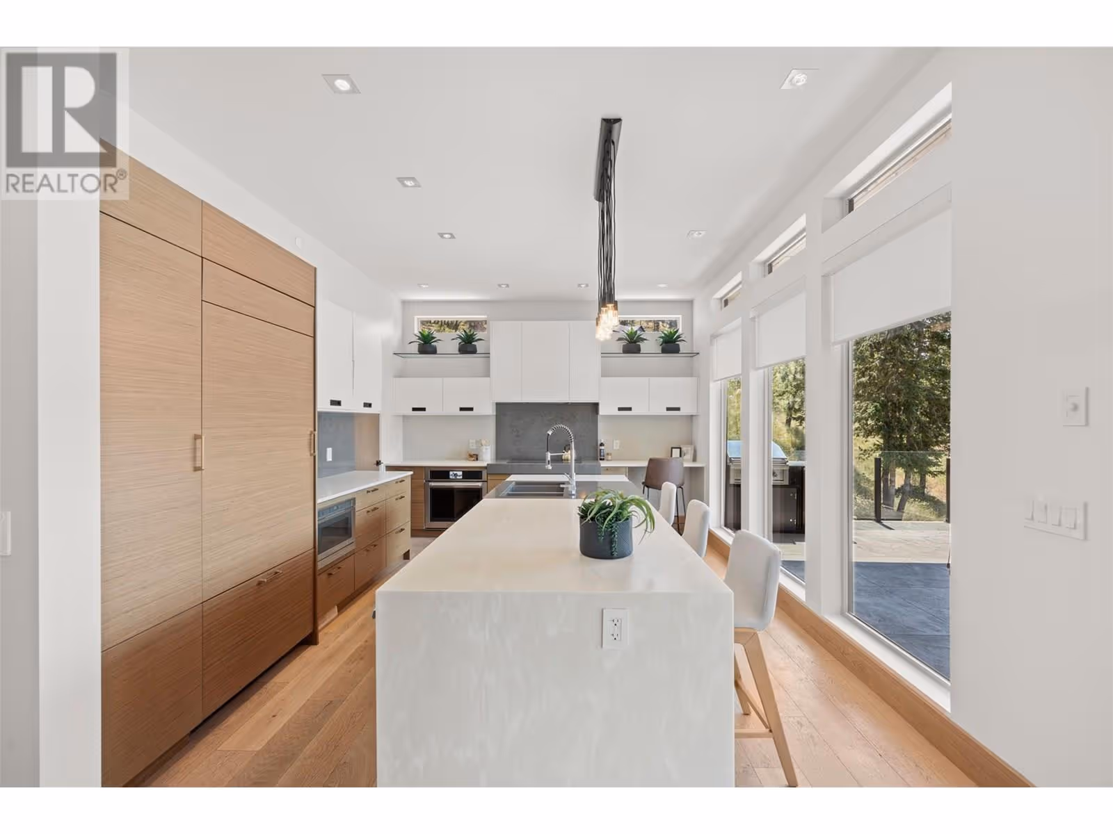 This masterpiece is a West Coast Contemporary home located in McKinley Beach. This former showhome combines thoughtful design and quality craftsmanship in one of Kelowna’s most desirable settings. With more than 3,400 square feet of living space across two levels, the layout is bright and open, designed to take full advantage of the lake views with expansive windows throughout. The home features four bedrooms, three full bathrooms, and a walk-out lower level. The kitchen includes a panel-ready built-in fridge, top end appliances, a wine fridge, and a walk-in wine room beside a fully finished bar area. An outdoor kitchen setup is in place, perfect for enjoying the west-facing lake views over Okanagan Lake, the marina, and the beach. Soak in the hot tub while taking in sweeping, unobstructed lake views that stretch across the horizon—an unforgettable backdrop for sunset evenings or starlit nights. This is luxury living at its most serene.Located in a vibrant waterfront community and lakeside living with everything close at hand. (id:58842)