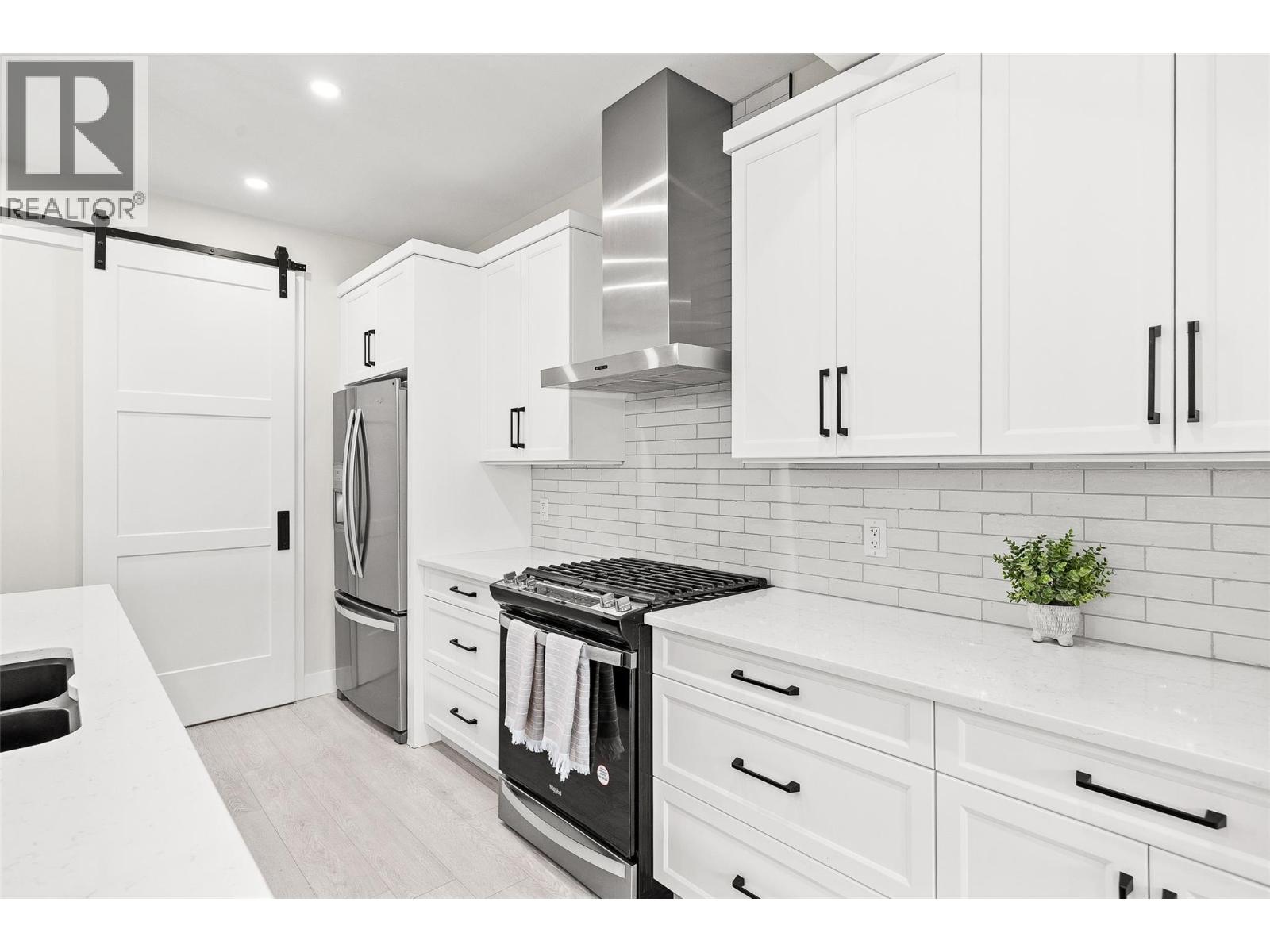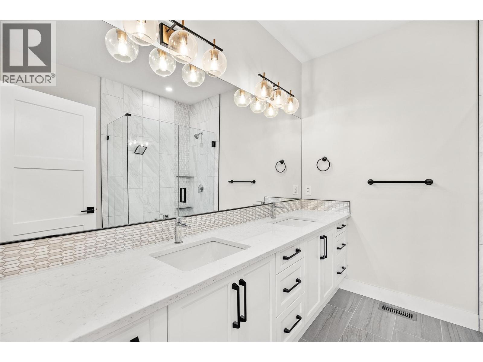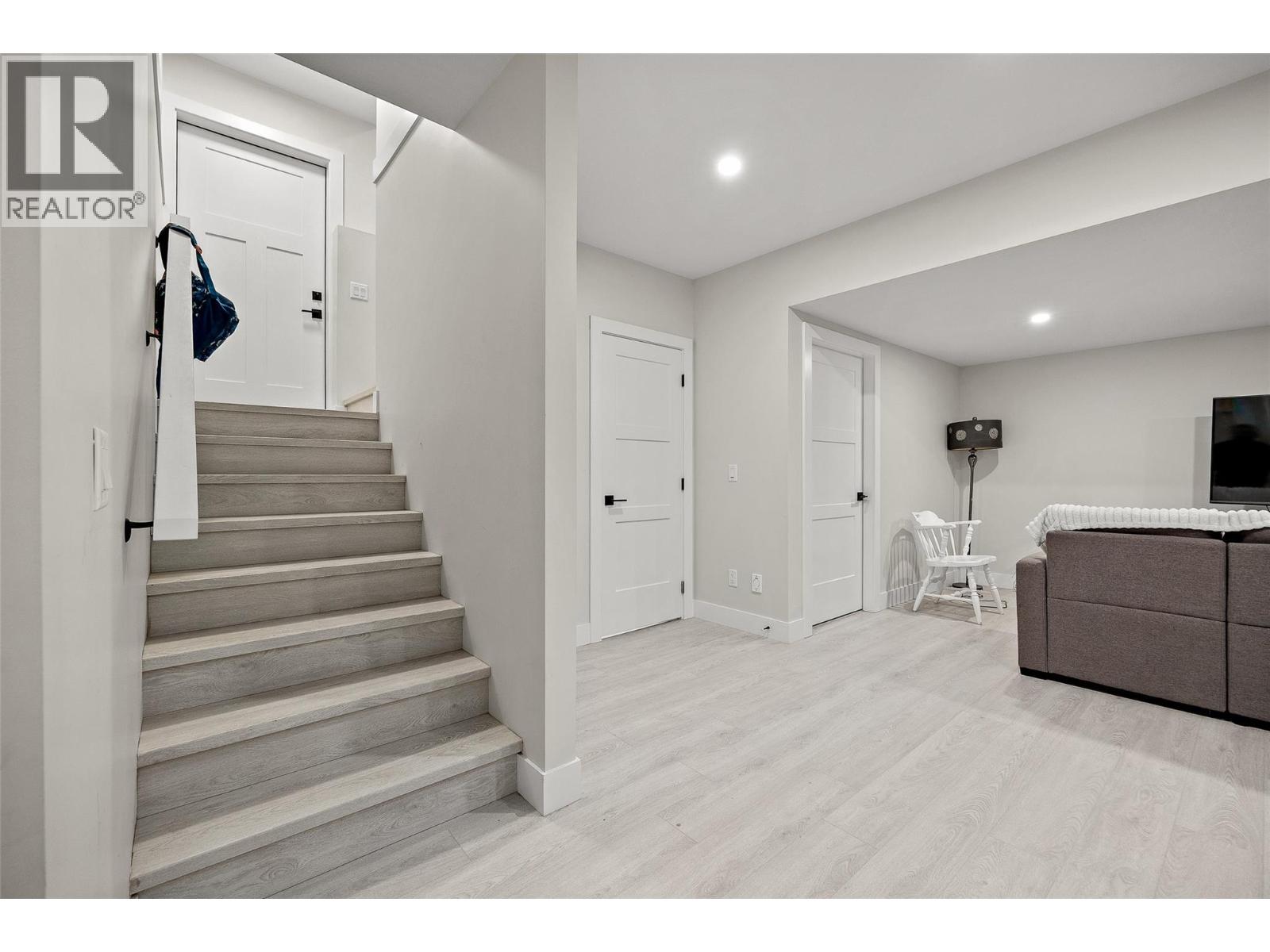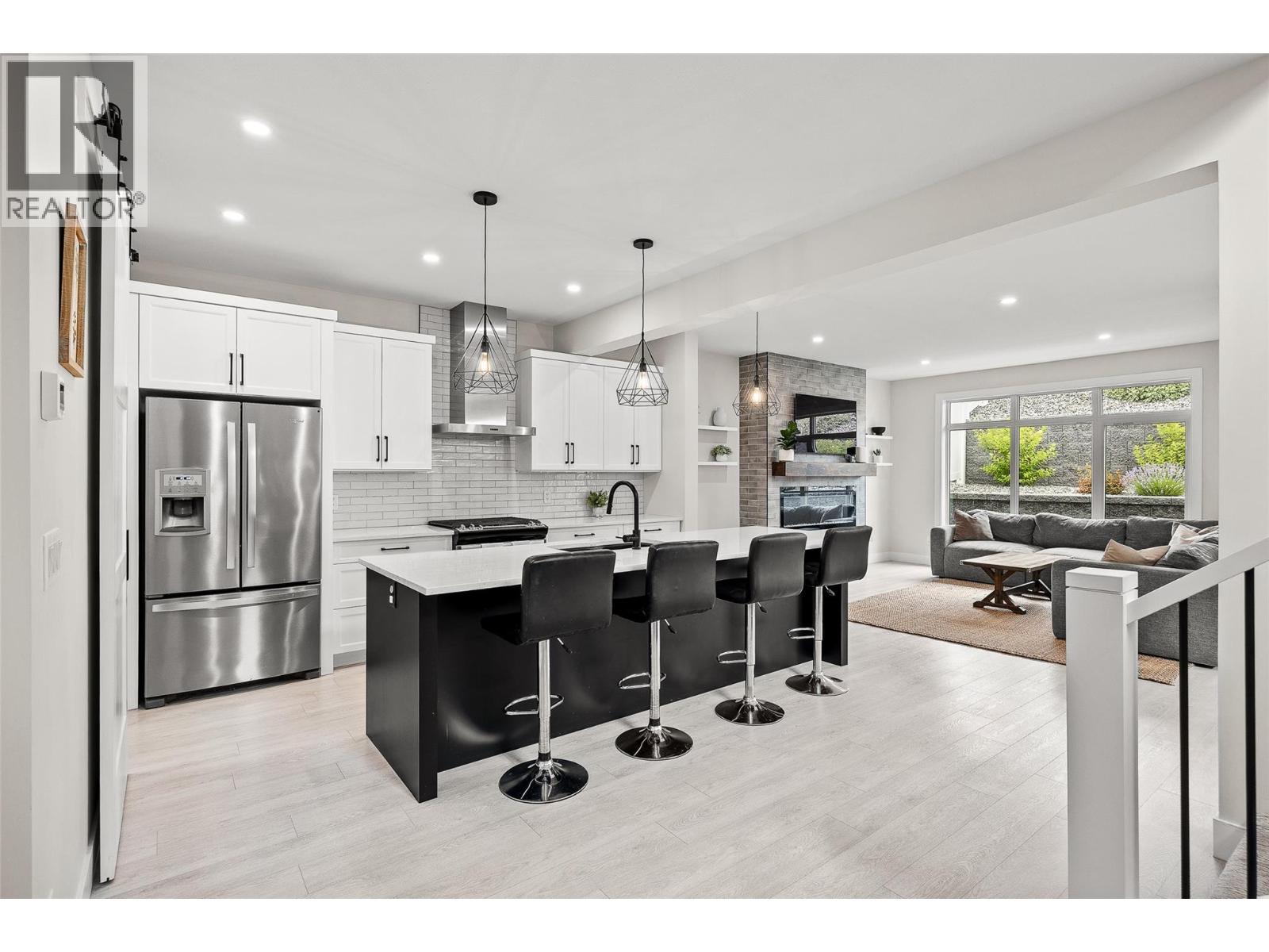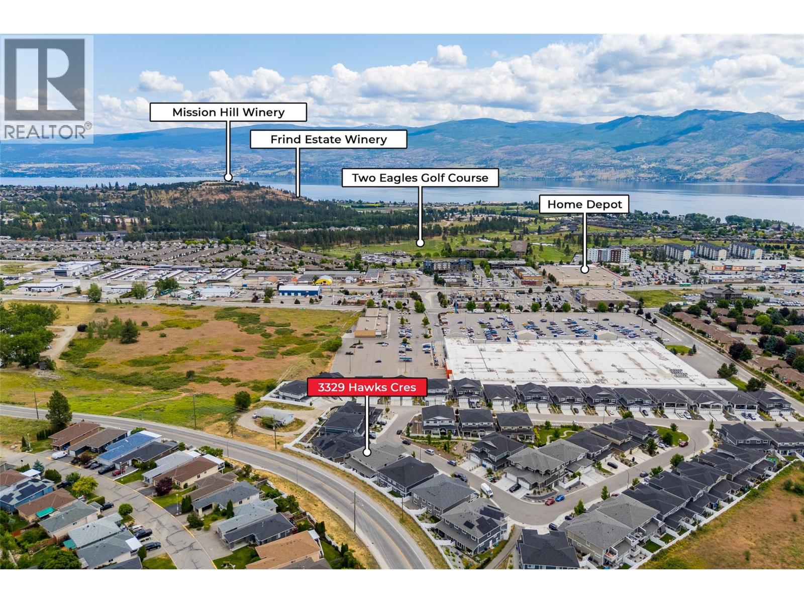 Discover modern design and high-end finishings in this exceptional 2023-built half duplex perfectly situated in West Kelowna's desirable Hawks Landing. This bright and airy 2956 sqft home offers 5 bedrooms and 4 bathrooms overall, featuring high ceilings, quartz counters, a walk-in pantry, and a primary suite with a double vanity in the ensuite and walk-in closet. While boasting a double-car garage, a significant highlight is the 2 bed/1 bath suite on the lower level with a private entrance and laundry, providing excellent rental potential or multi-generational living. Enjoy mountain views and a peek-a-boo lake view from your patio, along with a low-maintenance turf and xeriscape yard. This family-friendly complex, directly behind Walmart, offers unparalleled convenience with walking distance to groceries, shopping, and transit, and a short drive to schools, golf courses and wineries. Don't miss the opportunity to make this modern oasis your new home! Contact our team to book your private viewing today! (id:58842)