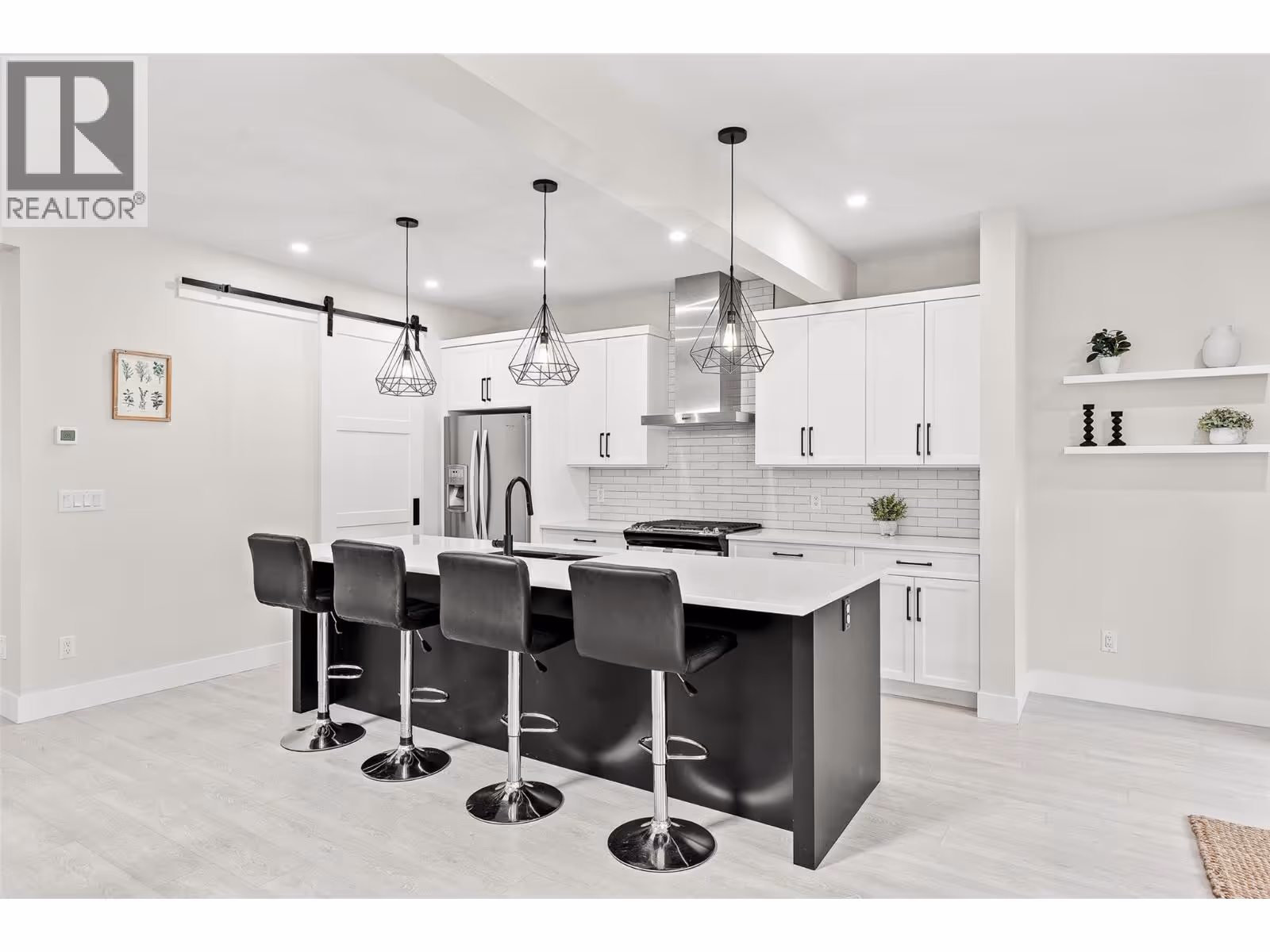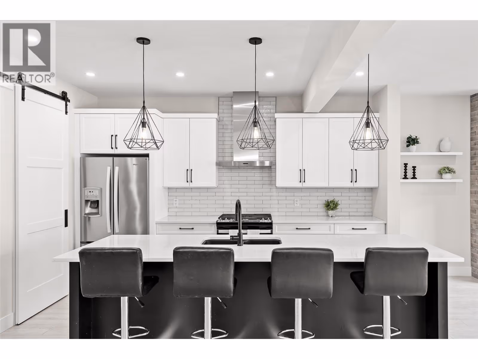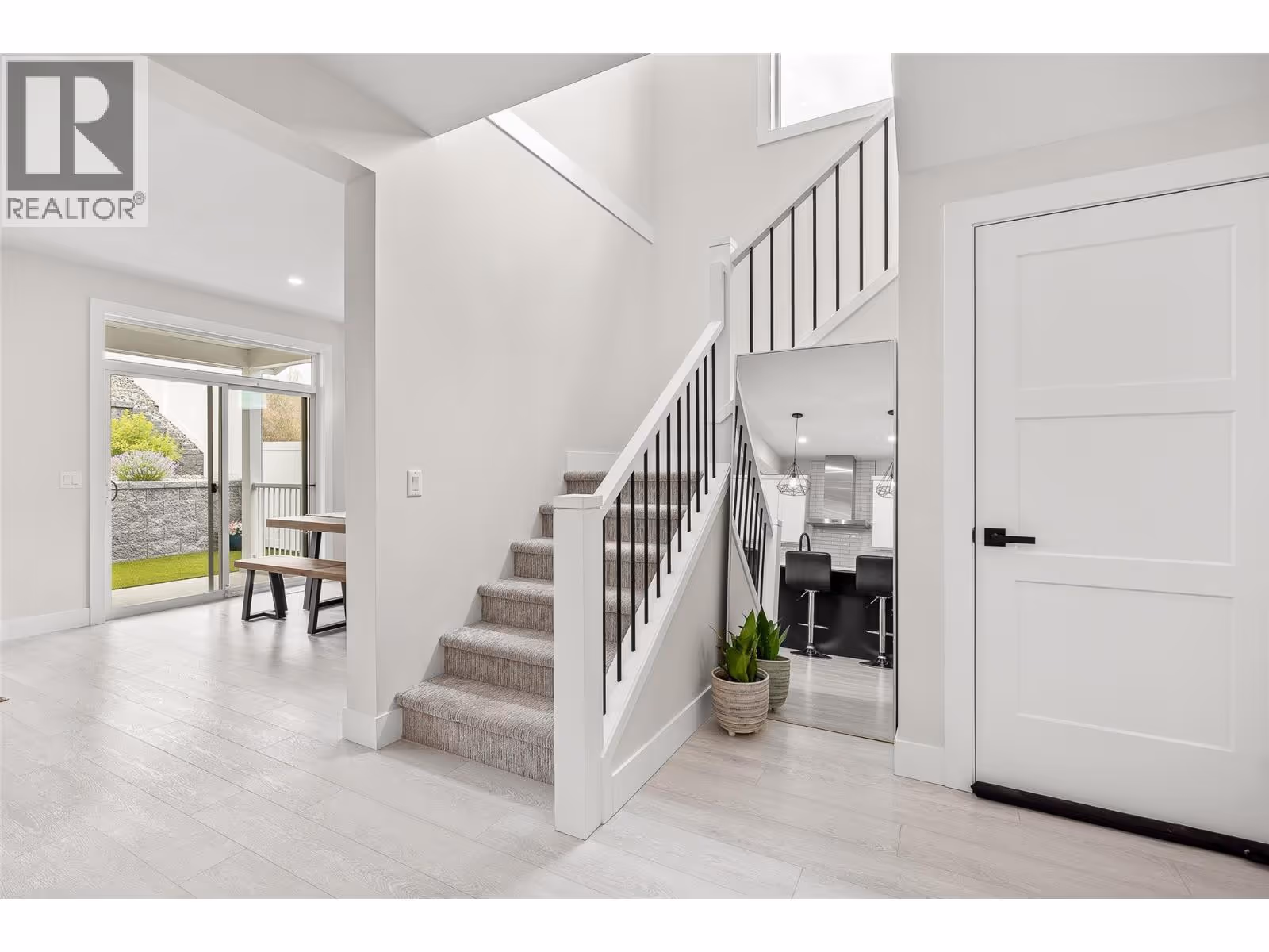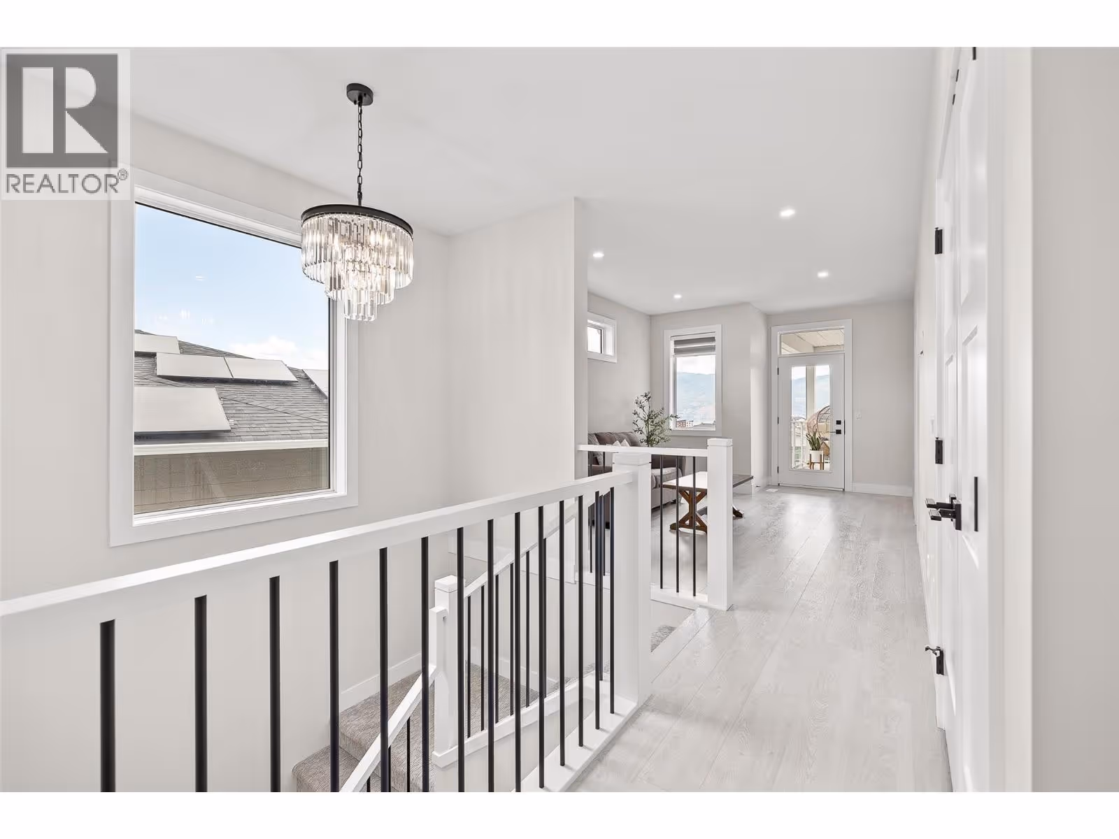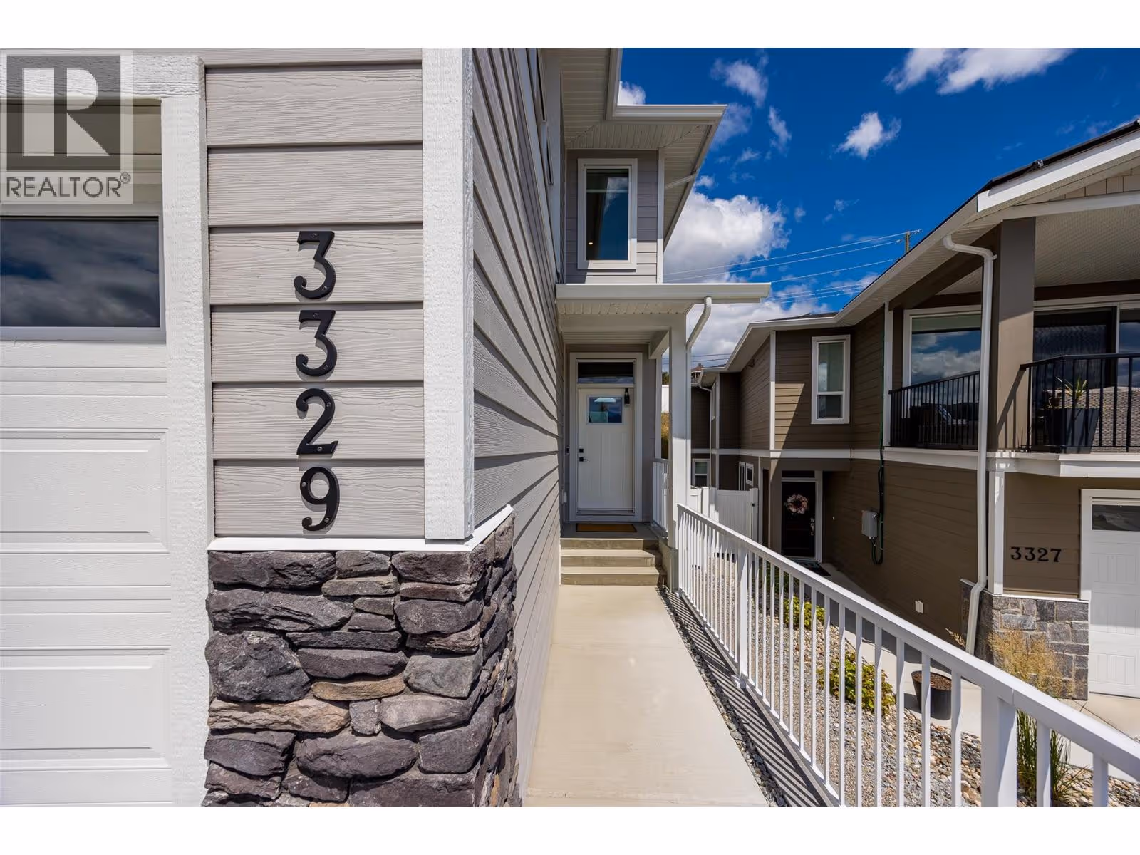 Discover modern design and high-end finishings in this exceptional 2023-built half duplex perfectly situated in West Kelowna's desirable Hawks Landing. This bright and airy 2956 sqft home offers 5 bedrooms and 4 bathrooms overall, featuring high ceilings, quartz counters, a walk-in pantry, and a primary suite with a double vanity in the ensuite and walk-in closet. While boasting a double-car garage, a significant highlight is the 2 bed/1 bath suite on the lower level with a private entrance and laundry, providing excellent rental potential or multi-generational living. Enjoy mountain views and a peek-a-boo lake view from your patio, along with a low-maintenance turf and xeriscape yard. This family-friendly complex, directly behind Walmart, offers unparalleled convenience with walking distance to groceries, shopping, and transit, and a short drive to schools, golf courses and wineries. Don't miss the opportunity to make this modern oasis your new home! Contact our team to book your private viewing today! (id:58842)