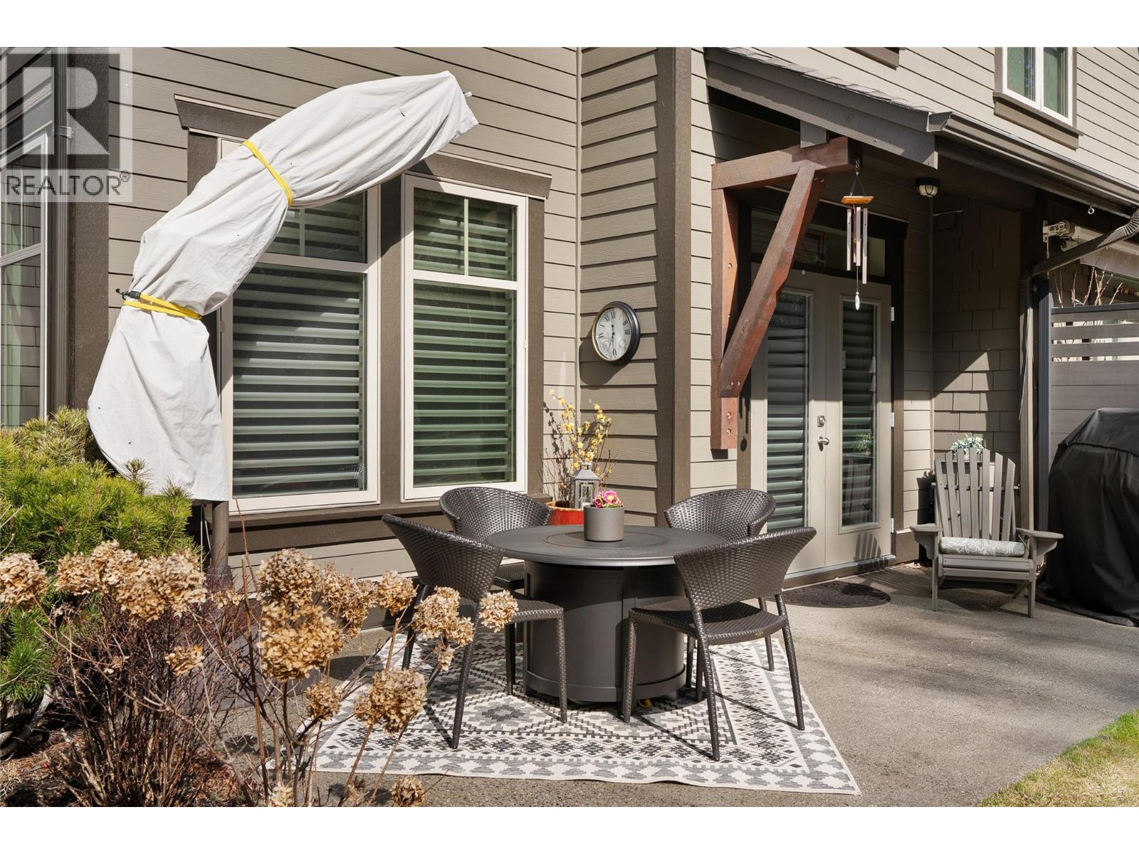 Experience the ultimate in luxury resort-style living where nature meets the back door of this beautiful three bedroom, four bath townhome within the esteemed Predator Ridge community. Lovingly updated and bathed in natural light, this residence boasts a cozy yet spacious interior, thoughtfully upgraded to exude quality and sophistication. Walk up to a spacious living room with large windows, gas fireplace, bright dining area, recently updated kitchen with new appliances, sink/faucet, elegant lighting, Hunter Douglas Silhouette blinds and Phantom screens, a cozy nook area perfect for reading, and a half bath. The upper-level leads to the primary bedroom with a private ensuite updated with new lighting and fixtures. Two additional sun-drenched bedrooms, featuring large windows and a well-appointed four piece bath. A newer washer/dryer are conveniently located between rooms. The versatile lower level has a three piece bath and a spacious bonus room, ideal to use as a family room, guest bedroom, office or home gym. Embrace outdoor living with two distinct spaces: a large upper deck offering peekaboo golf course views, and a private, beautifully landscaped back patio, perfect for al fresco dining and relaxation. A double-car garage provides ample storage. Lock and leaving knowing that your investment is cared for or live the year-round Predator Ridge lifestyle with exclusive access to world-class golf, tennis, pickleball, extensive hiking/biking trails, and a state-of-the-art pool and fitness centre. (id:58842)
