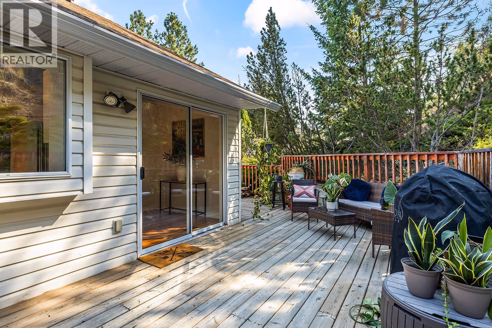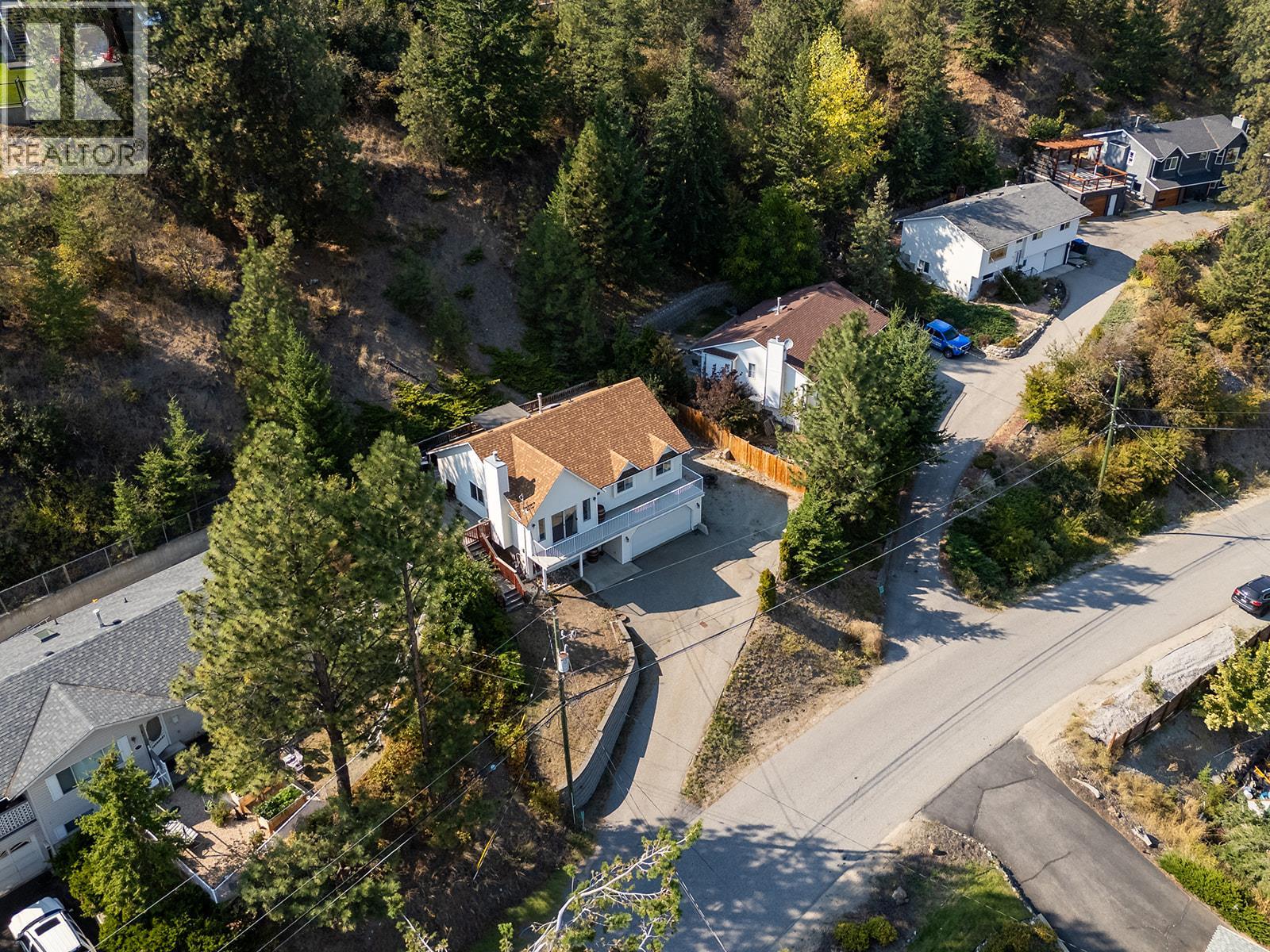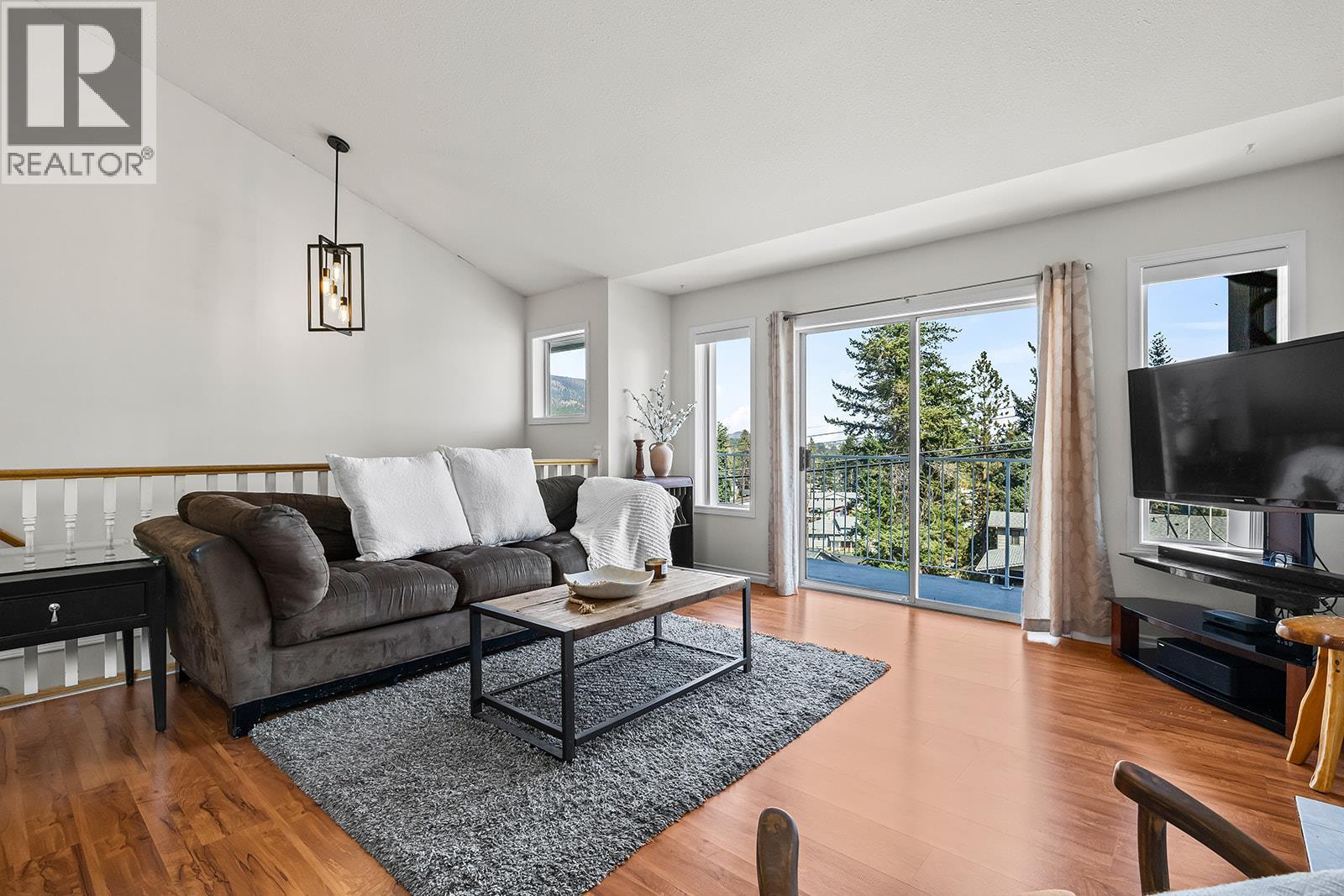 Welcome to a warm and inviting family home that blends comfort, convenience, and a touch of nature. Step inside to soaring vaulted ceilings and a cozy natural gas fireplace, creating the perfect gathering space for evenings together. The kitchen opens through a patio sliding door to a private backyard retreat, while a wraparound deck and balcony with partial lake views invite you to enjoy the Okanagan lifestyle year-round. Upstairs, 3 bedrooms are thoughtfully grouped together, ideal for families wanting everyone close by. The lower level offers flexibility with a bright office and spacious fourth bedroom—perfect for teens, guests, or working from home. With a high-efficiency gas hot water tank (2023), a gas furnace and the gas fireplace you'll enjoy the perk of low utility bills! Plus a 2018 A/C unit to keep you cool in the summer months. Outside, you’ll love the low-maintenance yard, double garage, and bonus parking for your RV or boat. The home backs onto peaceful trees, offering privacy and a natural backdrop. Being perched higher up provides an elevated setting and extra separation from the street. With septic in place and sewer connection available, this home is practical as well as inviting. Located close to schools, walking trails, and parks, it’s an ideal spot for raising a family. Don’t miss this opportunity to plant roots in a welcoming community—come see the value and lifestyle waiting here! (id:58842)