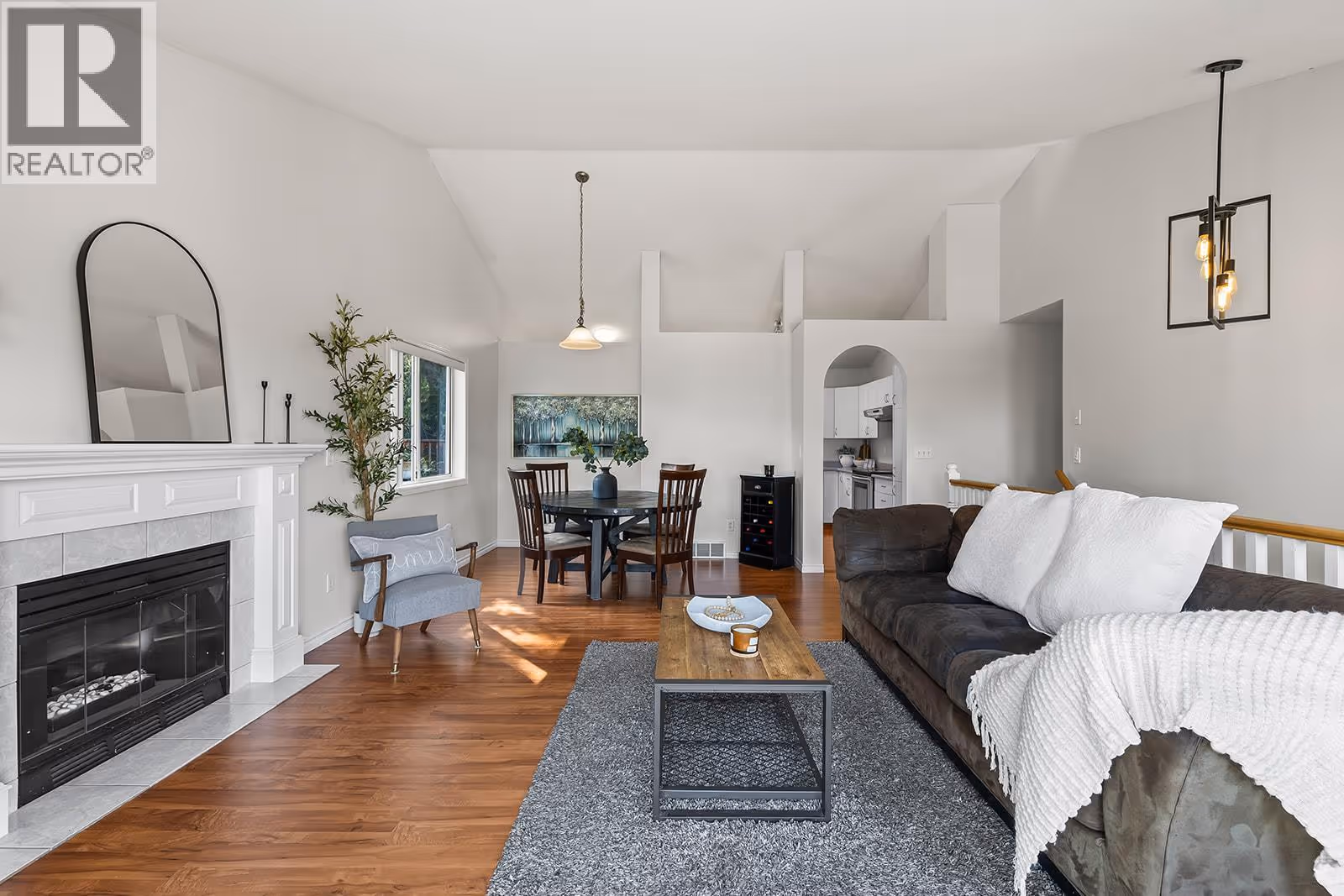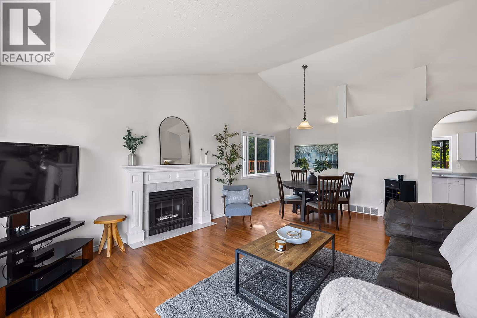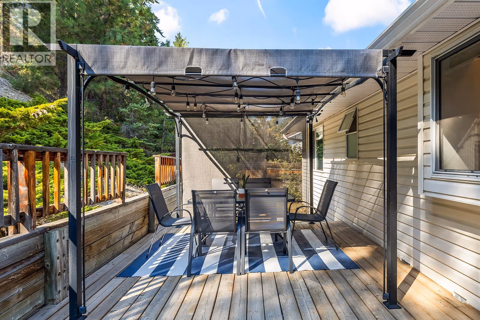 Welcome to a warm and inviting family home that blends comfort, convenience, and a touch of nature. Step inside to soaring vaulted ceilings and a cozy natural gas fireplace, creating the perfect gathering space for evenings together. The kitchen opens through a patio sliding door to a private backyard retreat, while a wraparound deck and balcony with partial lake views invite you to enjoy the Okanagan lifestyle year-round. Upstairs, 3 bedrooms are thoughtfully grouped together, ideal for families wanting everyone close by. The lower level offers flexibility with a bright office and spacious fourth bedroom—perfect for teens, guests, or working from home. With a high-efficiency gas hot water tank (2023), a gas furnace and the gas fireplace you'll enjoy the perk of low utility bills! Plus a 2018 A/C unit to keep you cool in the summer months. Outside, you’ll love the low-maintenance yard, double garage, and bonus parking for your RV or boat. The home backs onto peaceful trees, offering privacy and a natural backdrop. Being perched higher up provides an elevated setting and extra separation from the street. With septic in place and sewer connection available, this home is practical as well as inviting. Located close to schools, walking trails, and parks, it’s an ideal spot for raising a family. Don’t miss this opportunity to plant roots in a welcoming community—come see the value and lifestyle waiting here! (id:58842)
