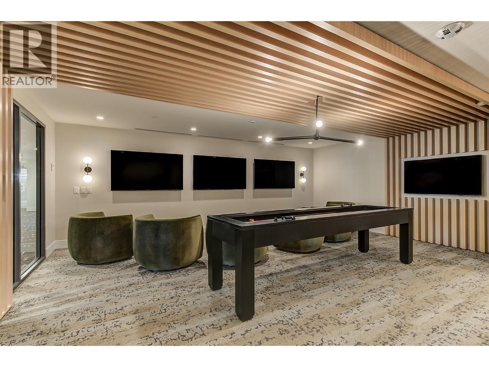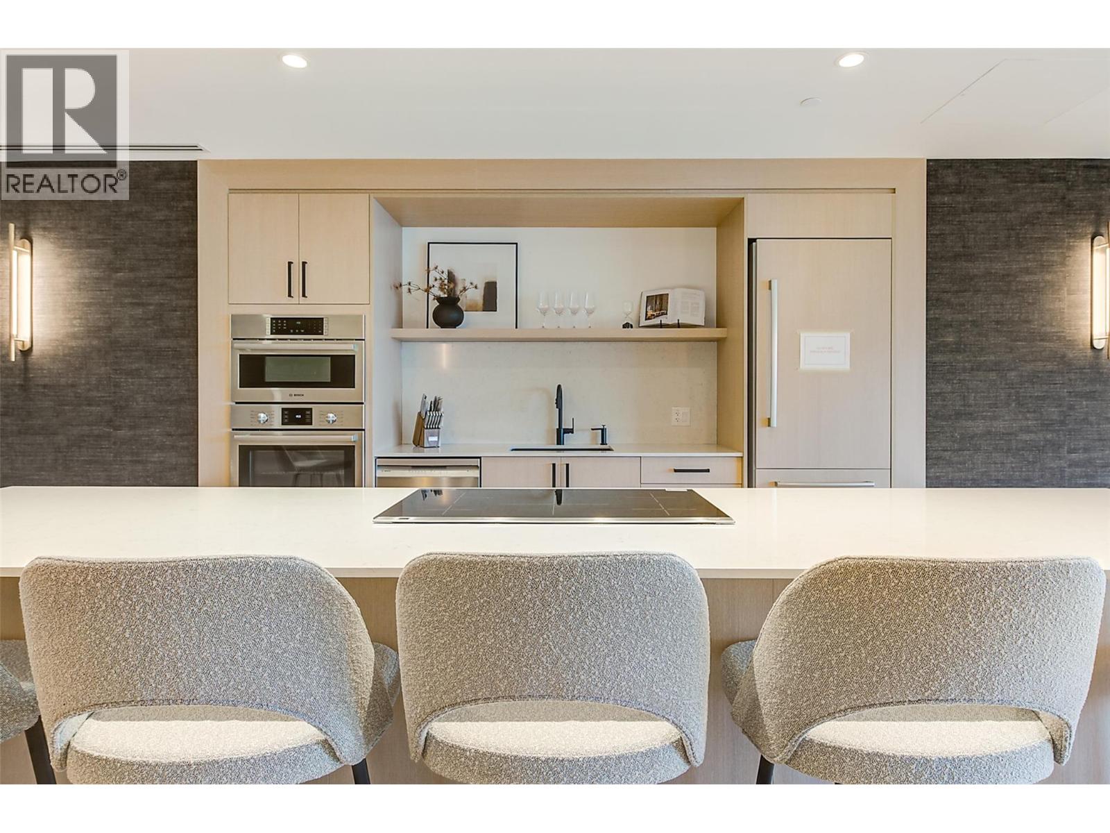 This brand new TOP FLOOR 2 bedroom condo with magnificent lake views is located in the desirable Lower Mission area of Kelowna. Movala has been designed with incredible thoughtfulness and the amenities will satisfy all your living needs. The condo boasts high ceilings, top of the line finishings, upgraded walk-in shower, in unit washer/dryer, high end appliances with induction stove, touchless water faucet, state-of-the-art blinds & a large deck with fabulous views of Okanagan Lake perfect for entertaining! There is a lovely guest suite, upscale gathering room with an eye catching steam fireplace, beautiful library area, yoga room, celebration room, games room with pool table, shuffle board, foosball & a number of large screen tvs, professional work area with individual rooms for privacy. The outdoor pool area with hot tubs will be incredible with lounge furniture and tables, a bocce lawn, fire tables, bbq, kitchen and landscaped gardens with walkways. The underground parking area is secure and boasts a dog wash area, huge bike room with chargers for ebikes, water sports storage and a workshop area for repairs. Plenty of secured underground visitor parking spaces will be much appreciated when guests come. EV charging to unit's parking stall can be arranged. Located in one of Kelowna's most desirable locations Movala is just minutes to shops, restaurants, wineries, hiking trails & a quick drive to the airport. This magnificent resort style residence is simply the best!! (id:58842)