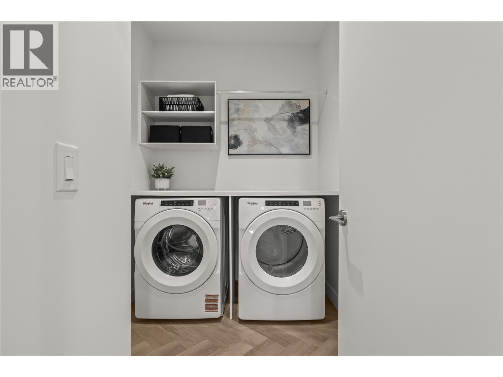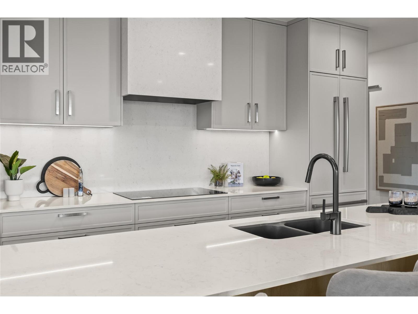 GST Paid! A rare opportunity to own one of the penthouse collections at Movala. Located beachside in Lower Mission, this luxury condo is defined by its sophistication & unparalleled lake views. With an interior boasting approx. 1,748 sqft of single-level living, 3 generous sized beds with ensuite baths, office, laundry & guest bath create a seamless flow between the bright living spaces & the designer kitchen. These exquisite residences showcase premium architecture & craftsmanship like herringbone floors & Hunter Douglas remote blinds. The kitchen is equipped with top-tier appliances including induction cooktop, convection wall oven, a built-in beverage centre with a wine fridge, modern cabinetry with brushed nickel hardware, quartz countertops, Bosch side-by-side fridge & freezer, double wall oven, microwave drawer & a Bosch dishwasher. The baths feature large-format tile, heated floors, & wood-grain custom vanities with Dekton or Silestone countertops. Step onto your expansive almost 2000 sqft terrace for outdoor living that truly extends the home, complete with gas BBQ hookup, hot tub pad & room for both dining & lounging. This home also comes with 2 parking stalls & 2 storage lockers. Residents of Movala enjoy resort-style amenities including a heated pool, hot-tubs, cabanas, fitness studios, & more! Set beside Gyro Beach & Pandosy Village, this home connects you to shopping, restaurants, & the lakefront lifestyle Kelowna is known for. (id:58842)