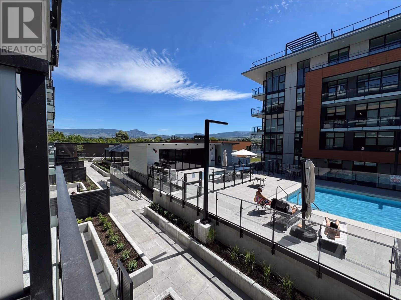 Welcome to Caban by Cressey, where lakeside luxury meets thoughtful design. Located across from Gyro Beach, this 2-bedroom, 2-bath southwest-facing residence offers stunning views of Lake Okanagan, the pool deck, and evening sunsets through expansive floor-to-ceiling windows. The signature Cressey Kitchen features premium integrated appliances, a 6-burner JennAir gas cooktop, wall oven, quartz countertops, and custom Italian cabinetry that flows seamlessly into the primary walk-in closet. The spa-inspired ensuite includes dual vanities, heated floors, and a walk-in shower with dual shower heads and a sleek linear drain. Enjoy warm wood flooring throughout, 9’6” ceilings, and a bright, open layout designed for elevated everyday living. Amenities include an outdoor pool, hot tub, sauna, fitness centre, fire pits, and an entertainment lounge. Secure parking and pet-friendly policies complete the package. Live the refined Okanagan lifestyle at Caban — where every detail speaks of quality. (id:58842)