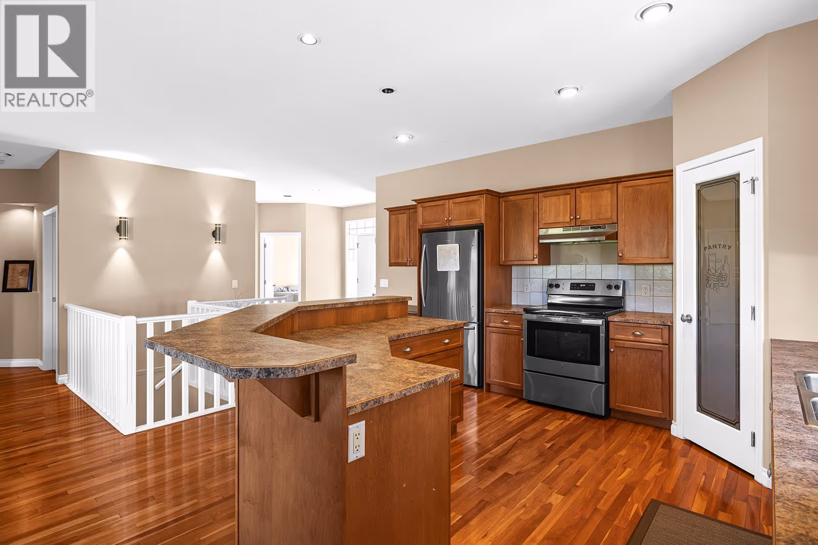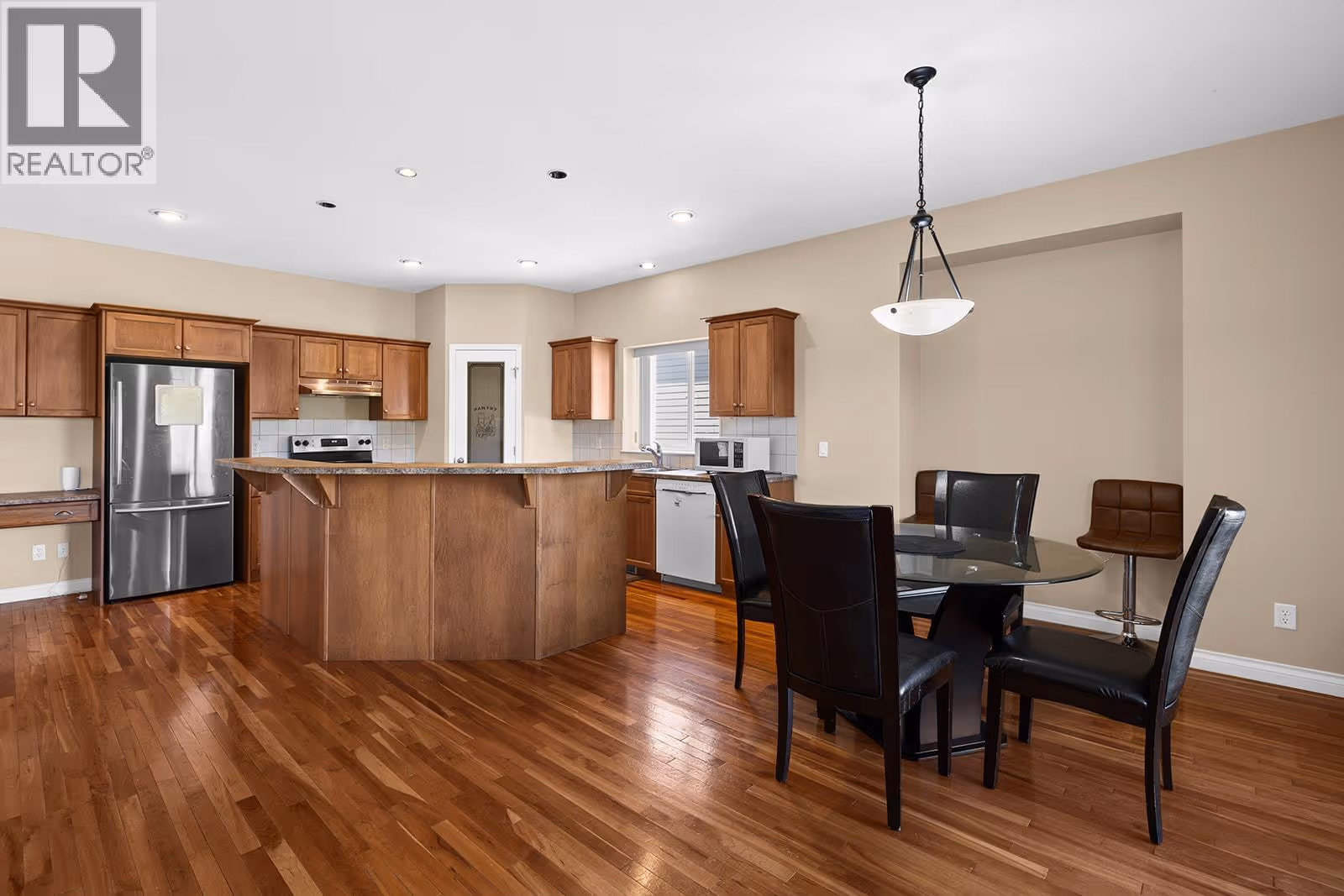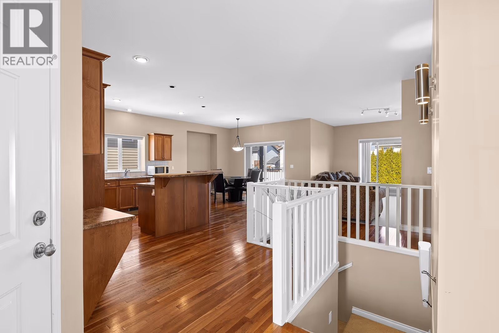 Welcome to this spacious walkout rancher with a basement suite in the heart of Rutland North, one of Kelowna’s most family-friendly neighbourhoods. Upstairs, you'll find a thoughtfully designed open-concept living space featuring a massive kitchen with shaker-style cabinets, a walk-in pantry, sit-up bar island, beautiful hardwood floors, and 9ft ceilings. Cozy up in the living room beside the gas fireplace, or step outside onto the large, covered deck, perfect for year-round barbecuing. The primary bedroom is large and features a 4-piece ensuite and walk-in closet. Downstairs, the 2-bed suite with a separate entrance is ideal for extended family, or as a mortgage helper, offering plenty of natural light throughout. The fully fenced backyard is private with mature cedar trees and sprawling green space for kids, pets, or gardening. The front yard is landscaped with additional greenspace. Bonus features include an oversized garage with 12ft ceilings, and built-in vacuum. This home is walking distance to all levels of schools, and offers quick access to nearby parks, playgrounds, sports fields, the YMCA, and scenic wetlands, as well as shopping, dining, and transit options. This welcoming and well-established neighbourhood is perfect for families looking for both convenience and community. Whether you're upsizing, investing, or looking for a multi-generational layout, this home checks all the boxes! (id:58842)