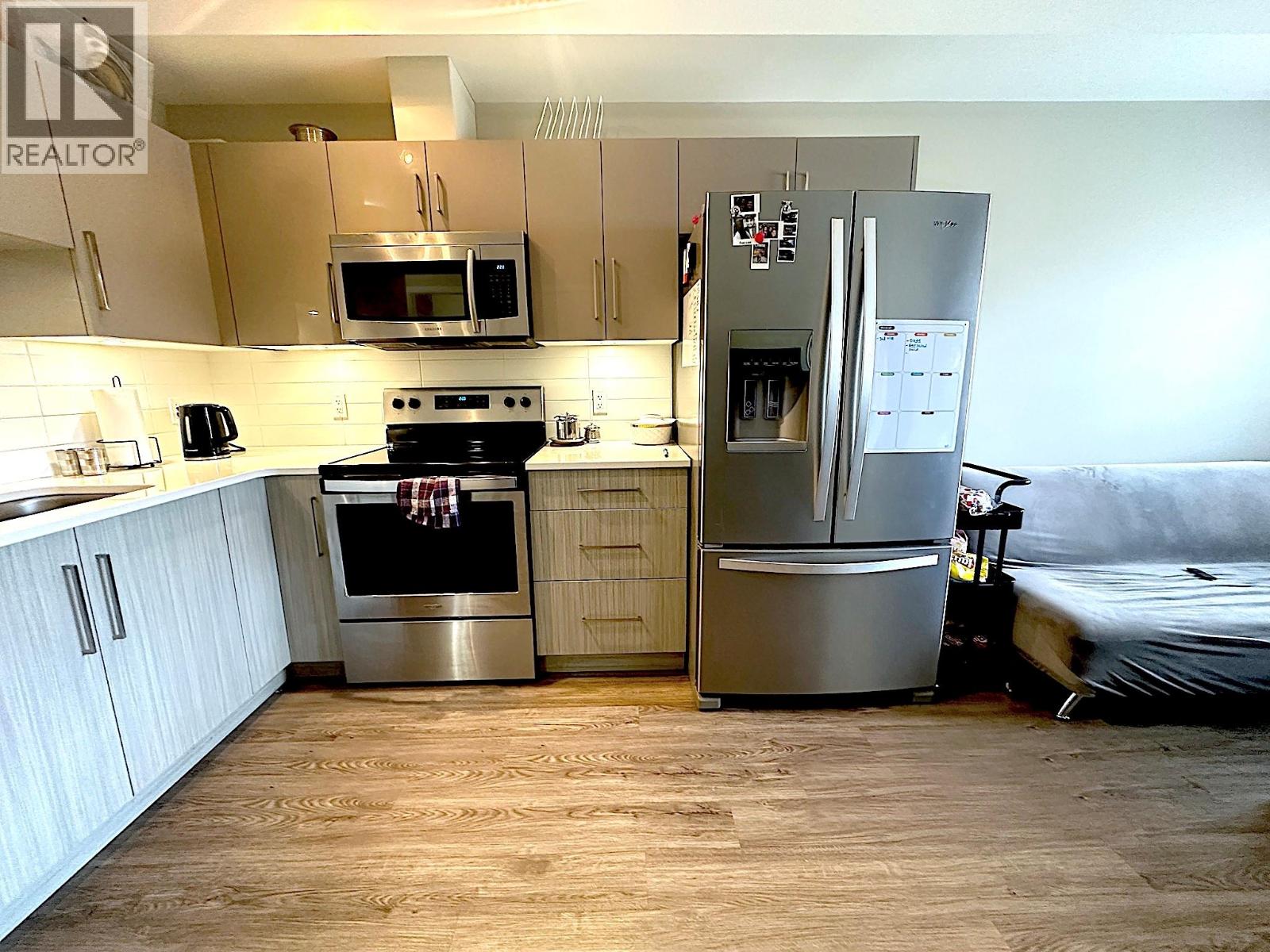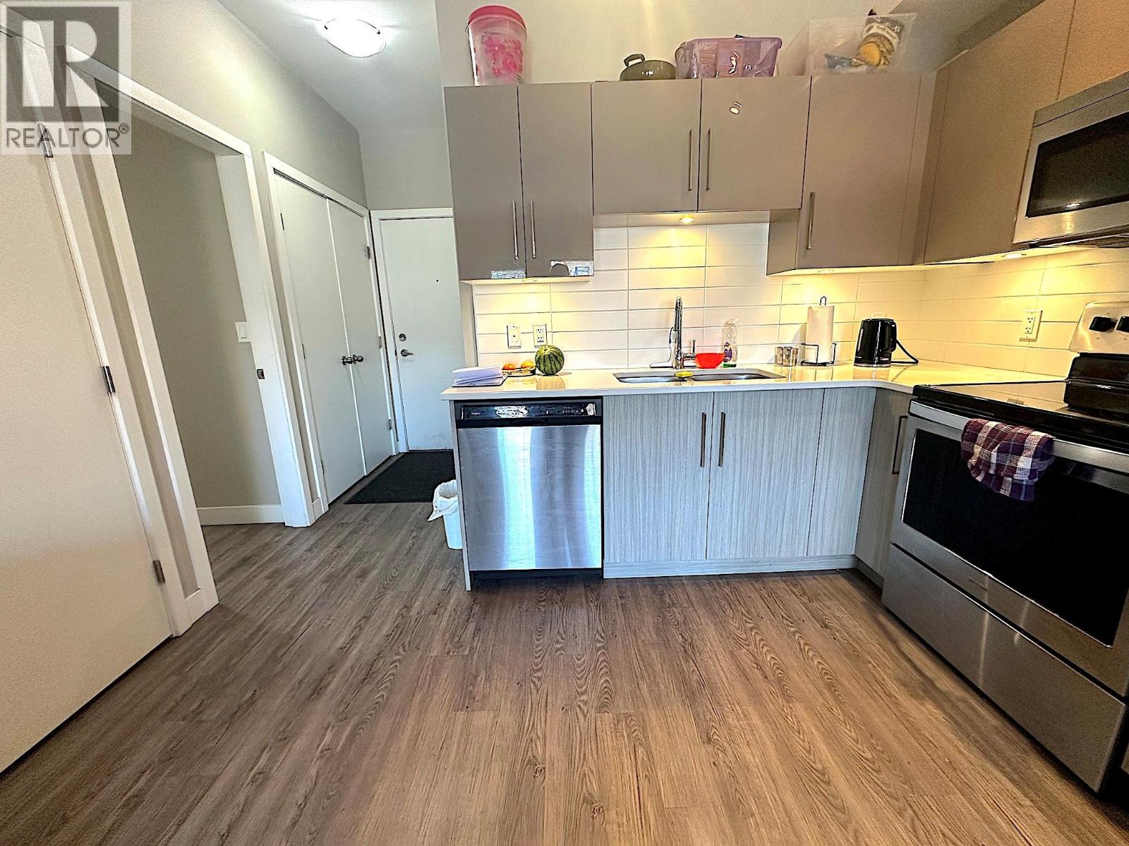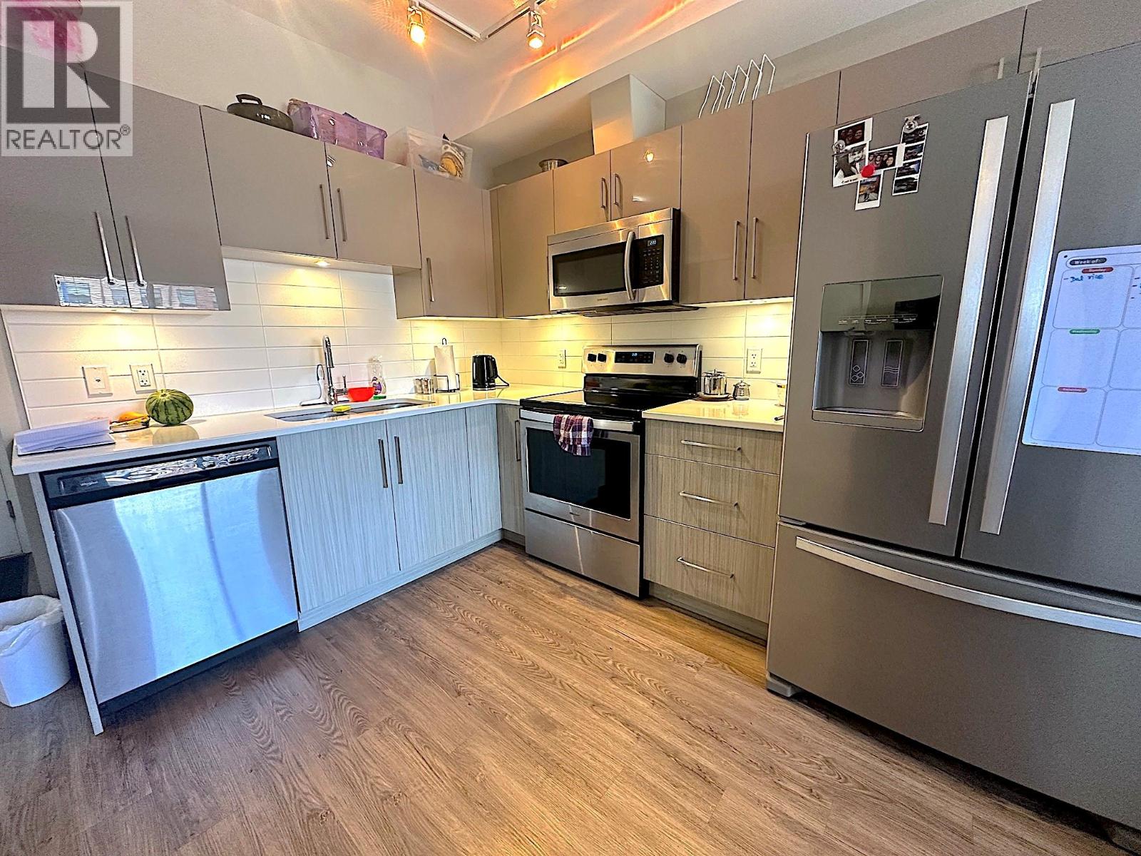 Welcome to The Hub! Modern condo living in the heart of Vernon, BC! This stylish 1 bed + den (often used as a 2nd bedroom, or home office) offers 615 sq ft of smart, functional space with stone countertops, stainless steel appliances, and in-unit laundry for ultimate convenience. The primary bedroom features a sleek 4-piece ensuite, while a 3-piece main bath with a step-in shower serves guests or roommates perfectly. Built in 2019, this well-maintained, east-facing unit is filled with natural light and offers a private balcony where BBQs are welcome - perfect for summer grilling! Enjoy year-round comfort with wall-mounted A/C, and peace of mind with a secure parking garage, storage locker, and secure bike storage. Have Pets? This is a pet-friendly building allowing 2 cats OR 2 dogs OR 1 of each (dogs under 40lbs). With NO age restrictions, a low strata fee of $319.79/month, and an ultra-convenient location near shopping, restaurants, highway access, and more, this condo checks all the boxes. Whether you're a First-Time Buyer, Investor, or Downsizer, this opportunity won’t last - book your showing today and experience your Okanagan life at The Hub! (id:58842)