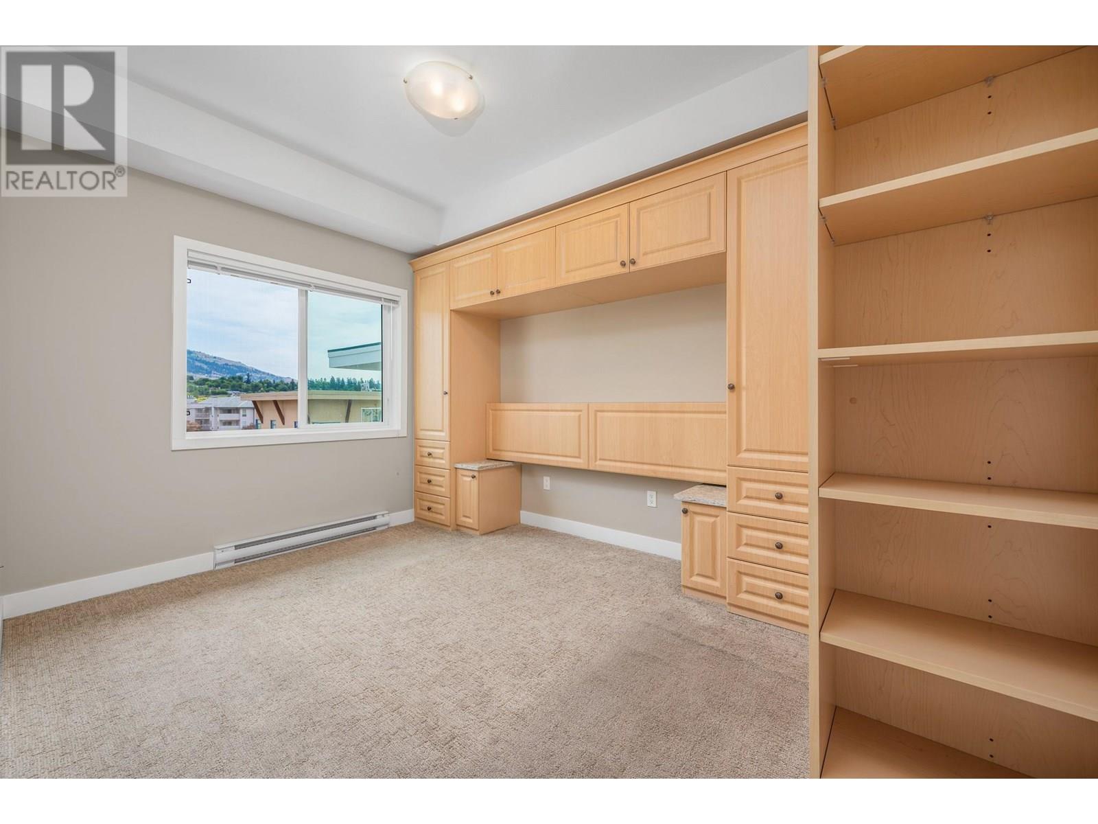 Welcome to this top-floor, modern east-facing 1 bed + den, 2 bath condo in the heart of downtown Vernon. Owner occupied and never rented, 618 sq.ft. of efficient living, this bright and modern home is ideal for first-time buyers or investors. Enjoy upgraded appliances like the fridge and microwave, plus a $10,000 custom built-in storage unit in the primary suite. The den offers flexible space to suit your needs as a guest room, office, or cozy lounge/media room. Morning sunlight pours onto your private balcony, perfect for coffee with a view. This secure building includes one parking stall. Daily shopping is a breeze with restaurants, coffee shops, Nature’s Fare, Fresh Co, and Vernon Jubilee Hospital all within walking distance, you may rarely need your car. You are also a short drive from Okanagan and Kal Lakes, and 25 minutes to Silver Star. Secure underground parking, bike storage on the main floor and plenty of visitors parking. The storage locker is located on the same floor as the unit, making it super accessible. Enjoy low-maintenance, lock-and-leave living with aerothermal heating and cooling in a quiet, secure building—this is the lifestyle you’ve been looking for. Easy to show. Quick possession available. (id:58842)