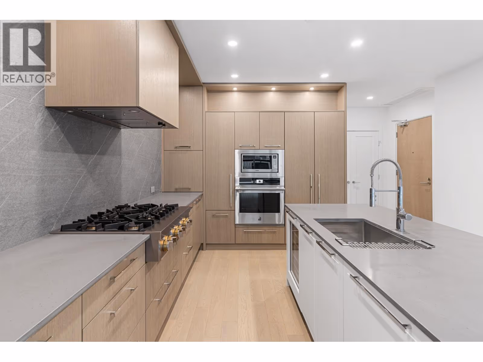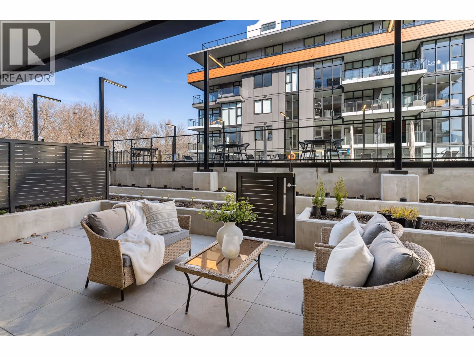 Nestled in the heart of Pandosy Village, this stunning 1,195 sq. ft. luxury condo blends upscale design with effortless Okanagan living. Soaring 9’6” ceilings and expansive windows flood the space with natural light, leading seamlessly to a private 390 sq. ft. patio — perfect for morning coffee, evening dining, or simply soaking up the sunshine. The famous ""Cressey Kitchen"" even has a $2800 wine fridge upgrade. Enjoy resort-style amenities including a 25+ meter infinity lap pool, hot tub, and pool house complete with kitchen facilities and television. Private cabanas with built-in seating and hand-cast concrete fire tables create the perfect space to unwind or entertain friends. Stay active in the 2,000+ sq. ft. fitness centre featuring a full range of equipment and streaming workout stations, or recharge in the rejuvenating Himalayan salt sauna. Inside, the upgraded kitchen with wine fridge adds a touch of luxury, and the secure underground parking stall ensures convenience. Just steps from Gyro Beach, boutiques, and cafes, this condo offers the ultimate fusion of modern comfort, resort-style amenities, and vibrant Pandosy living. (id:58842)