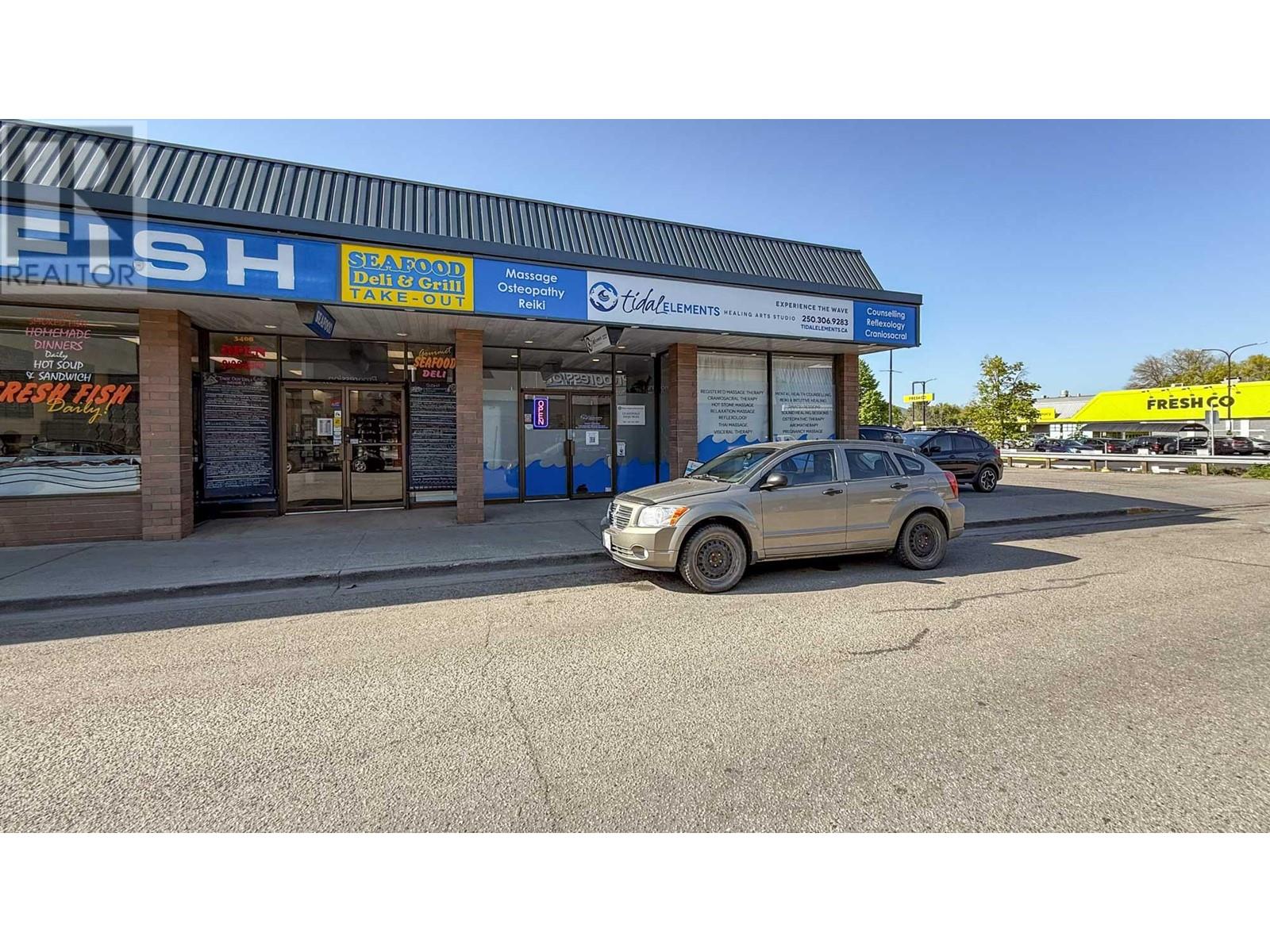 Outstanding professional space available in Downtown Vernon. High profile, corner unit of approximately 2,039 SF ideal for a medical office, massage therapy office, or other personal service use. Fully improved unit includes an inviting entrance & waiting area, 7 individual treatment rooms, a well-appointed patron washroom, a staff washroom and a large staff/utility/storage room with washer & dryer hook-ups. Up to 3 parking stalls are available with the unit at $50/month per stall. Area also has plenty of available street parking. Potential for fascia signage on the front and side of the building. Zoned CMUC, the space supports a wide range of commercial uses. Central location, only steps away from Dollarama, Fresh Co and Shoppers Drug Mart. Potential to combine with adjoining unit (3410B) if a larger unit is desired. Some complex use exclusions, please enquire. (id:58842)