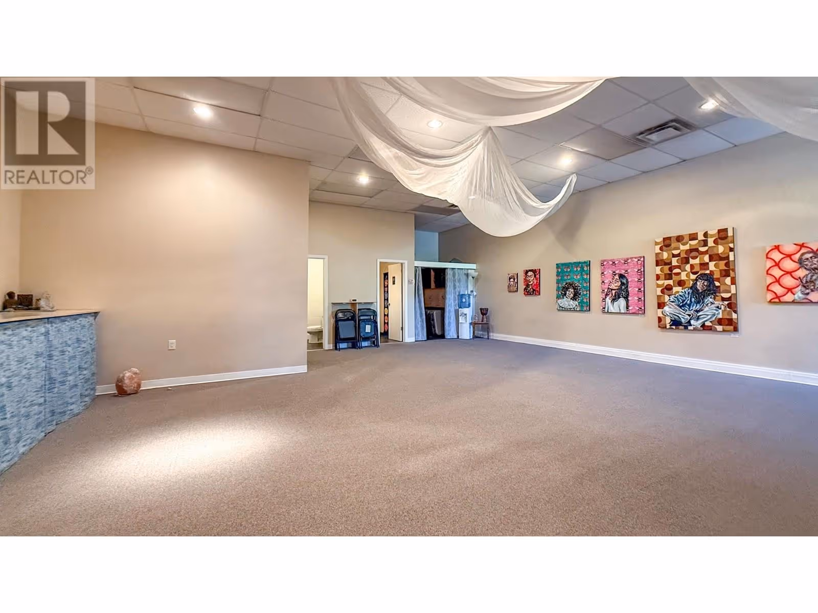 Commercial space available for lease in busy Downtown Vernon. Unit is approx. 1,302 SF and features a large open area (perfect for a fitness studio or retail business), reception area, treatment room or office, two in-suite washrooms and storage areas. Unit is located in the southwest corner of the building, with access from the complex parking lot and rear laneway. Up to 2 parking stalls are available with the unit at $50/month per stall. Area has plenty of available street parking. Potential for fascia signage on the side of the building above the unit. Zoned CMUC, the space supports a wide range of commercial uses. Central location, only steps away from Dollarama, Fresh Co and Shoppers Drug Mart. (id:58842)