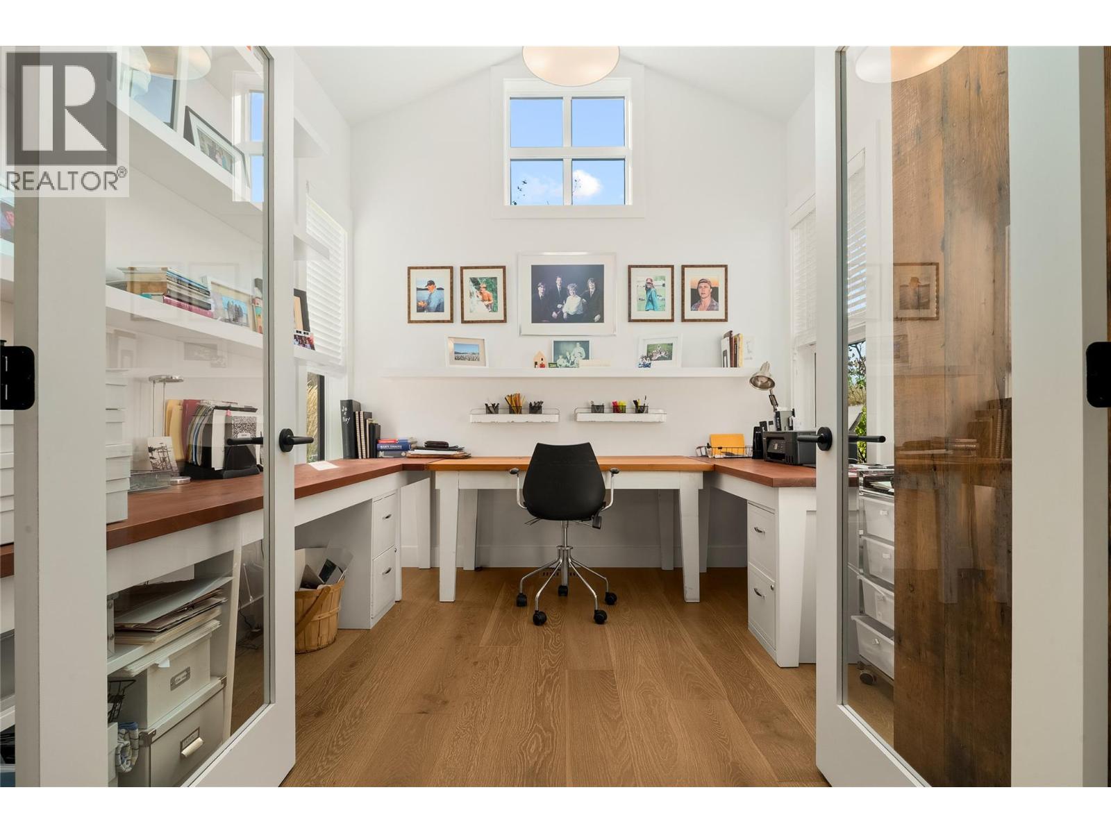 This modern ranch-style home features a beautiful private outdoor seating area, complementing a ""park-like"" garden and a rugged pathway, all situated at the end of a quiet cul-de-sac. Inside, an impressive open floor plan and spectacular vaulted ceiling allows for brilliant natural light to stream through this delightful property making the whole place feel bright and spacious. Creative design highlights include a majestic floor-to-ceiling plaster-faced gas fireplace and a back-lit feature wall in the kitchen/dining room. Key features include two generous bedrooms, two full bathrooms, cozy home office or art room, dining room with a view, laundry room and a double car garage with glass panel door. A sprawling southwest-facing garden with multiple sitting areas can be enjoyed as ""garden rooms"" each with novel seating options like a fire pit area, a secluded bench, or a comfortable dining area. Mature trees and lush planting create distinct zones for different functions and moods, while hardscaping like patios and pathways provide structure and flow. Discover this 1,489 square feet rancher where comfort and style intertwine, creating an undeniably rich lifestyle, age-in-place sophistication in the community of Predator Ridge Resort. Residents can enjoy resort-style amenities, including two golf courses, restaurants, a racquet club, a walking, hiking, biking and trail network, while also benefiting from the peace of a natural setting. (id:58842)