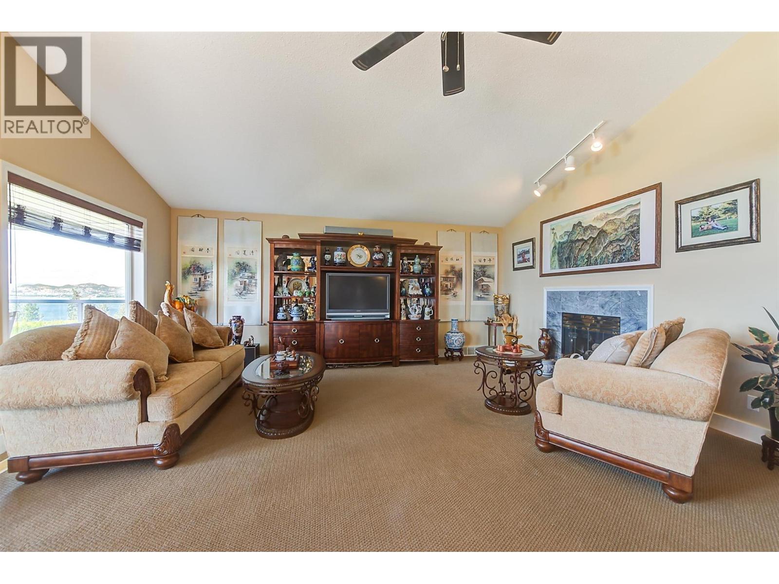Perched in the exclusive Belcarra Estates of Upper Mission, this impeccably maintained residence delivers unmatched elegance and sweeping 180° views of Okanagan Lake, stretching from Okanagan Mountain Park to downtown Kelowna. The front deck, overlooking the lush vineyards of St. Hubertus Winery, offers an idyllic spot to savor the stunning scenery. Inside, nearly every room captures the lake’s beauty, with one living room featuring a soaring vaulted ceiling and a gas fireplace, and another warmed by a wood-burning fireplace for cozy nights. The gourmet kitchen dazzles with stainless steel appliances, rich solid wood cabinetry, and a skylight that bathes the space in natural light. The spacious primary bedroom is a serene haven, boasting panoramic lake views, a generous walk-in closet, and a luxurious ensuite with charming bay windows. The backyard is a private oasis, complete with an in-ground pool and a shaded pergola, ideal for hosting family gatherings or entertaining guests. The oversized garage, measuring 45 feet deep with extra-tall doors, easily accommodates up to four trucks, an RV, or other toys, with ample space for a car lift if desired. This Kelowna masterpiece blends sophisticated design, expansive living spaces, and the breathtaking beauty of its natural surroundings. (id:58842)