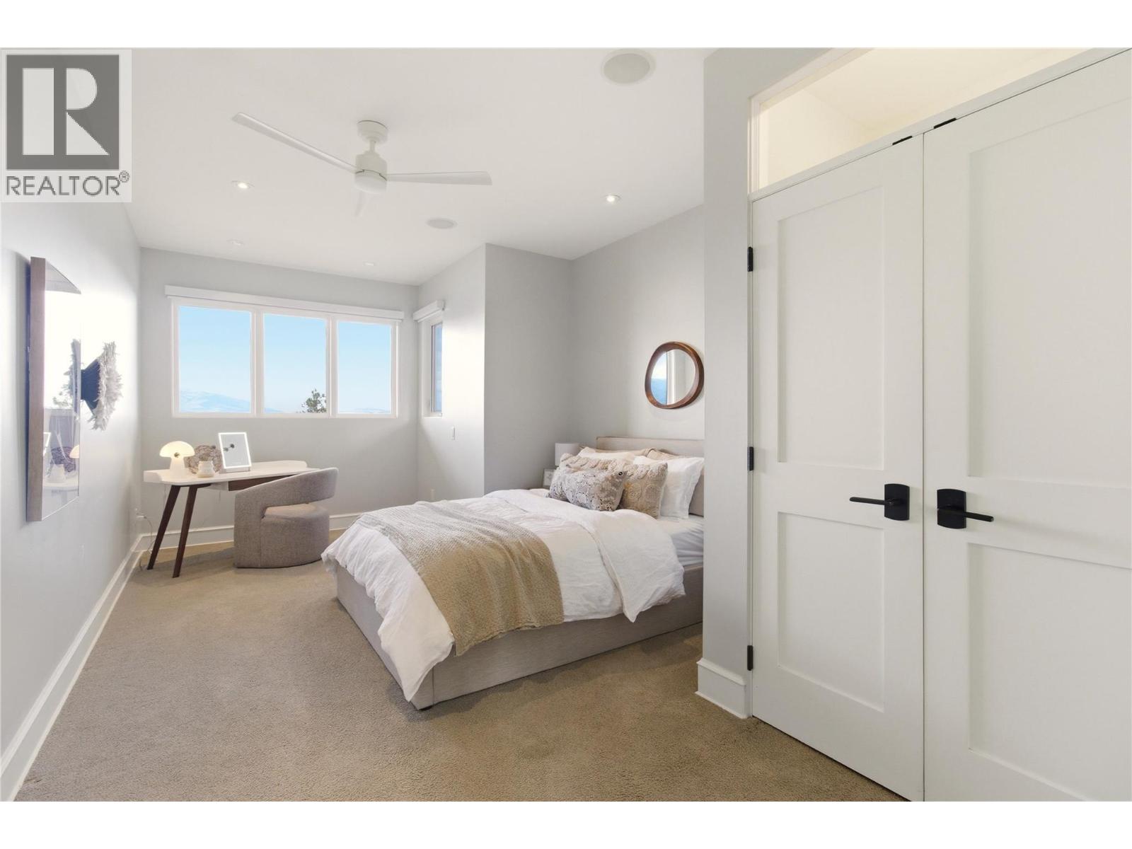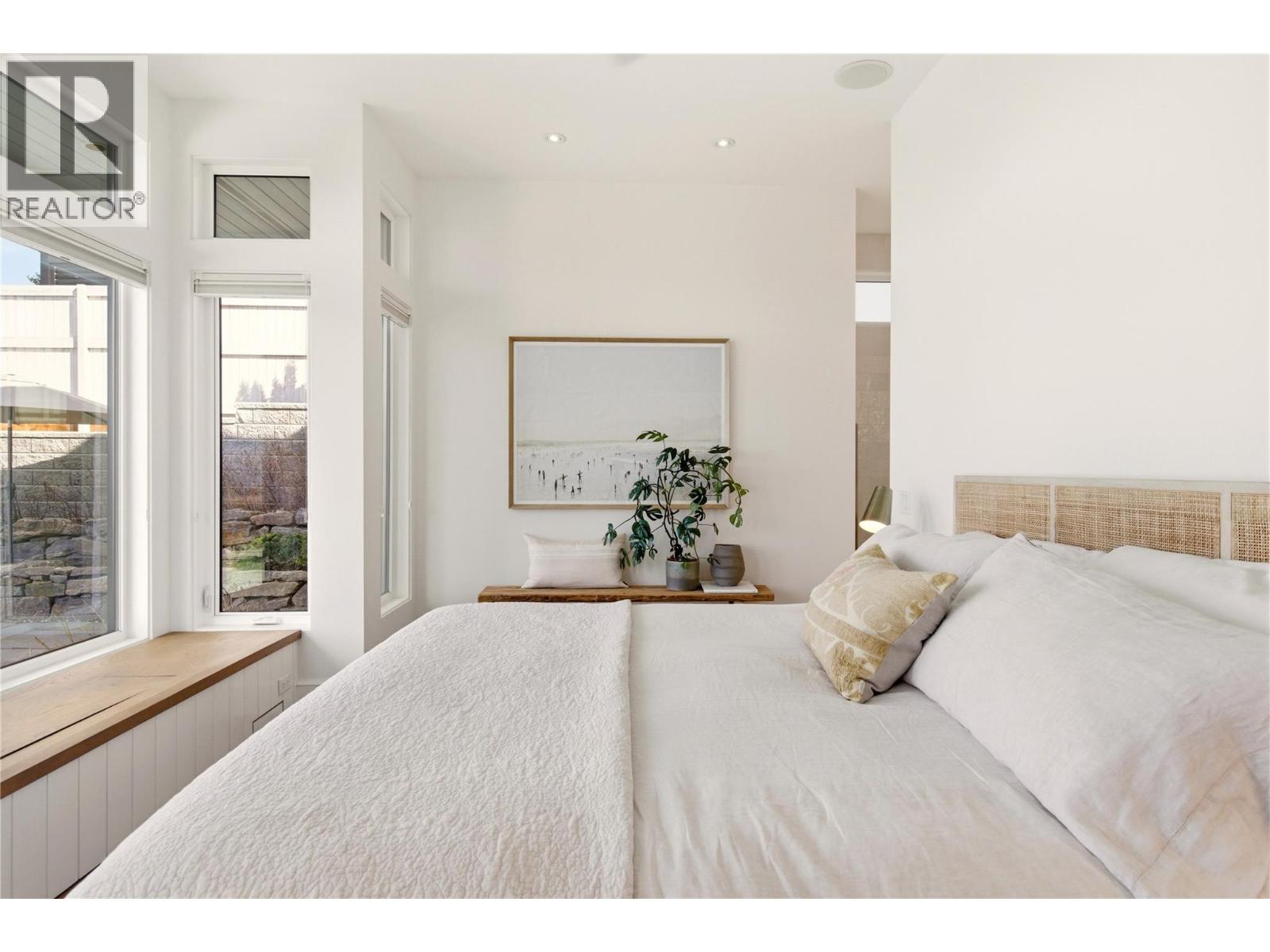There’s a quiet magic to this home - the way it settles into its surroundings & the way every space feels connected to the lake. Set in one of Kelowna’s best neighbourhoods with the best lake view setting, this one owner home draws subtle inspiration from Frank Lloyd Wright’s Prairie design, blending natural materials, clean lines & a deep sense of warmth. Designed as a coveted two-storey walk-out, the main level opens effortlessly to the outdoors where a concrete & tile pool, sunken hot tub & thoughtfully designed landscaping create a setting that feels more like a private resort, all framed by front row unobstructed lake views. Inside, expansive windows invite in natural light, while Kettle Valley stone, oak hardwood & custom millwork create a grounded, welcoming feel. The great room is anchored by a statement stone fireplace, while the kitchen features a generous island designed for gathering. The main level primary suite is a lake view sanctuary of its own, with spa-like finishes & boutique style closet, while upstairs bdrms each enjoy their own ensuite. Upper level also offers a family room space & office space while the main level features a guest bedroom/den. The lower level of the home features a very rare offering - a fully equipped 1500sqft Collector’s Shop with parking for 4-6 additional vehicles. Accessed by a 7000lb hydraulic elevator lift complete with radiant in floor heat, welding station, fresh air recirculation system + more. Short walk to Cedar Creek Park. (id:58842)