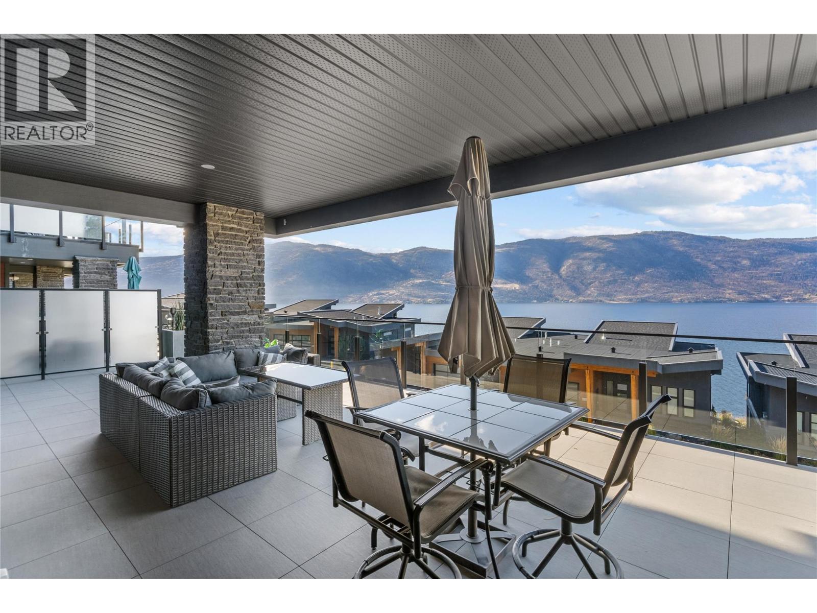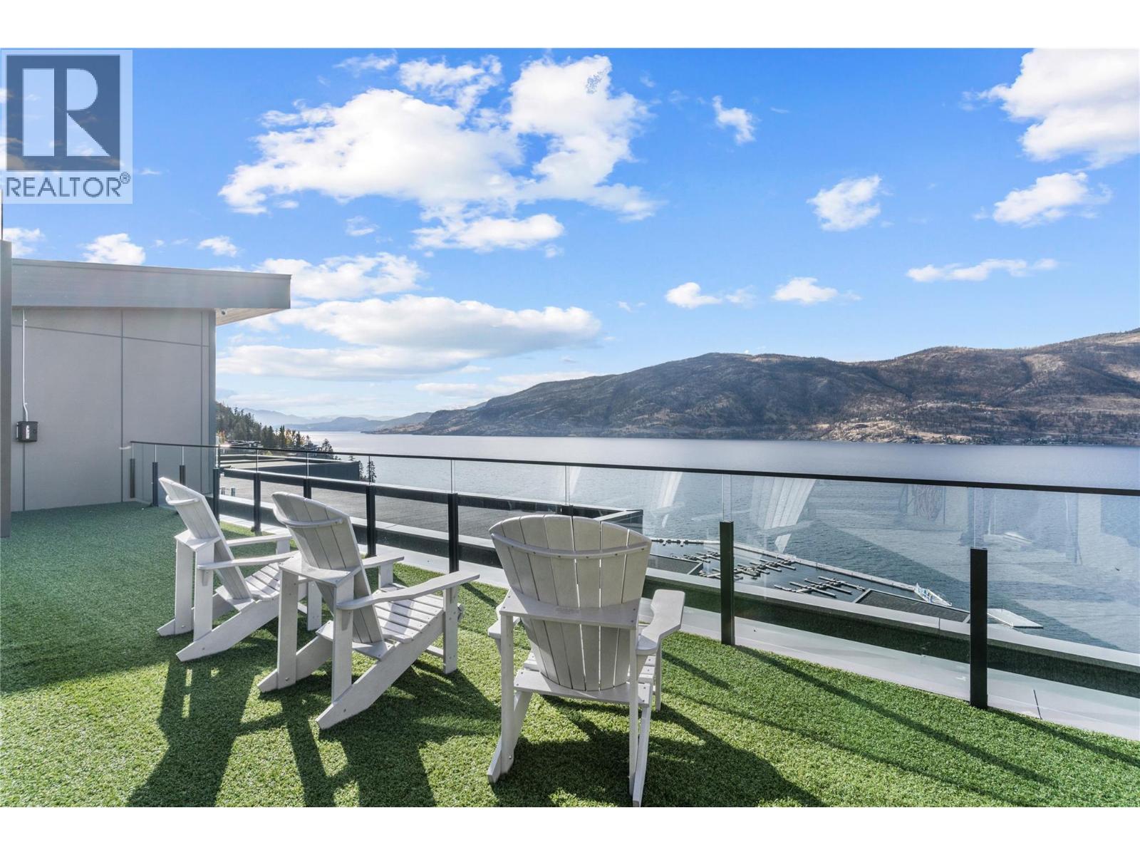 Experience elevated Okanagan living in this stunning 2-bedroom, 2-bathroom lakeview condo at The Granite, McKinley Beach. Offering over 1,110 sq. ft. of beautifully designed living space and an expansive 600+ sq. ft. partially covered patio, this home is truly one of a kind. The showpiece of this residence is the impressive outdoor living area, perfect for entertaining or relaxing. With a natural gas hookup for BBQs or a fire table and the potential to add your own hot tub (with Strata approval), this deck is your private retreat overlooking the lake. Inside, the chef-inspired kitchen features sleek stainless-steel appliances, a natural gas range, and a refrigerator with ice and water dispenser. The open-concept living and dining area centers around a custom electric fireplace, complemented by durable and stylish engineered hardwood flooring throughout. The primary suite includes a spacious walk-in closet and a luxurious ensuite with double sinks, a walk-in shower, and heated floors. The second bedroom is thoughtfully positioned on the opposite side of the unit, also complete with its own ensuite for added privacy. A dedicated laundry room provides excellent storage options. Enjoy central air conditioning, a large 7' x 11' storage locker conveniently located on the same floor, and secured underground parking. Residents also have access to premium amenities, including an outdoor pool and a rooftop hot tub. Perfectly situated, you’re only 15 minutes to Kelowna or the International Airport, and just 10 minutes to UBCO. With over a kilometer of pristine lakefront, access to the Granite Yacht Club, and the unmatched lifestyle McKinley Beach offers, this home is truly a must-see. Book your private showing today and experience lakeview luxury at its finest. (id:58842)