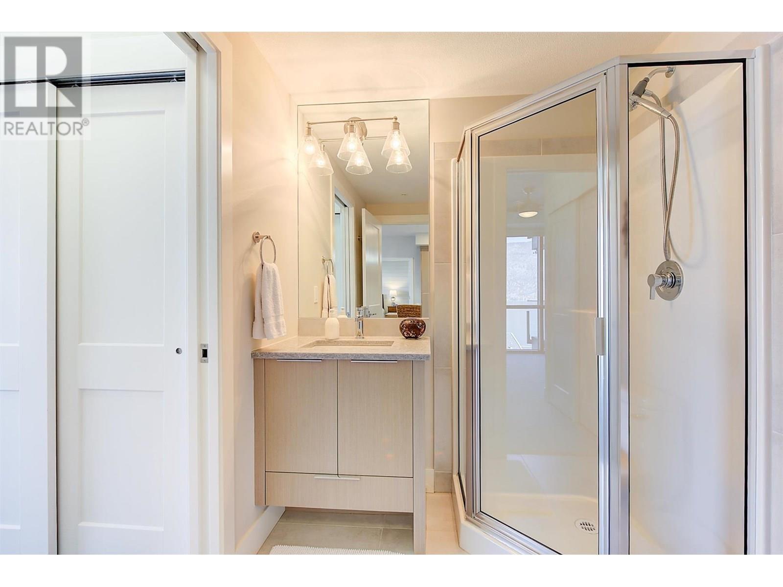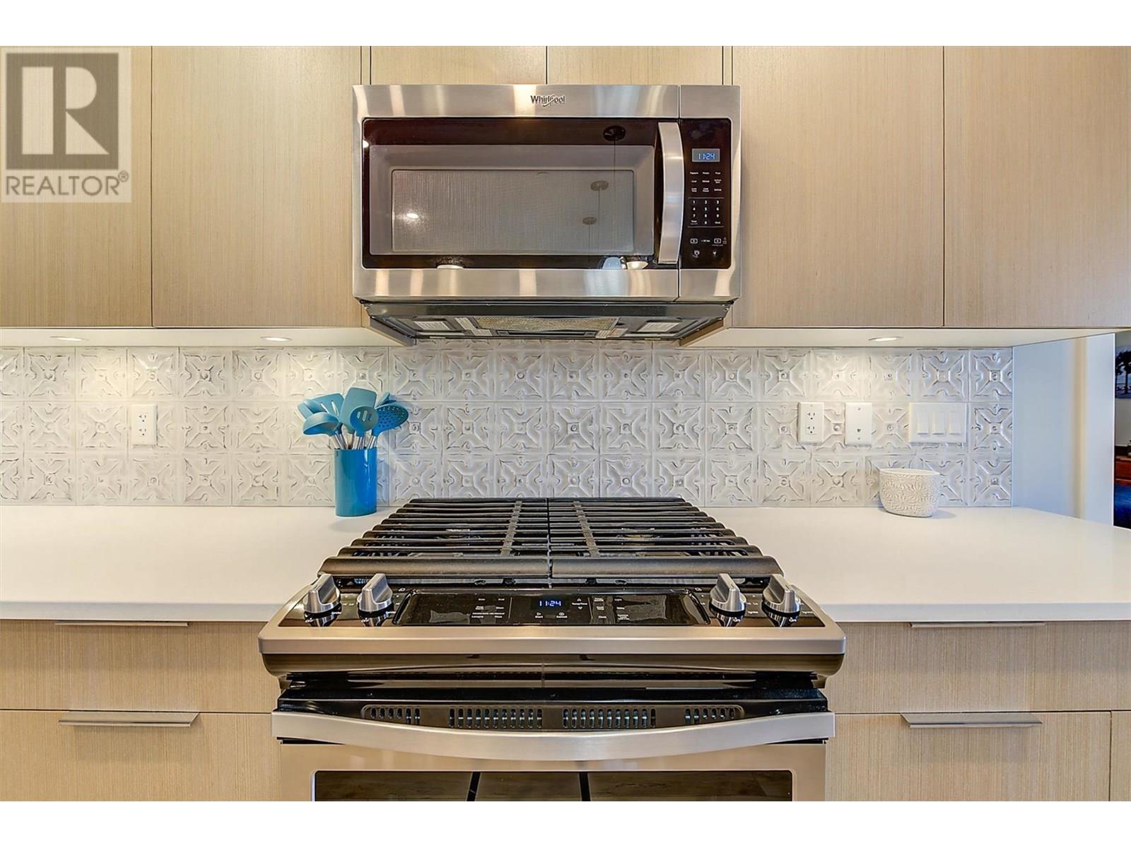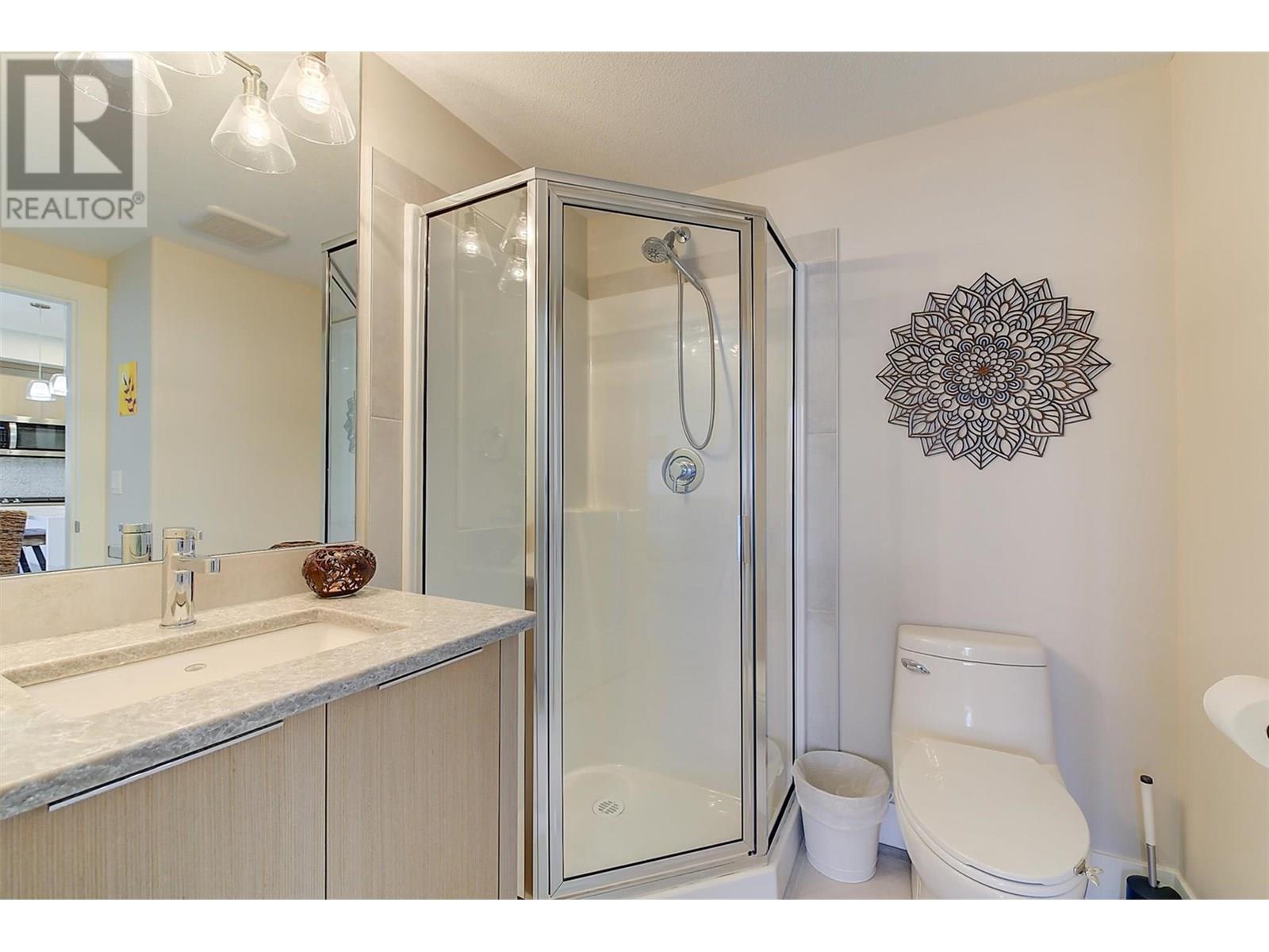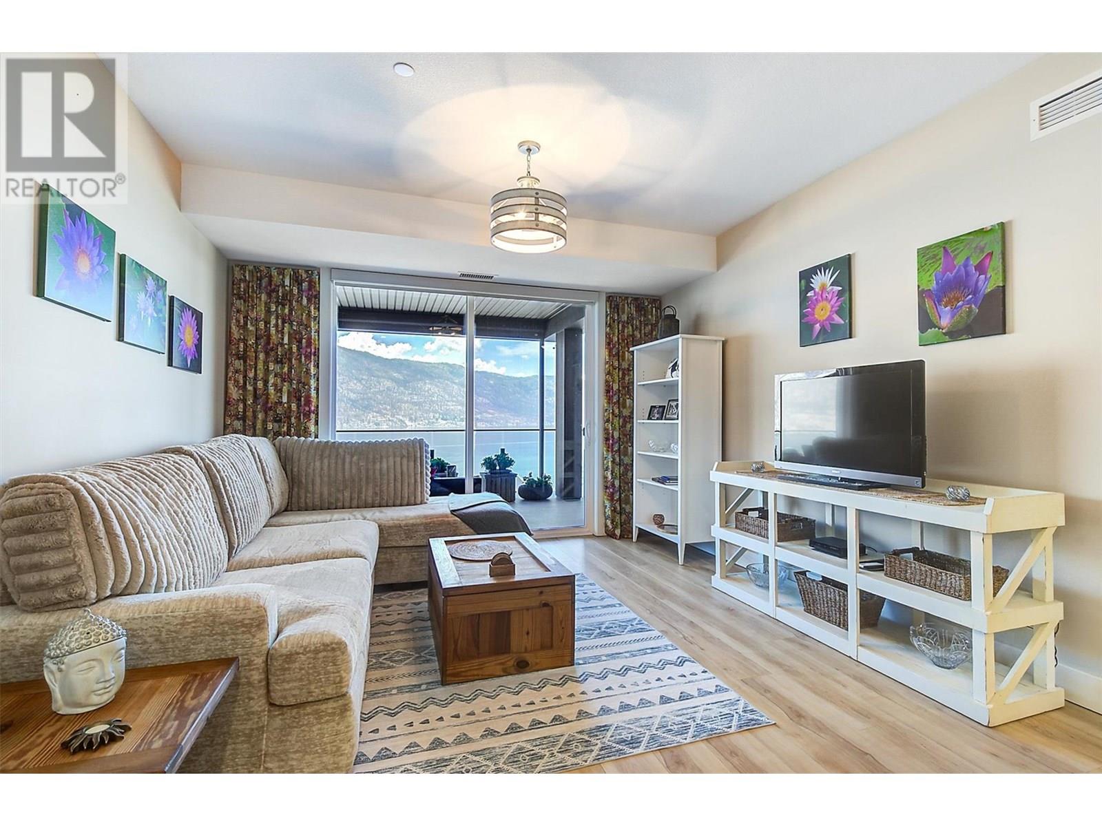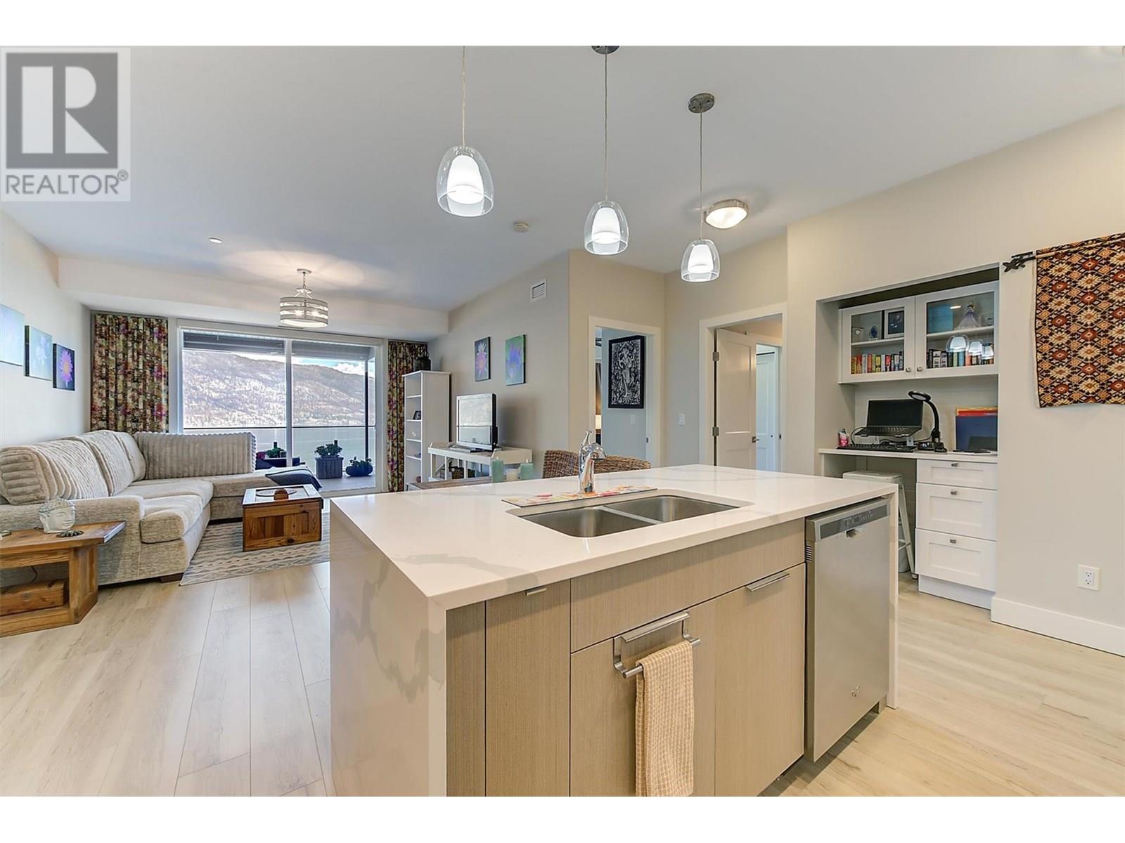 Lakefront Living at The Granite at McKinley Beach! This beautifully updated 2 BR, 2 bath condo offers 1,085 sq ft of modern comfort with unbeatable views of Lake Okanagan. From the moment you step inside, the panoramic scenery draws you in—then the thoughtful updates start to shine. Enjoy new vinyl plank flooring throughout the main living area. The guest bedroom features a floor-to-ceiling window with breathtaking lake views, generous closets, and access to a stylish three-piece bathroom. The primary suite is perfectly positioned for privacy and includes a large walk-in closet, an additional linen closet, and a spacious ensuite with dual vanities and a tub/shower combo. The open-concept is ideal for entertaining. Enjoy stainless appliances, a large island, and uninterrupted views of the lake. You’ll love the functional office nook. The in-suite laundry room is both practical and stylish, offering ample cabinetry and a granite countertop. Step outside to a stunning 27’ x 12’ west-facing balcony—an entertainer’s dream! Lounge, dine, or BBQ with ease, and enjoy the comfort of an electric awning for shade and ambiance. Resort-style amenities include a saltwater pool and rooftop hot tub. The brand-new community building features a gym, sauna, pool, hot tub, and outdoor courts for pickleball, tennis, and basketball. Extras include one underground parking stall, same-floor storage, and an exciting new winery with restaurant opening nearby. (id:58842)