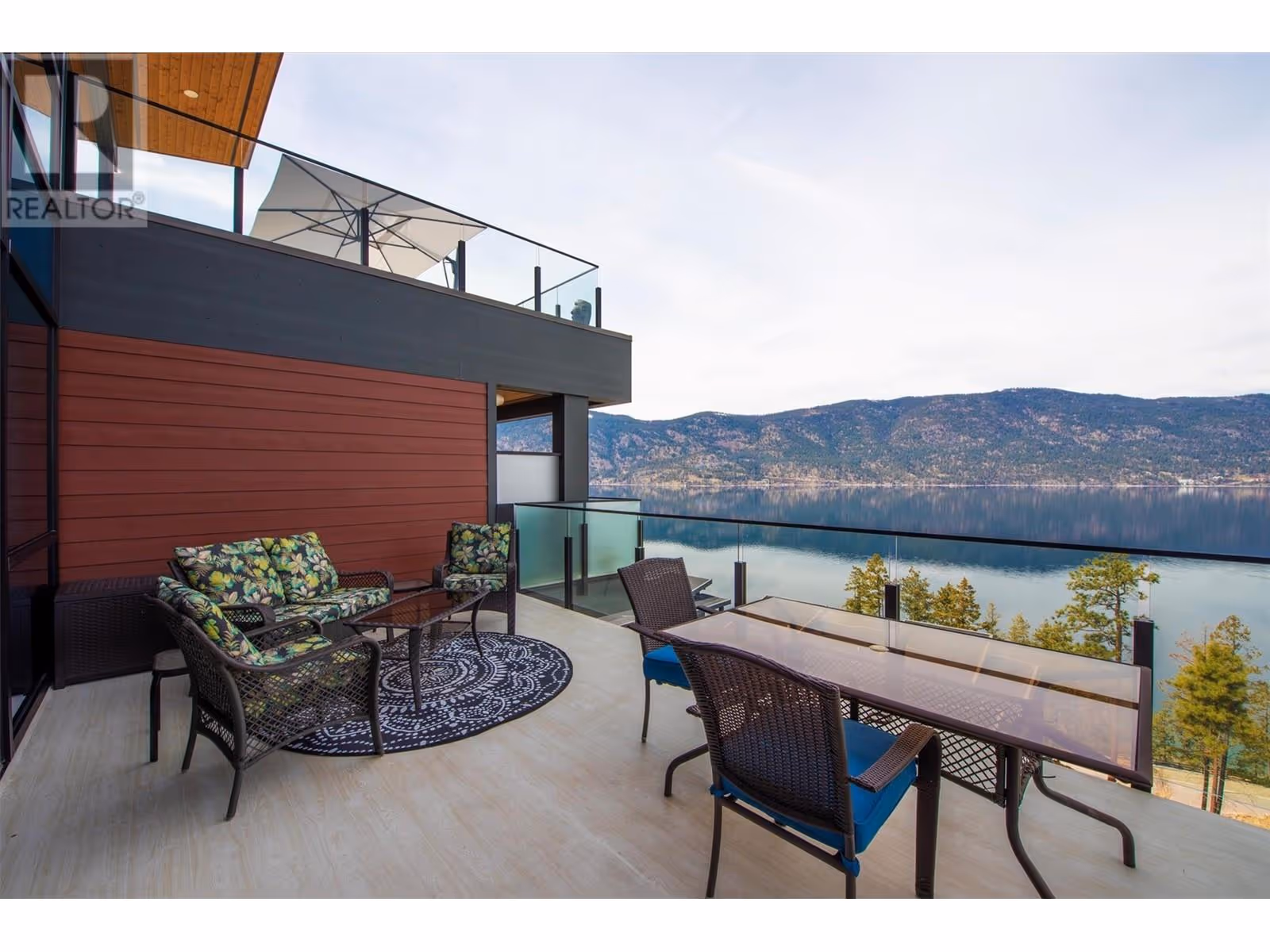 The One of a kind Granite Penthouse with 3 bedroom , 3 bathroom of over 2400 sq ft and over 1700 sq ft of deck space in McKinley Beach where this custom luxury home has absolute stunning Lake Okanagan views! Walk into this home with its engineered Opus-Whitestone Oak hardwood floors and take in the view of the 20' height double high windows over looking the lake from the dining and living area. The gourmet kitchen is a chef’s dream, complete with Fisher & Paykel appliances, ample cabinetry, and generous workspace. Upstairs you will find a sitting area to enjoy the lakeviews or watch TV.. Step outside to enjoy the expansive rooftop patio, designed for year-round entertaining with a TV, premium gas heaters, and a cozy fire pit. premium features include a Control 4 smart home system for TV, blinds, music, and locks, plus 200-amp service with a 100-amp outdoor sub-panel. Th primary suite has wrap around floor to ceiling glass. McKinley Beach community boosts of a marina, beach area, New amenities building including an indoor pool, miles of hiking trails, tennis courts, pickleball courts and the winery currently being built. Only 15 minutes to the international airport or 15 minutes to Kelowna or 10 minutes to UBCO. With a kilometer of pristine lakefront, the Granite Yacht Club, , you’ll experience the very best of waterfront living. This home comes with two secured underground parking stalls near the elevator. This is a must see home!!! Book your showing.. (id:58842)