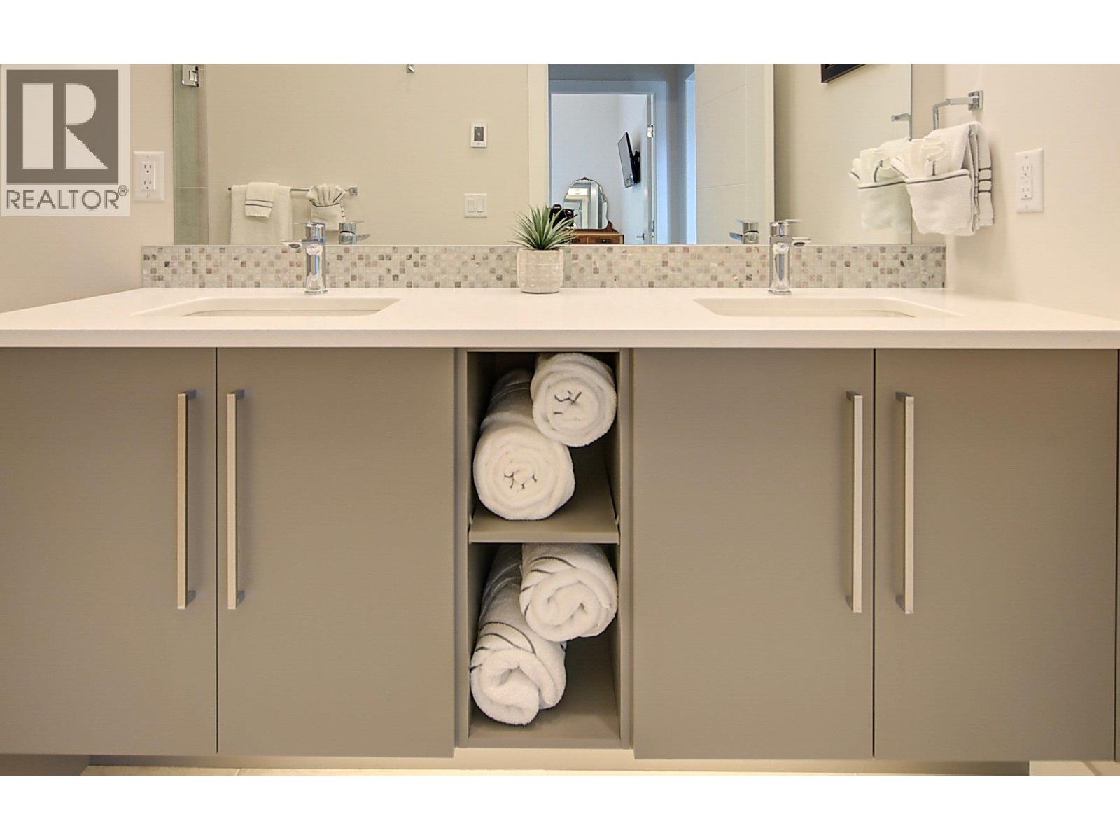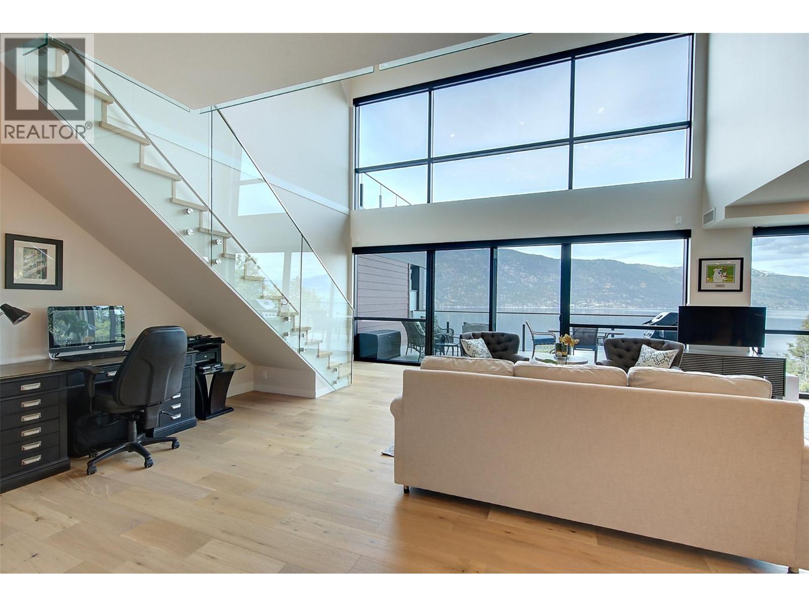 The One of a kind Granite Penthouse with 3 bedroom , 3 bathroom of over 2400 sq ft and over 1700 sq ft of deck space in McKinley Beach where this custom luxury home has absolute stunning Lake Okanagan views! Walk into this home with its engineered Opus-Whitestone Oak hardwood floors and take in the view of the 20' height double high windows over looking the lake from the dining and living area. The gourmet kitchen is a chef’s dream, complete with Fisher & Paykel appliances, ample cabinetry, and generous workspace. Upstairs you will find a sitting area to enjoy the lakeviews or watch TV.. Step outside to enjoy the expansive rooftop patio, designed for year-round entertaining with a TV, premium gas heaters, and a cozy fire pit. premium features include a Control 4 smart home system for TV, blinds, music, and locks, plus 200amp service with a 100-amp outdoor sub-panel. Th primary suite has wrap around floor to ceiling glass. McKinley Beach community boosts of a marina, beach area, New amenities building including an indoor pool, miles of hiking trails, tennis courts, pickleball courts and the winery currently being built. Only 15 minutes to the international airport or 15 minutes to Kelowna or 10 minutes to UBCO. With a kilometer of pristine lakefront, the Granite Yacht Club, , you’ll experience the very best of waterfront living. This home comes with two secured underground parking stalls near the elevator. This is a must see home!!! Book your showing.. (id:58842)